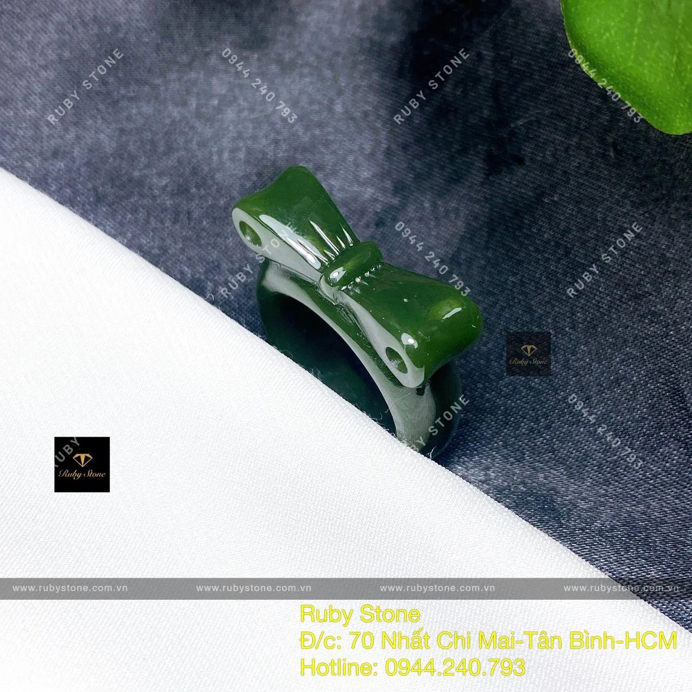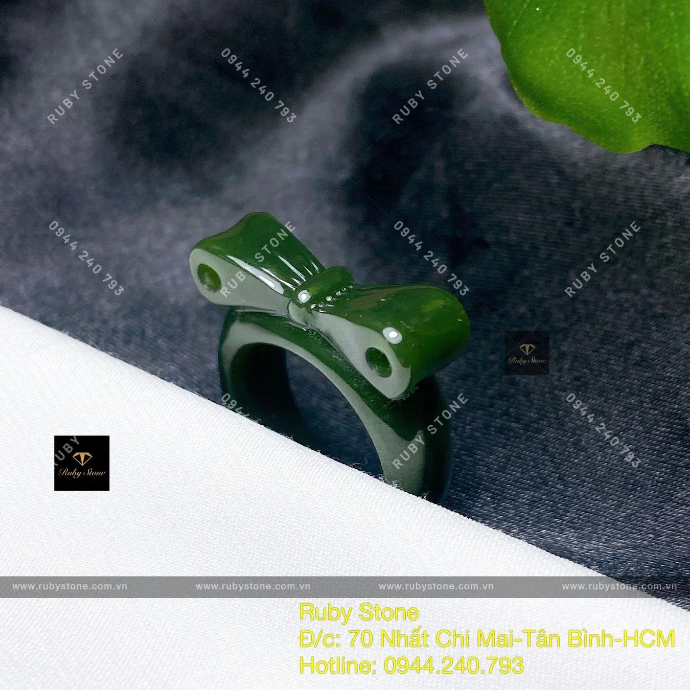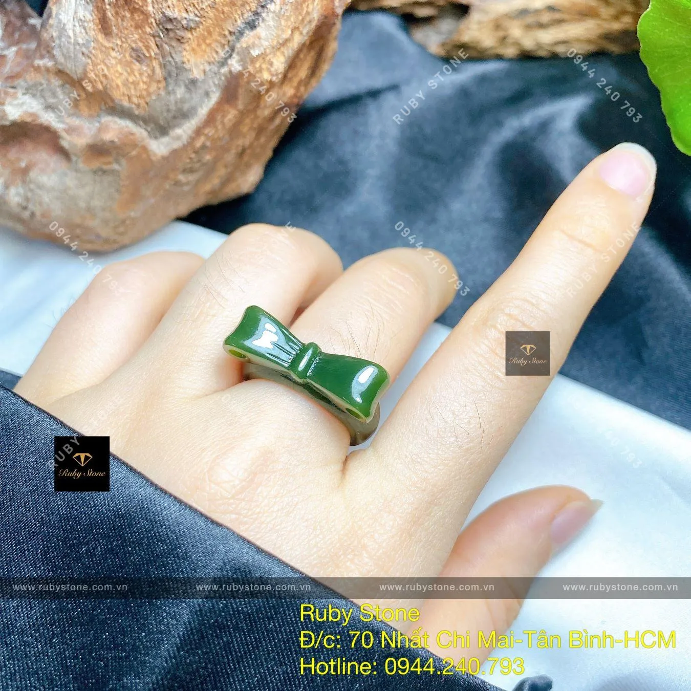 Nhẫn Nơ Ngọc Bích Canada Nguyên Khối (gia Công Theo Ni Tay) - Ngọc Bích Phong Thủy