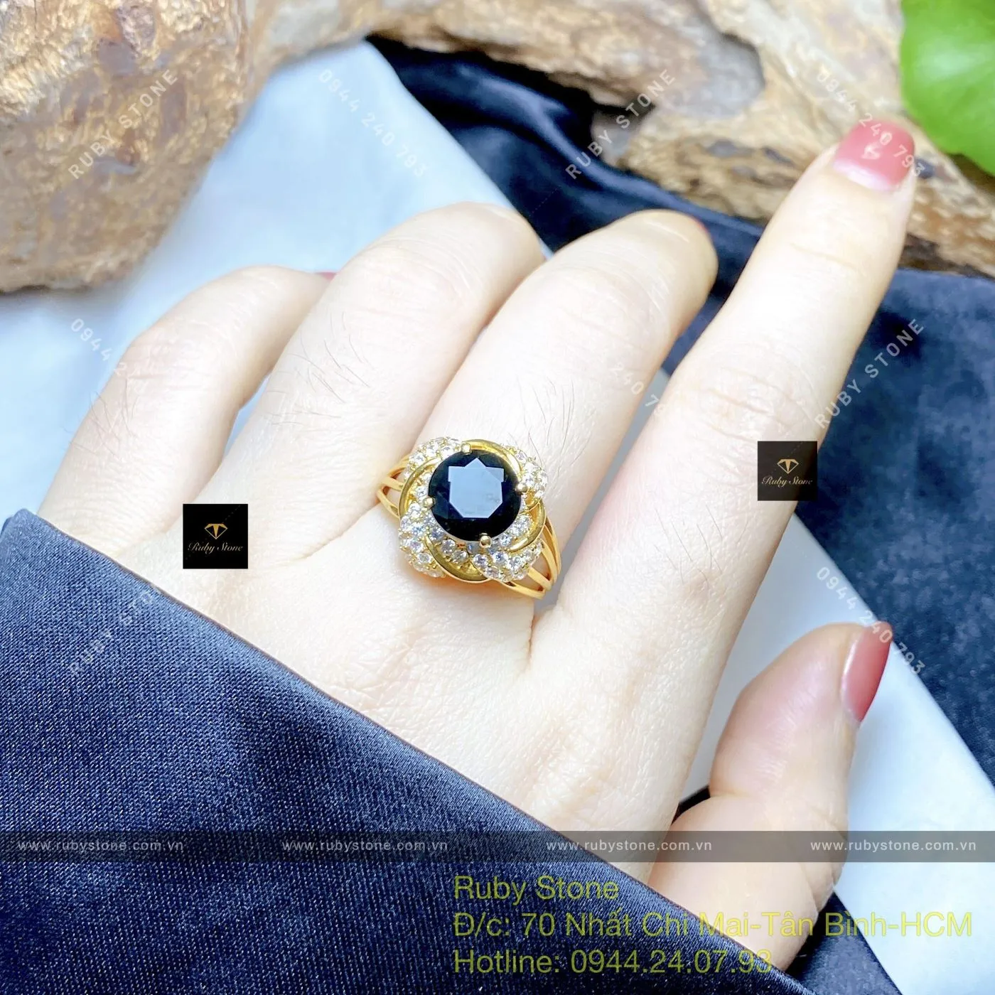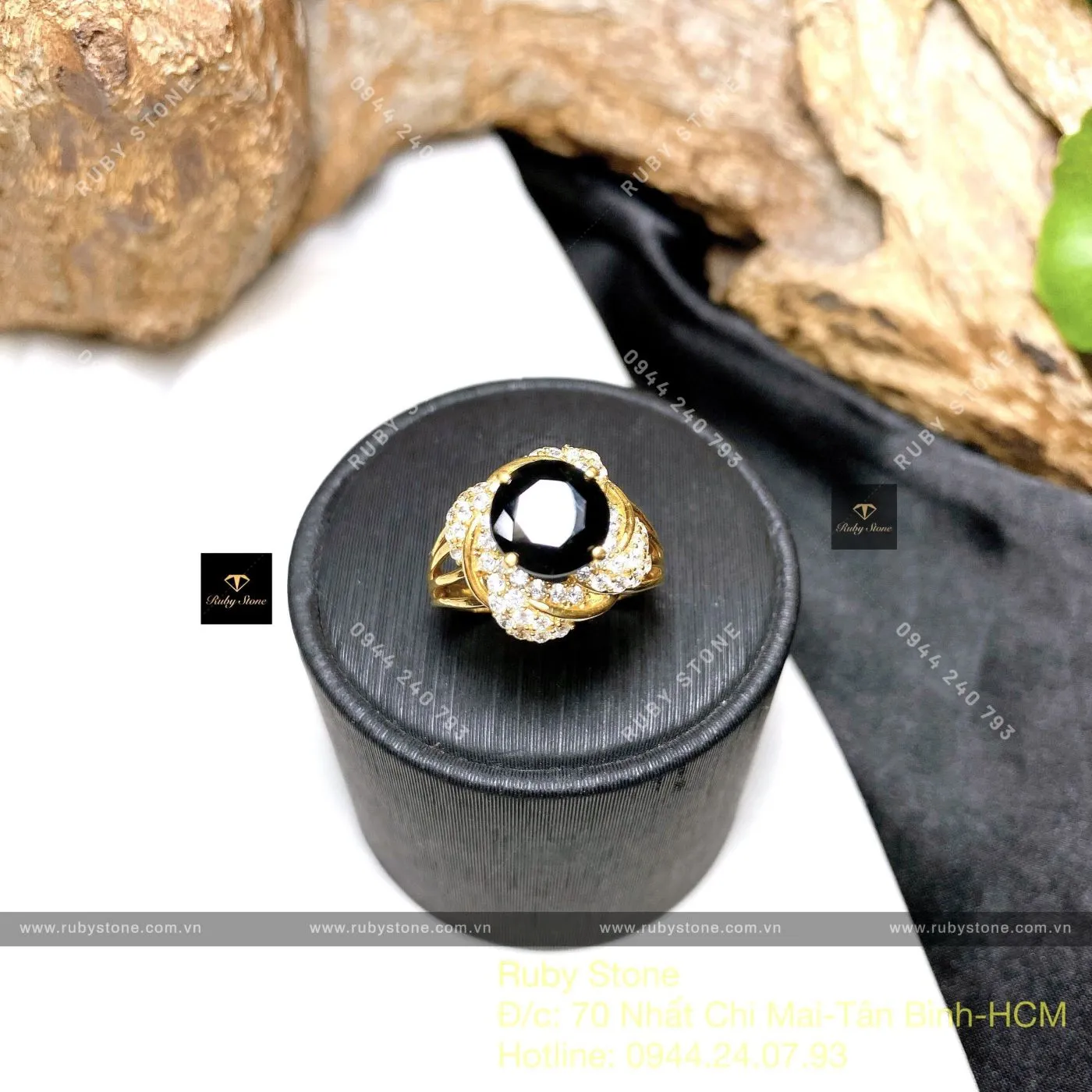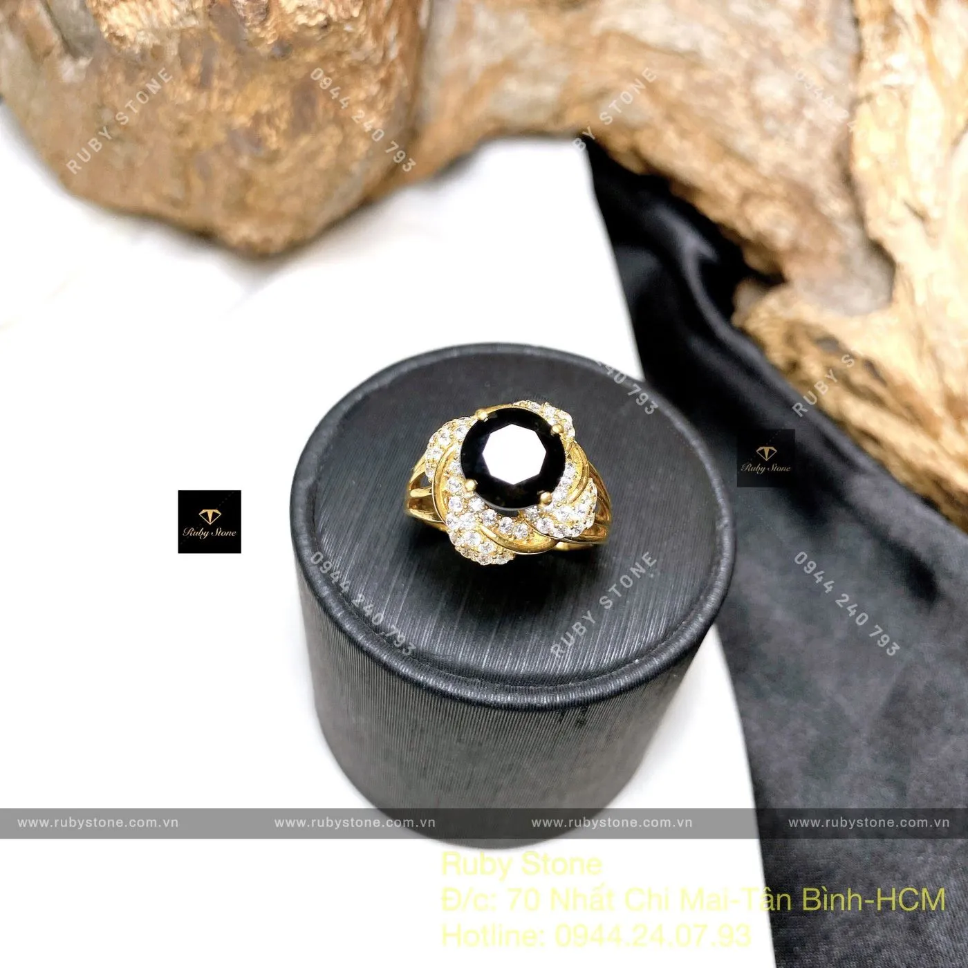Nhẫn nữ Phỉ thuý mực dục Myanmar mài giác, vàng 18k