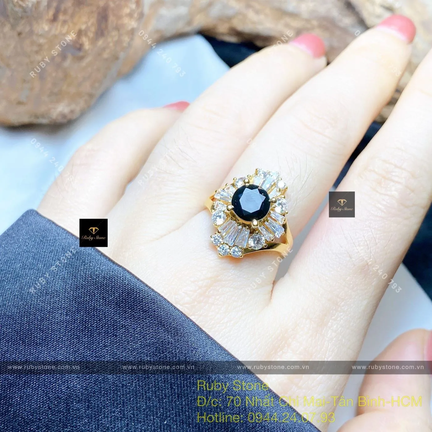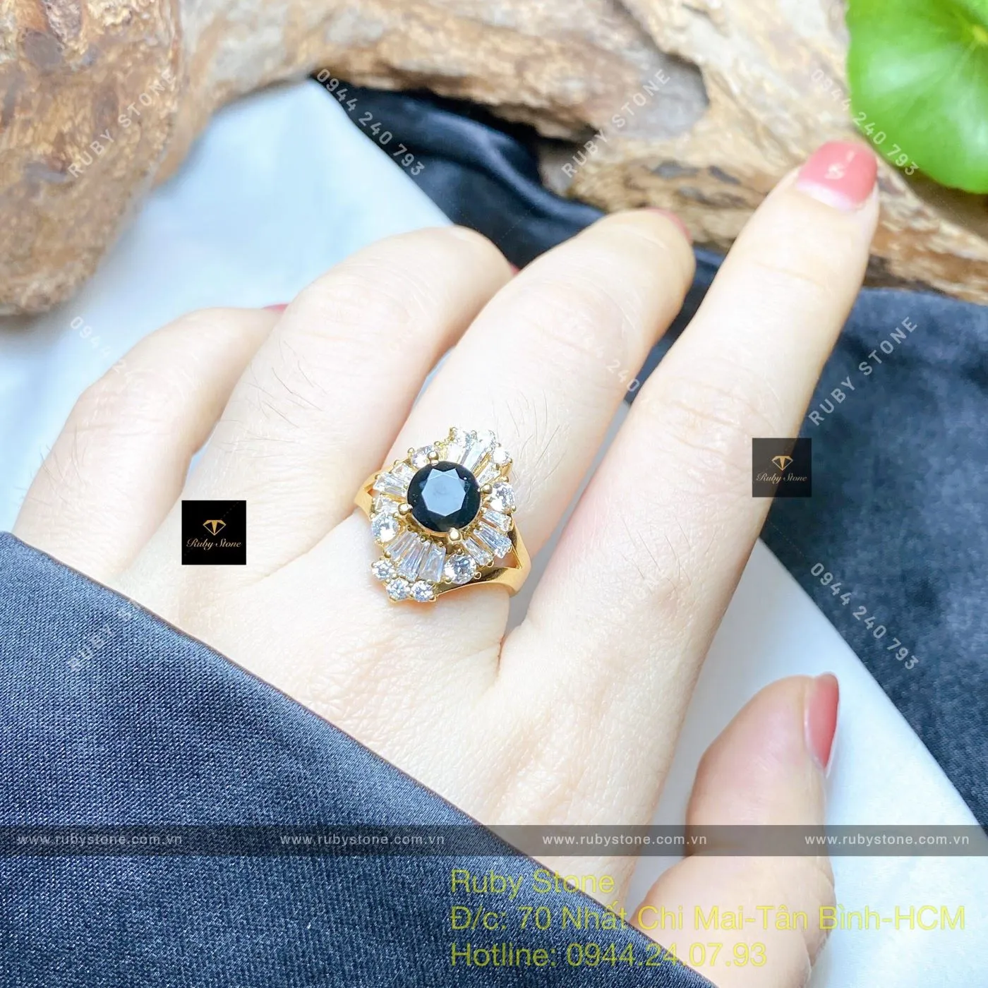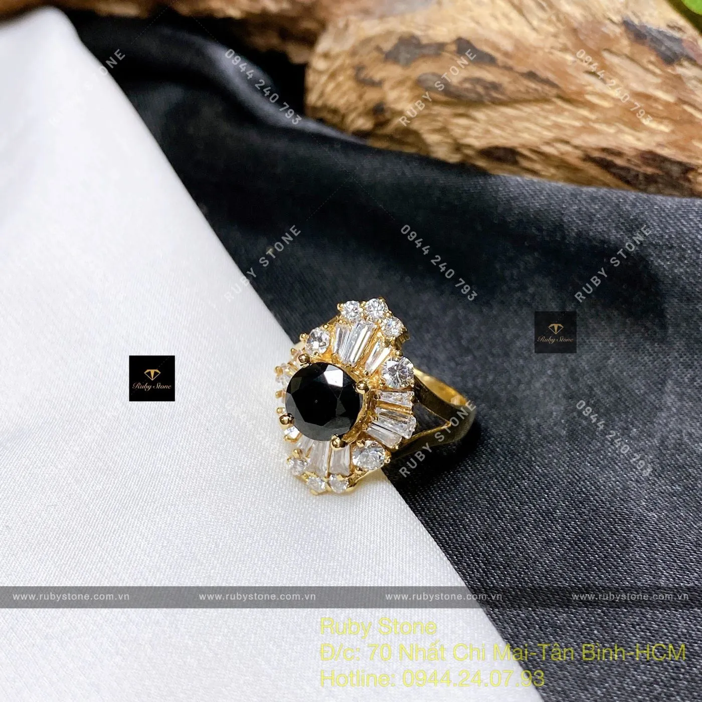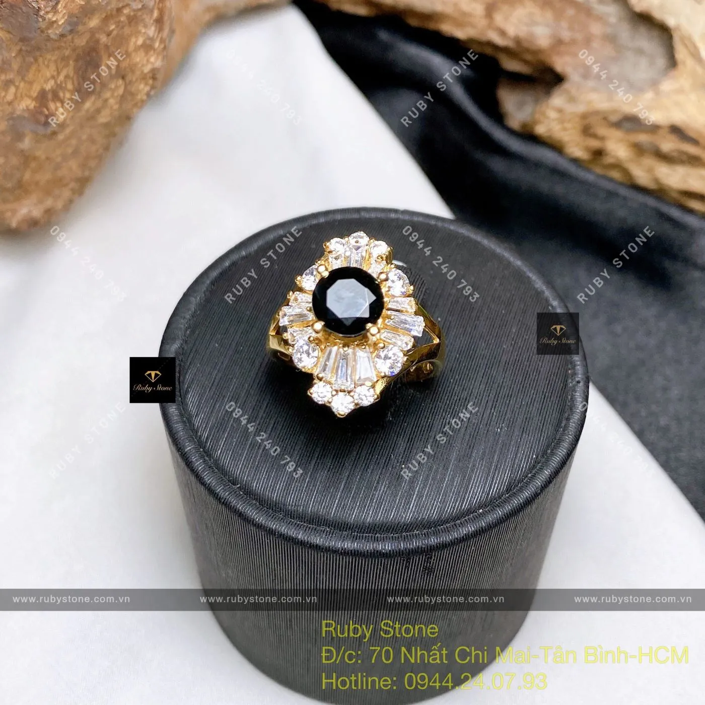 Nhẫn nữ Phỉ thuý mực dục Myanmar mài giác, vàng 18k