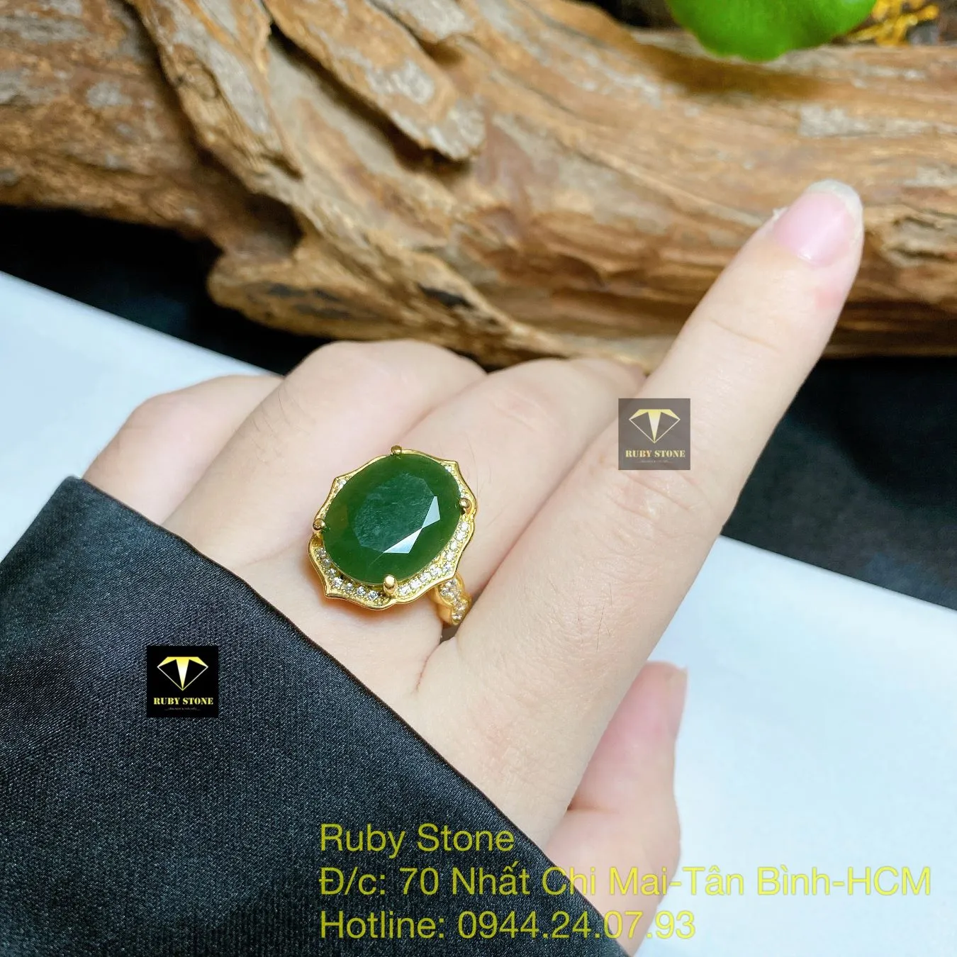 Nhẫn Oval Ngọc Bích Mài Giác, Vàng 18k - Ngọc Bích Phong Thủy