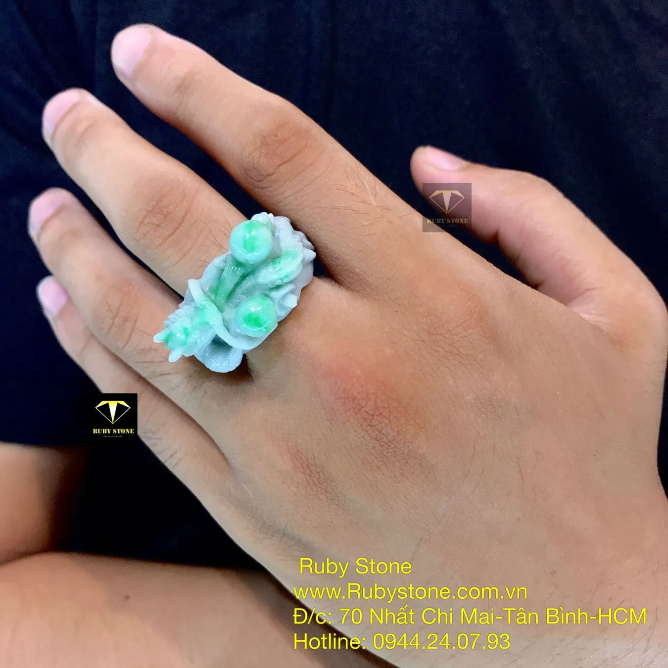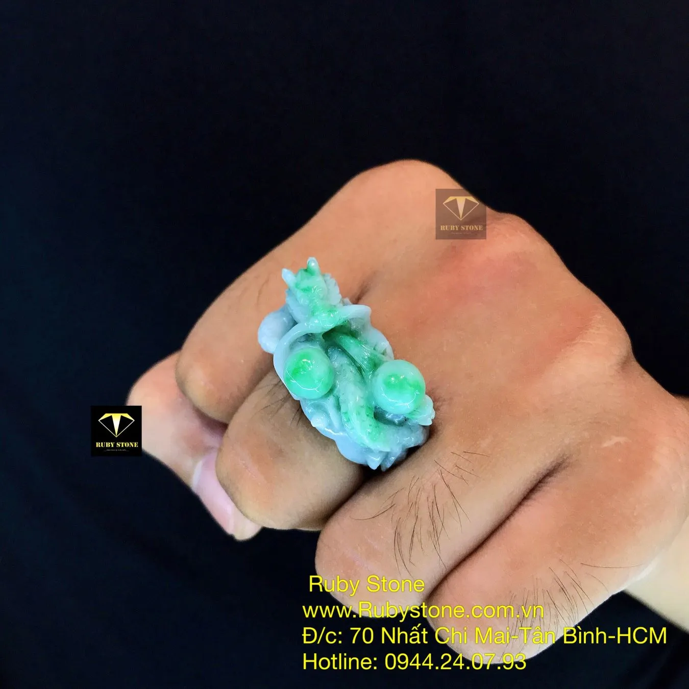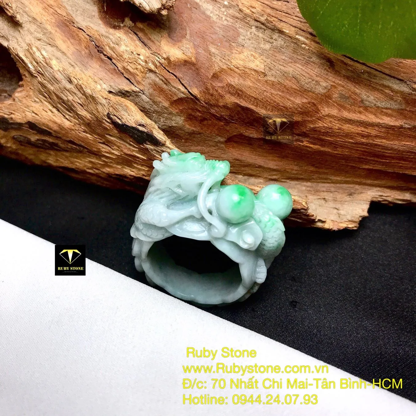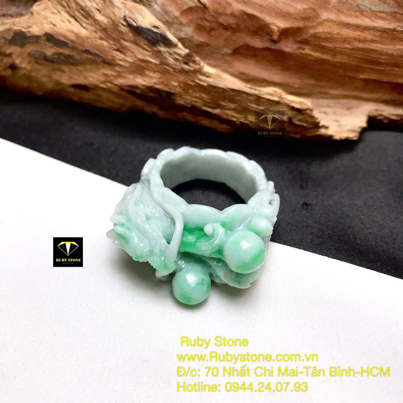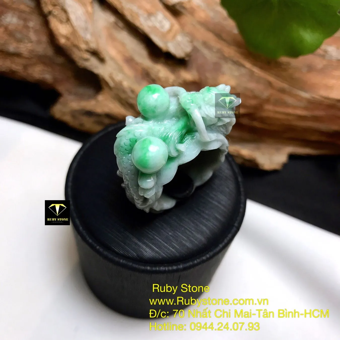 Nhẫn rồng ôm châu ngọc Cẩm thạch xanh lý