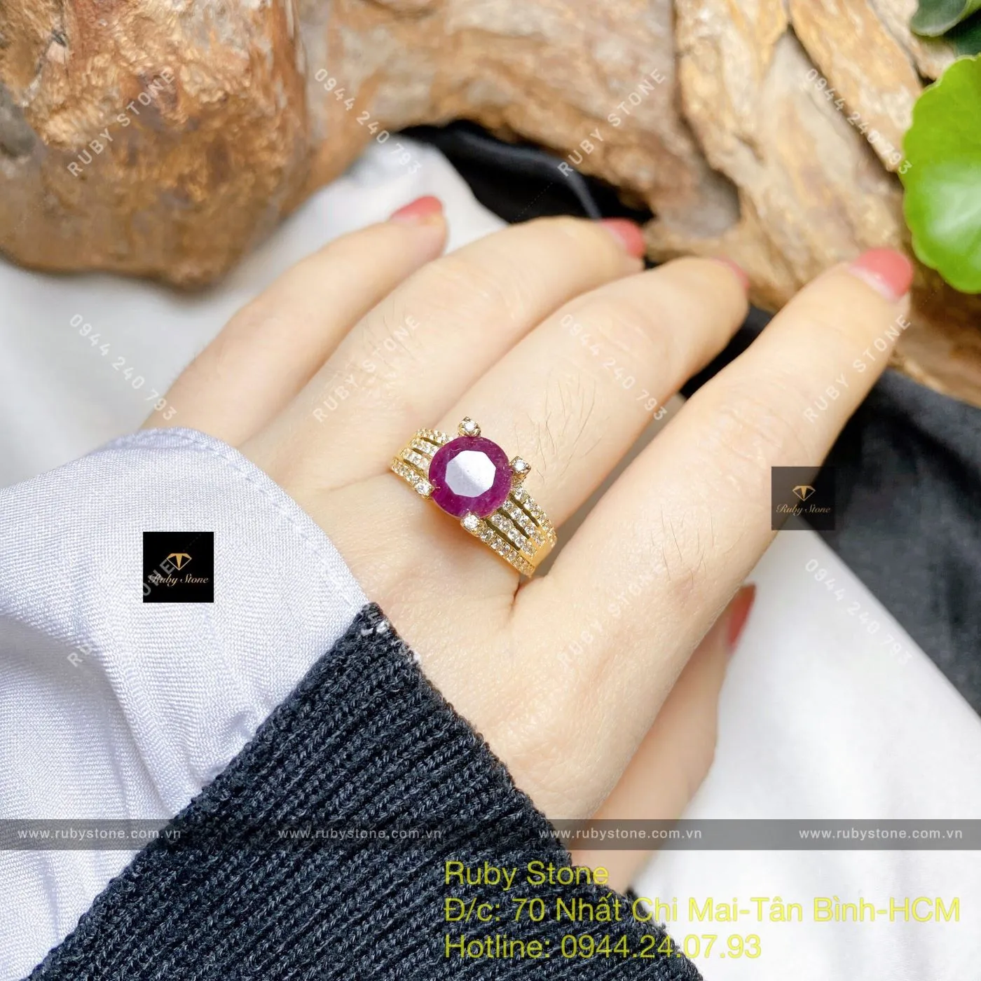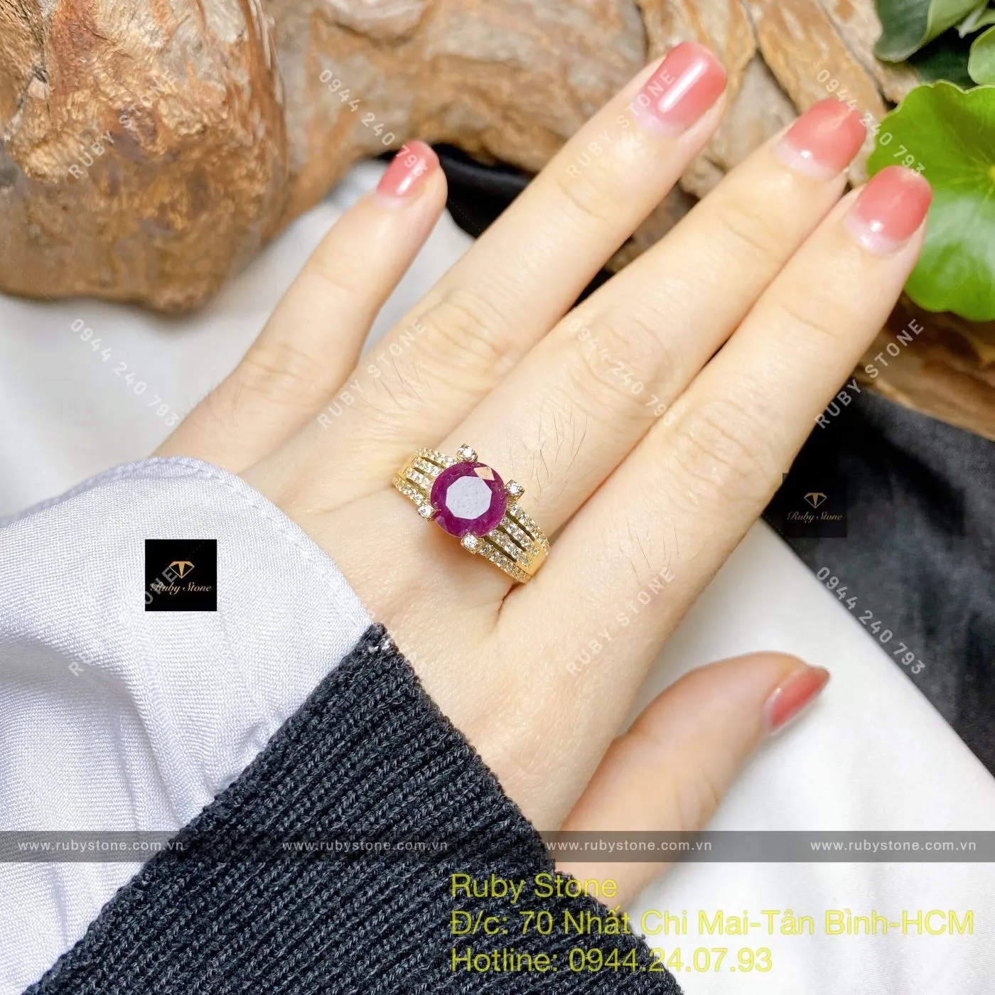 Nhẫn ruby Nam Phi mài giác 8,5 ly, vàng 18k