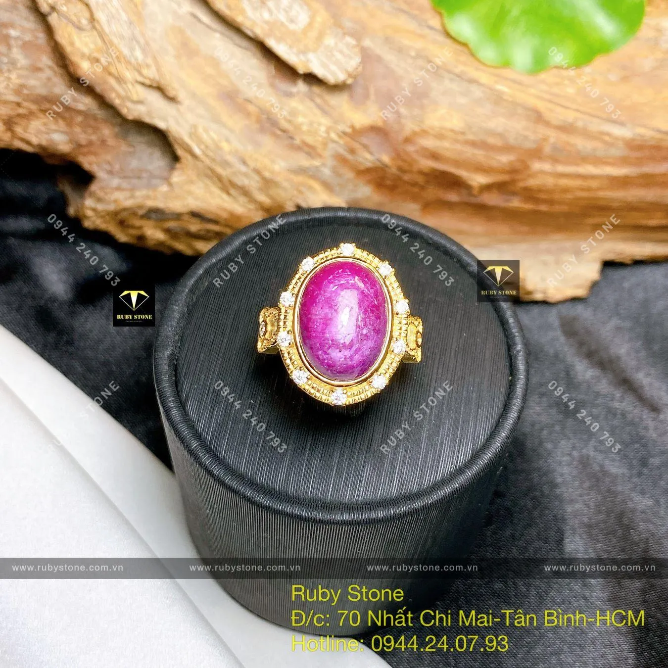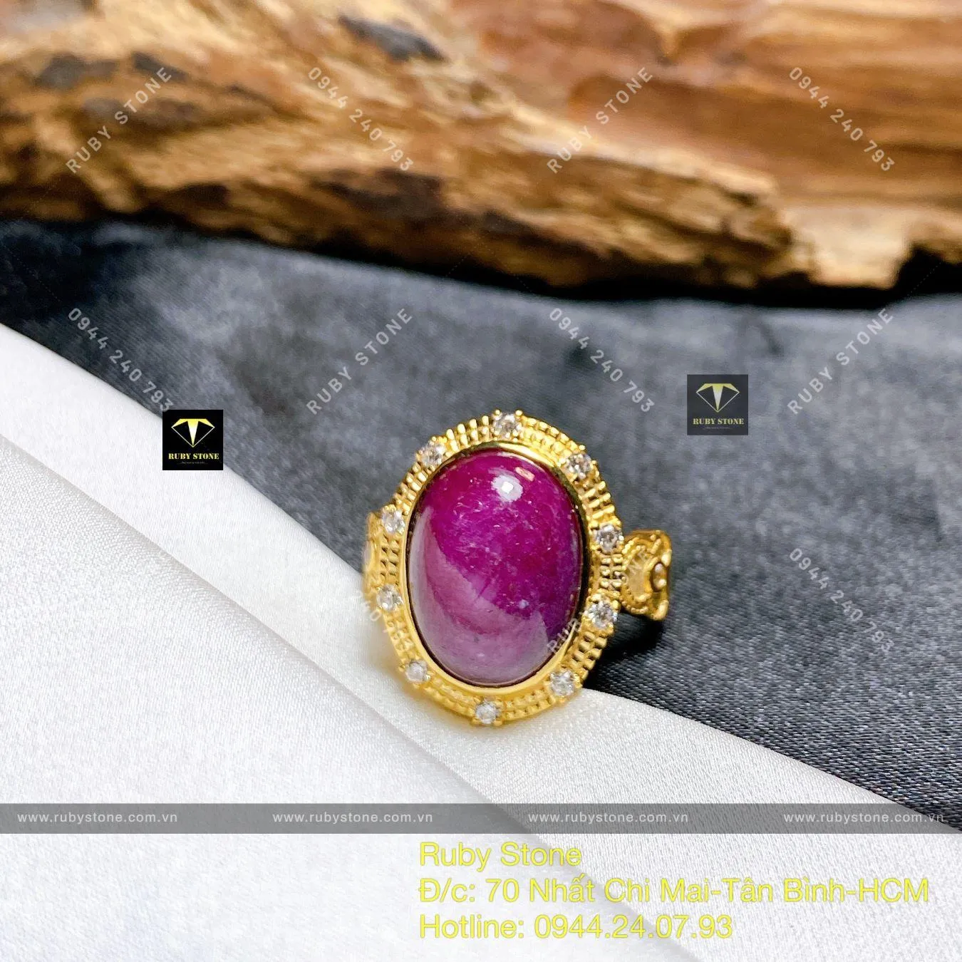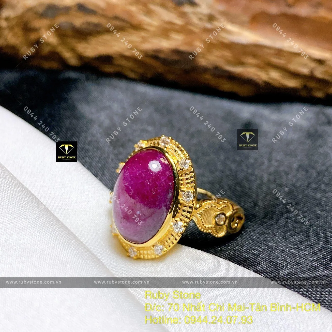 Nhẫn Oval Ruby Nam Phi, Vàng 18k - Ngọc Bích Phong Thủy
