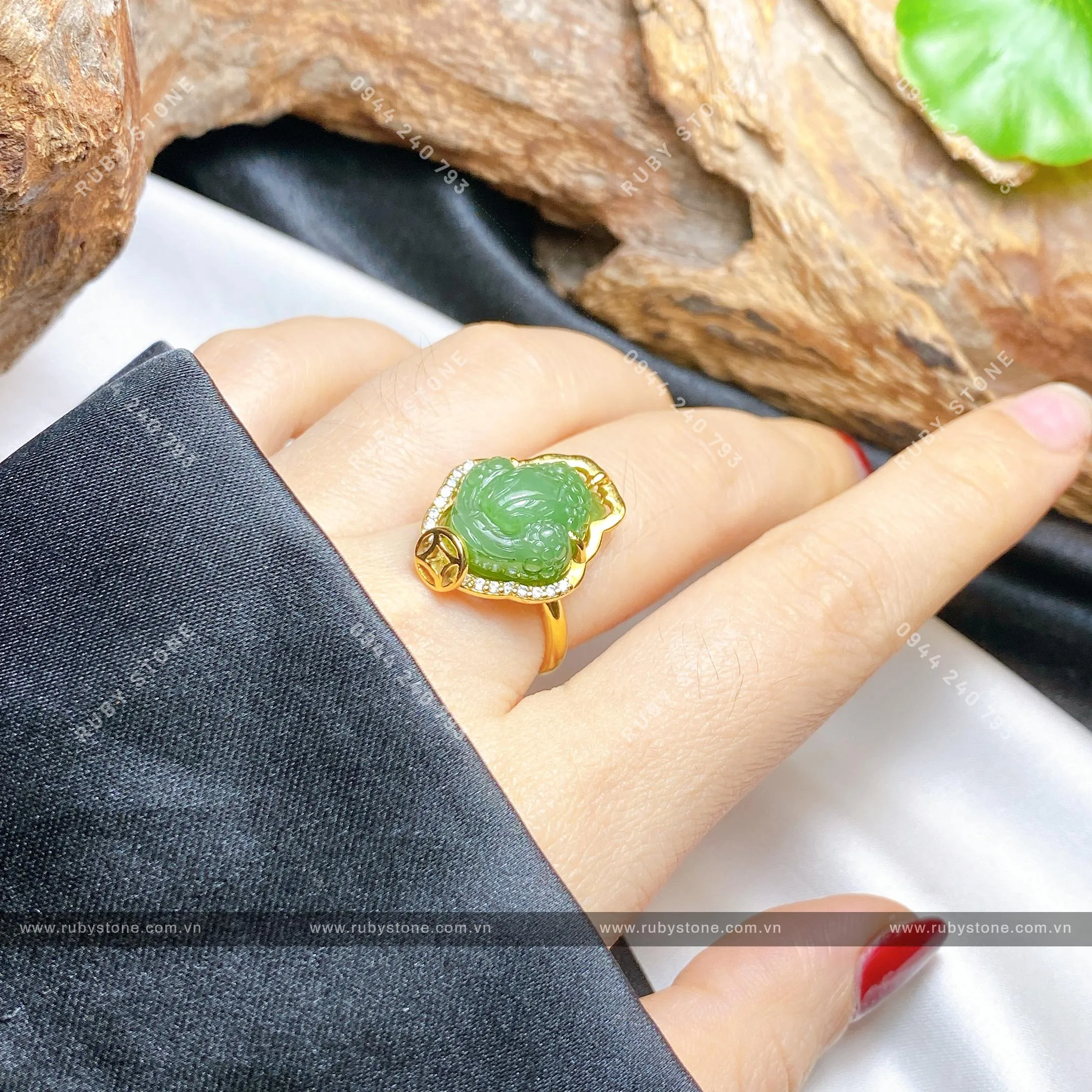 Nhẫn thiềm thừ ngọc bích Canada, vàng 18k