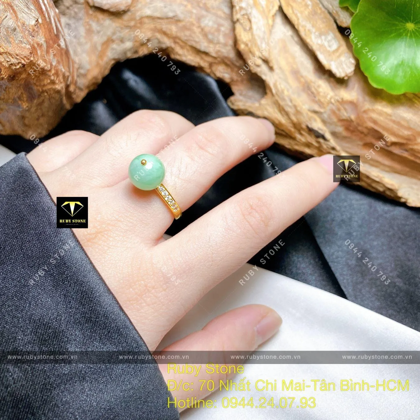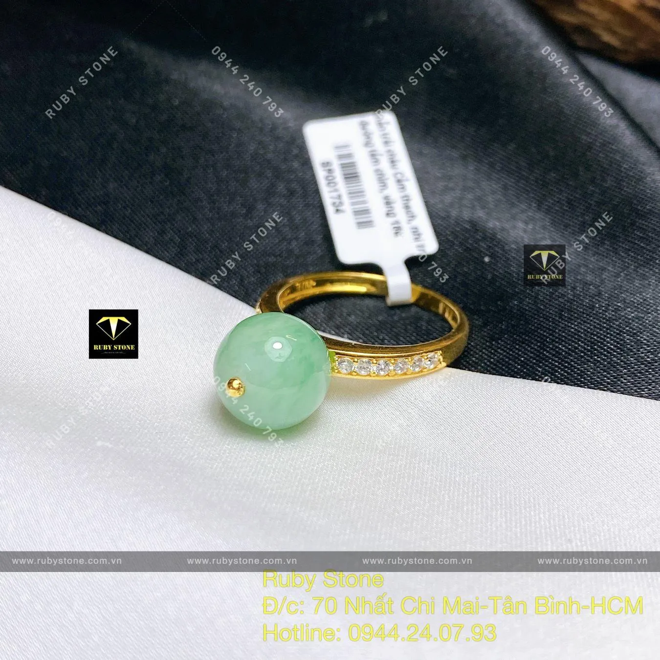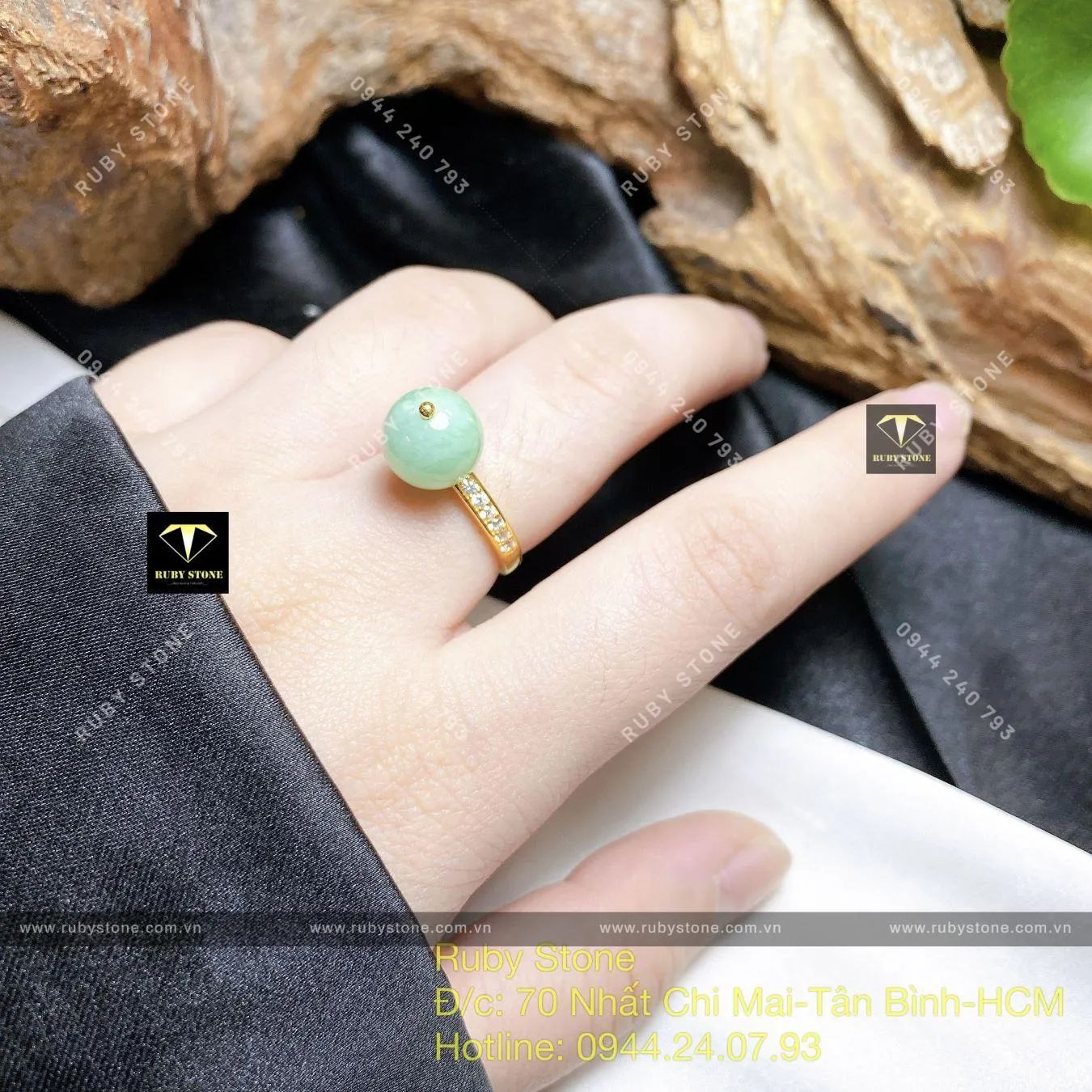 Nhẫn Trái Châu 10 Ly Ngọc Cẩm Thạch Lý Táo, Vàng 18k - Ngọc Bích Phong Thủy