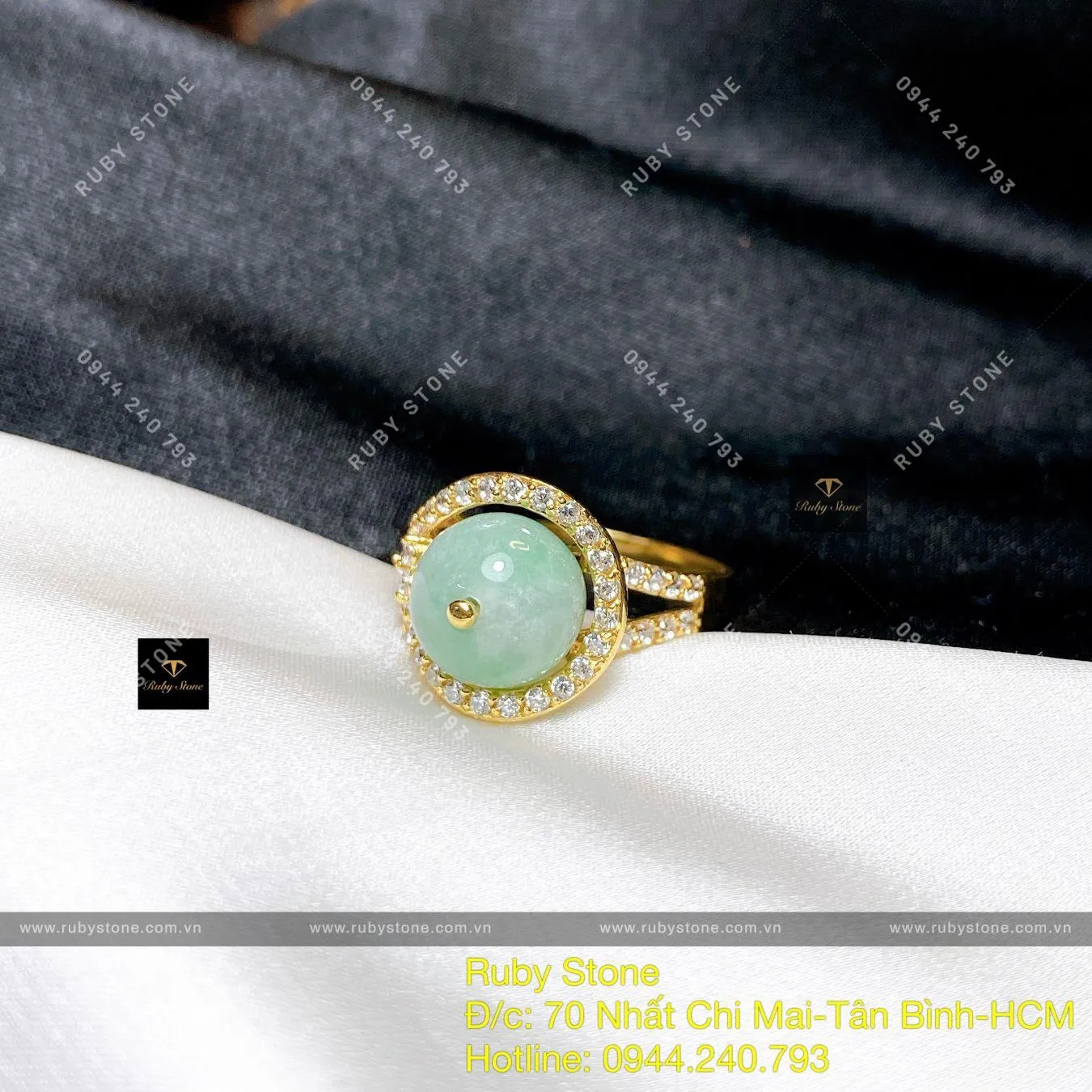 Nhẫn trái châu ngọc Cẩm thạch, vàng 18k