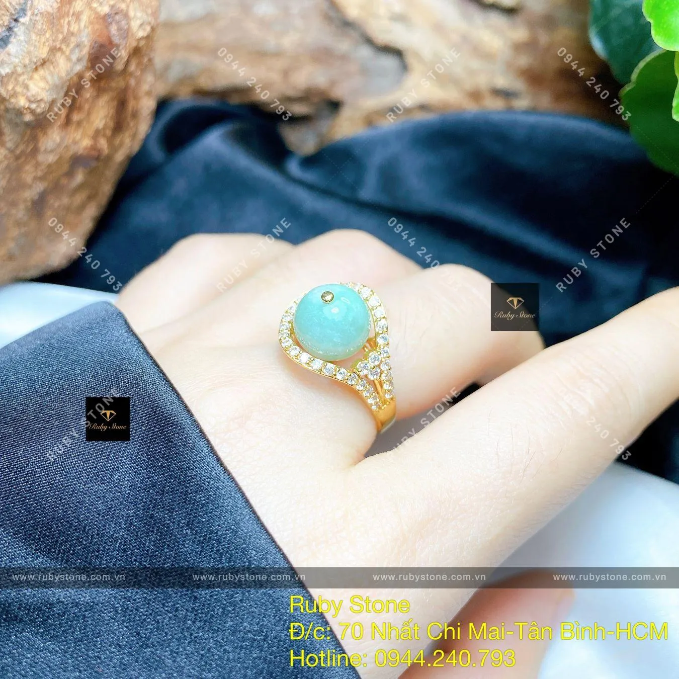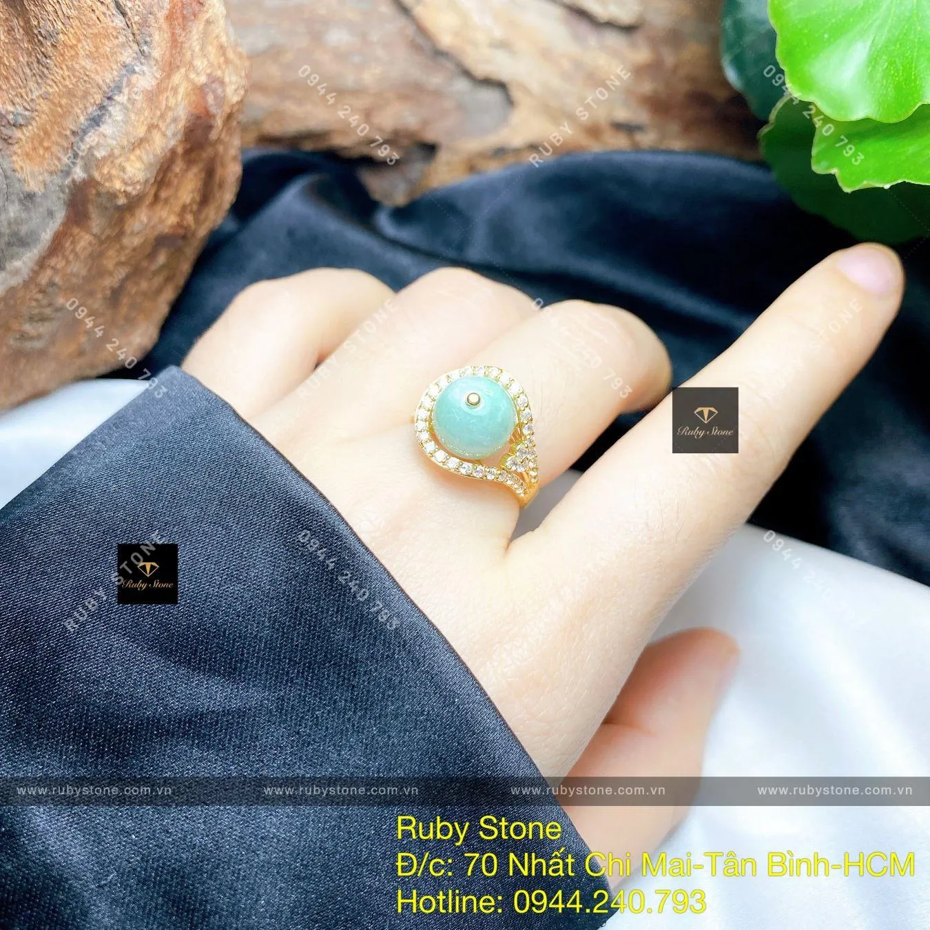 Nhẫn Trái Châu Ngọc Cẩm Thạch, Vàng 18k - Ngọc Bích Phong Thủy