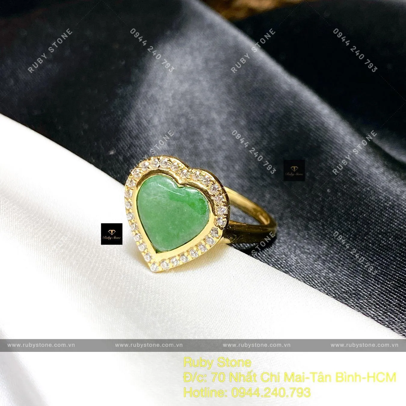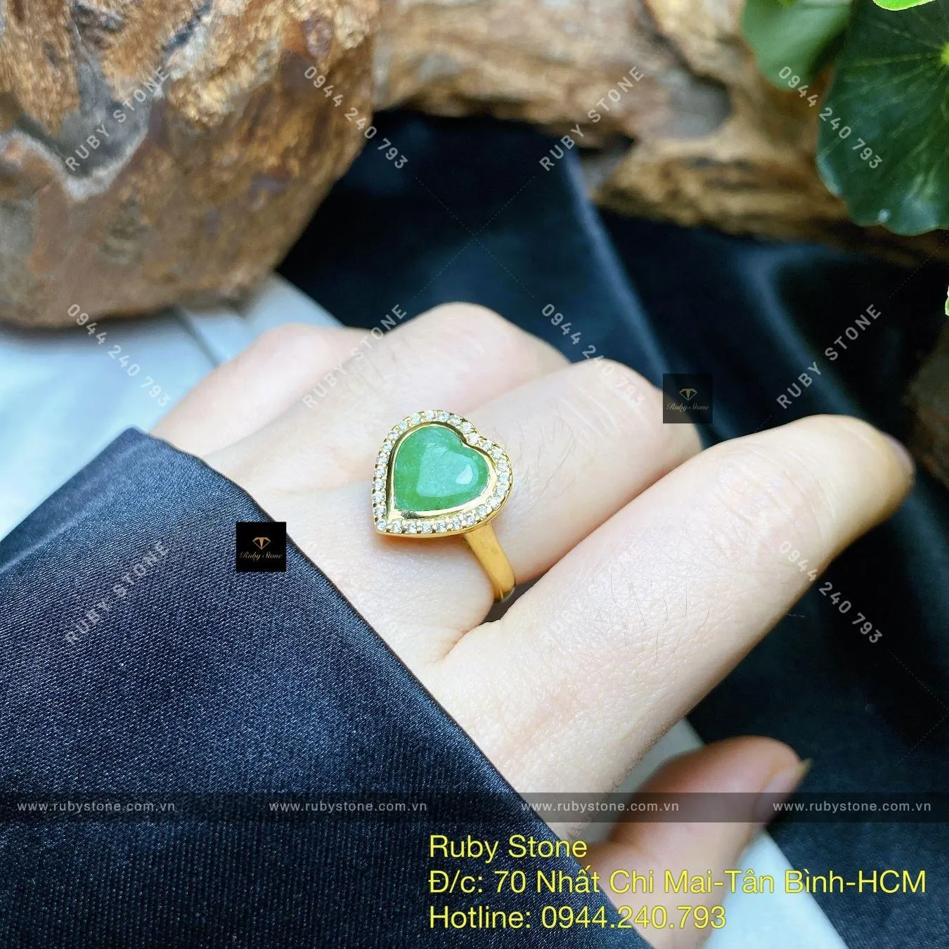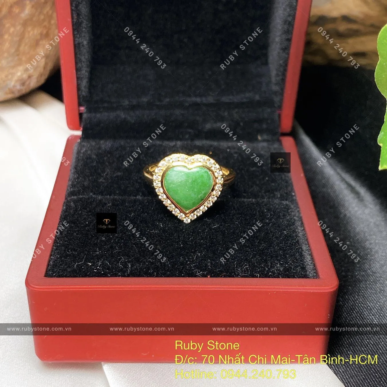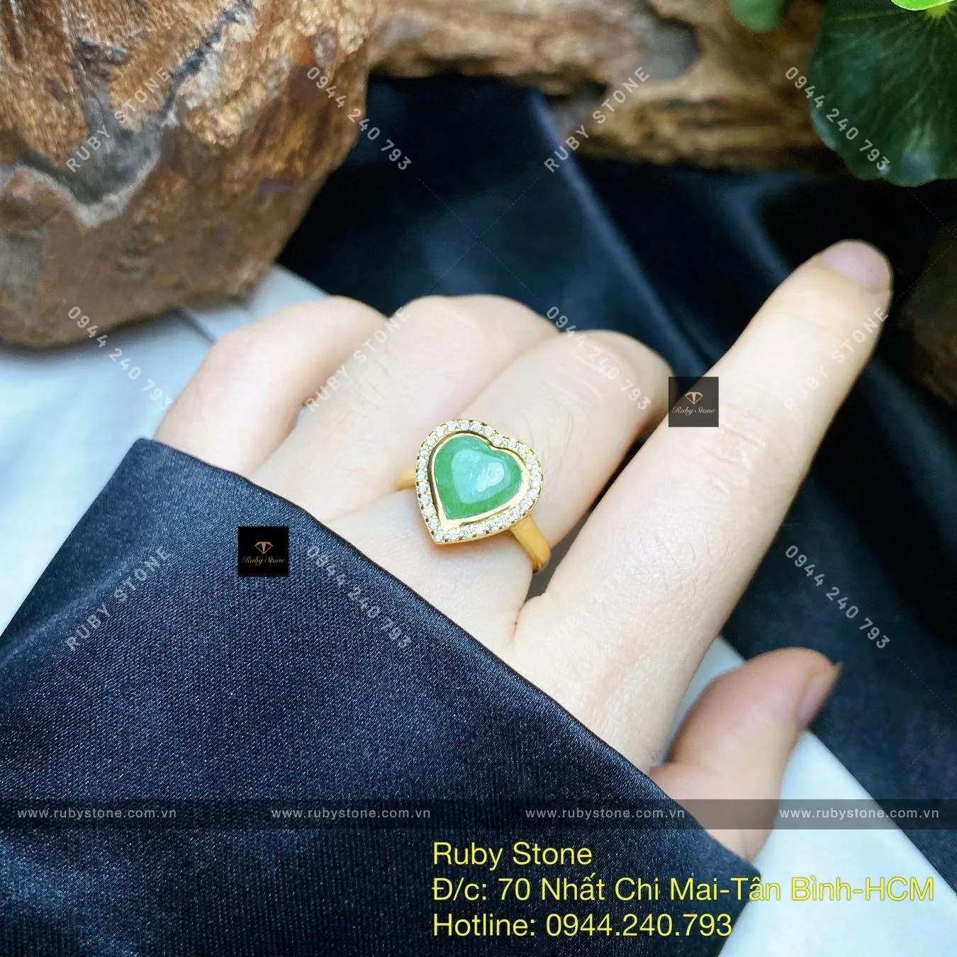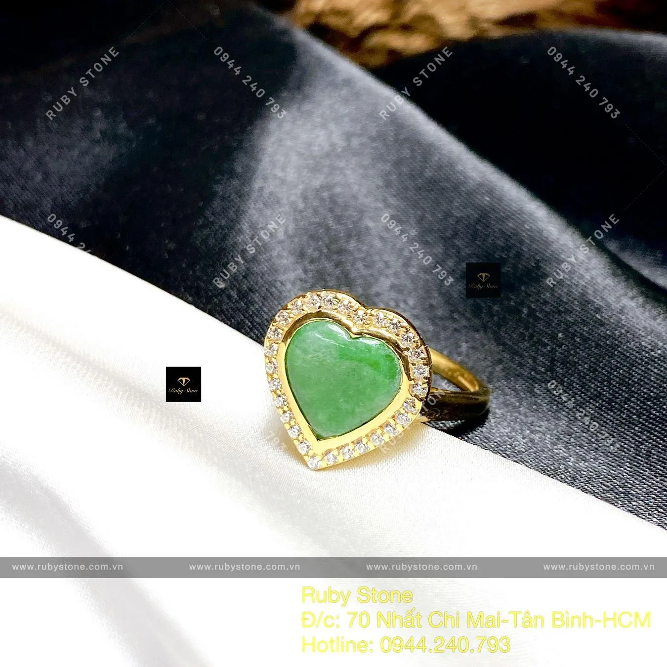 Nhẫn Trái Tim Ngọc Cẩm Thạch Xanh Lý Táo, Vàng 18k - Ngọc Bích Phong Thủy