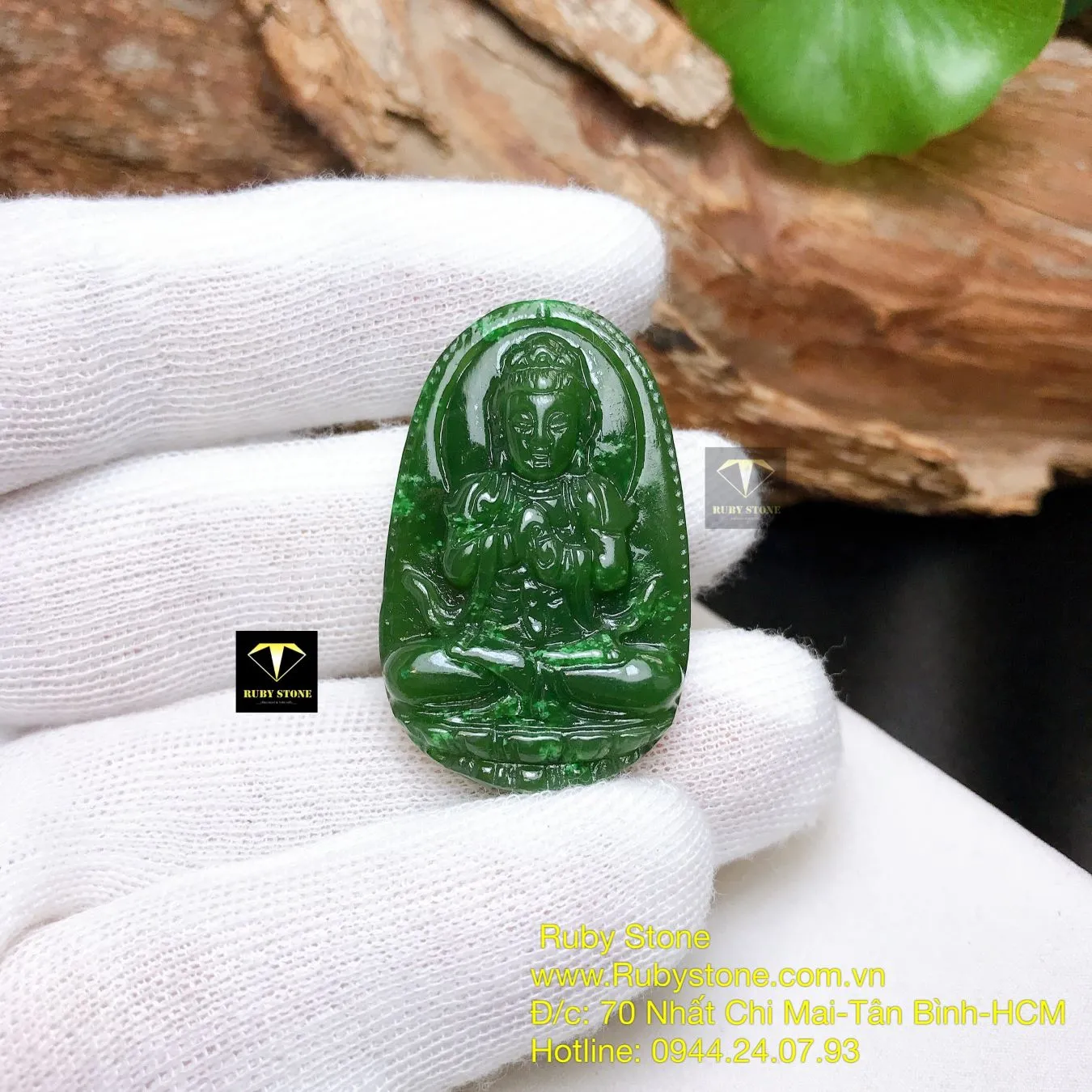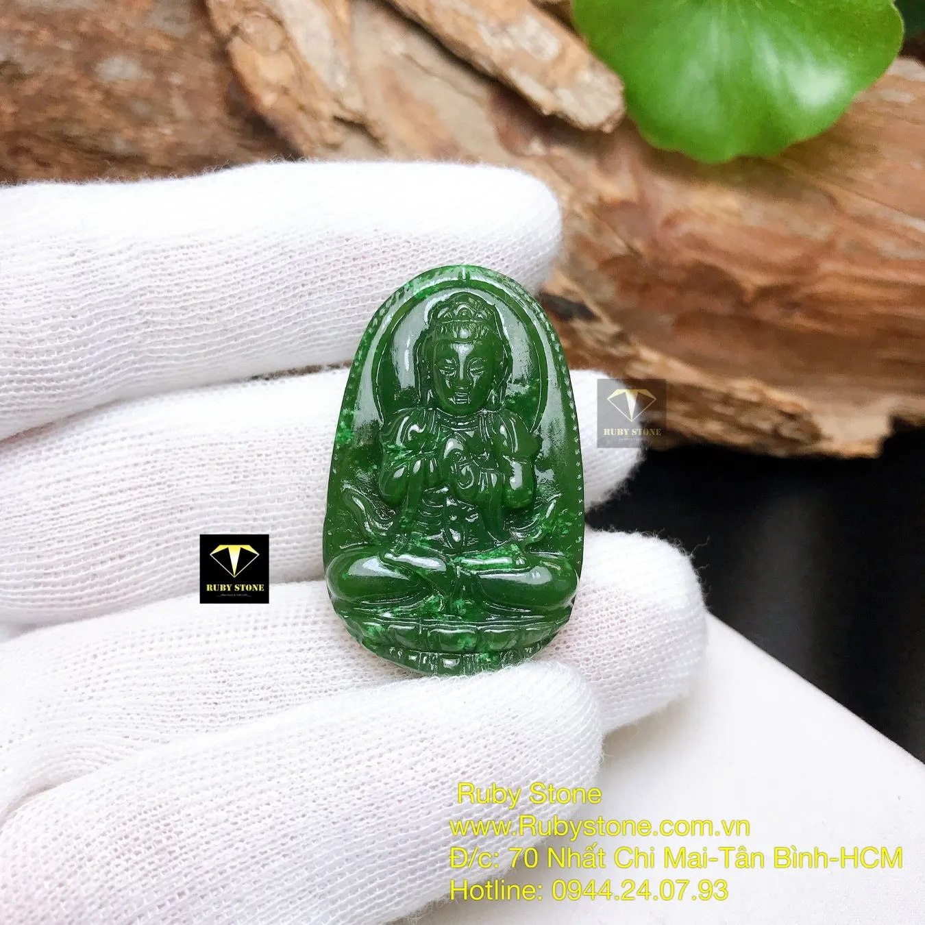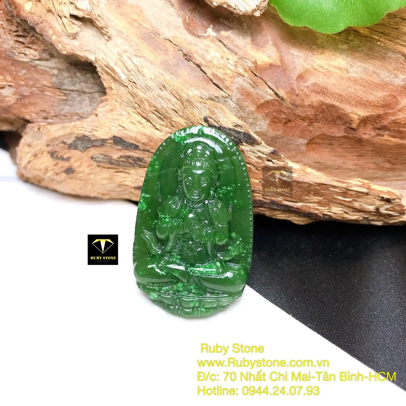 Như Lai đại Nhật Bồ Tát - Phật Bản Mệnh Ngọc Bích Tuổi Mùi - Thân, Kích Thước 37mm - Ngọc Bích Phong Thủy