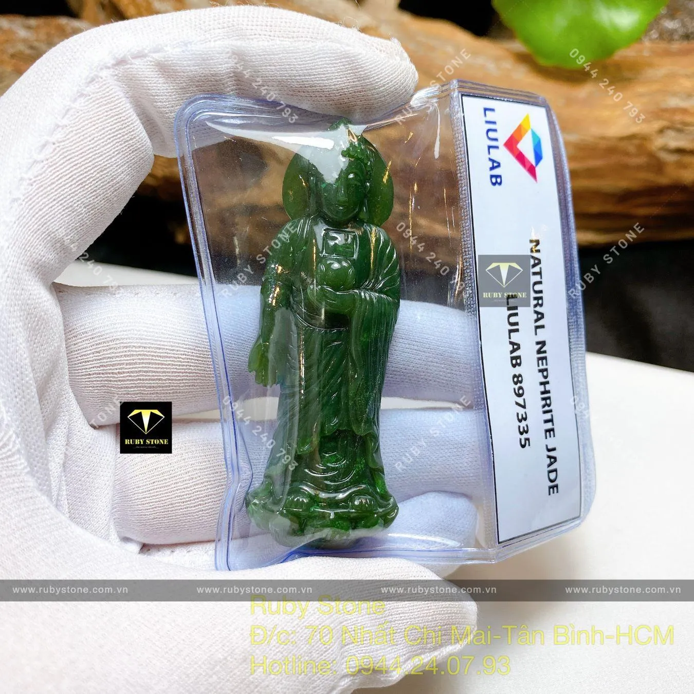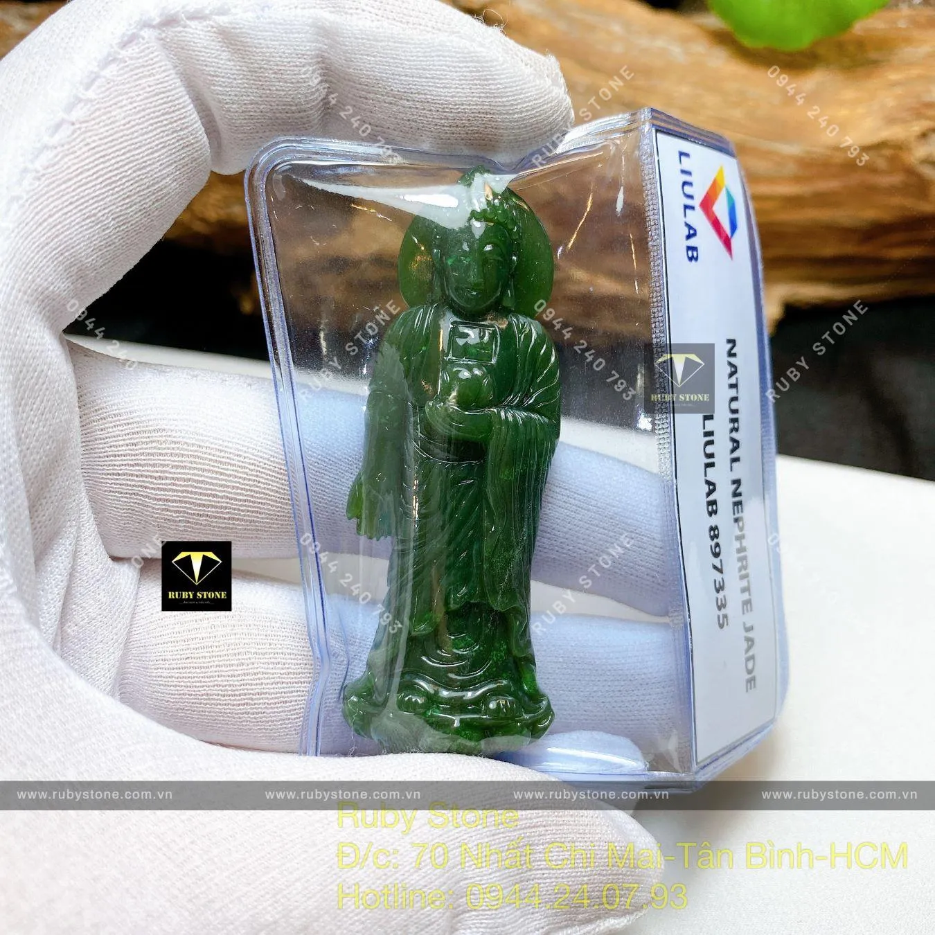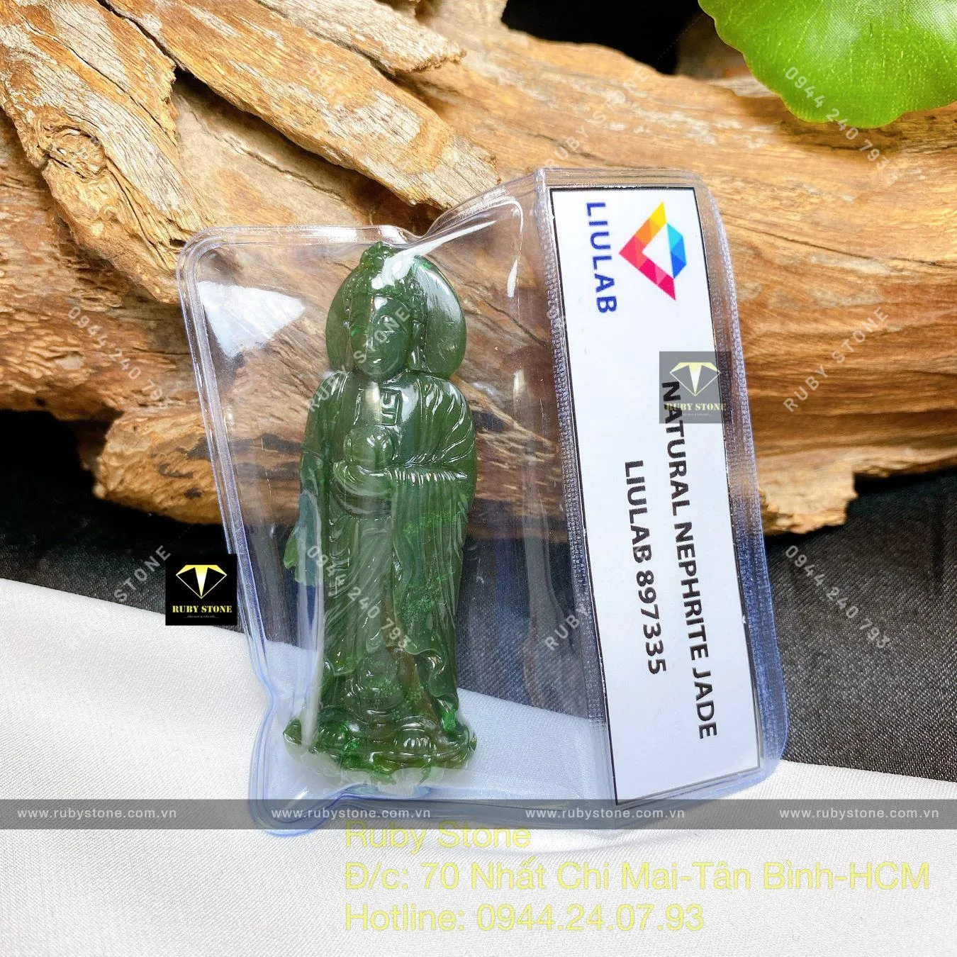Phật Adida Ngọc Bích Canada Chạm Tay Tinh Xảo, KT 60mm - Ngọc Bích Phong Thủy