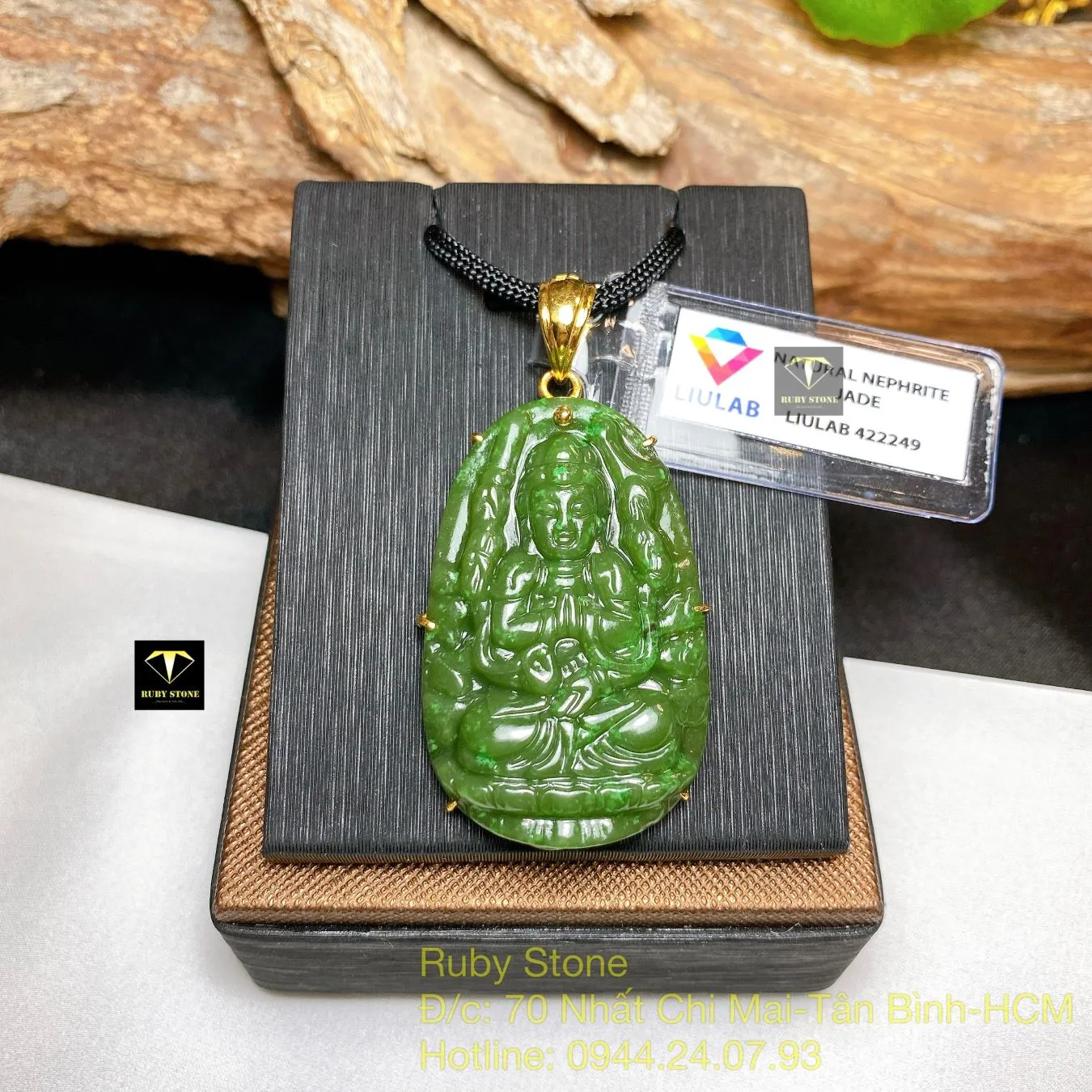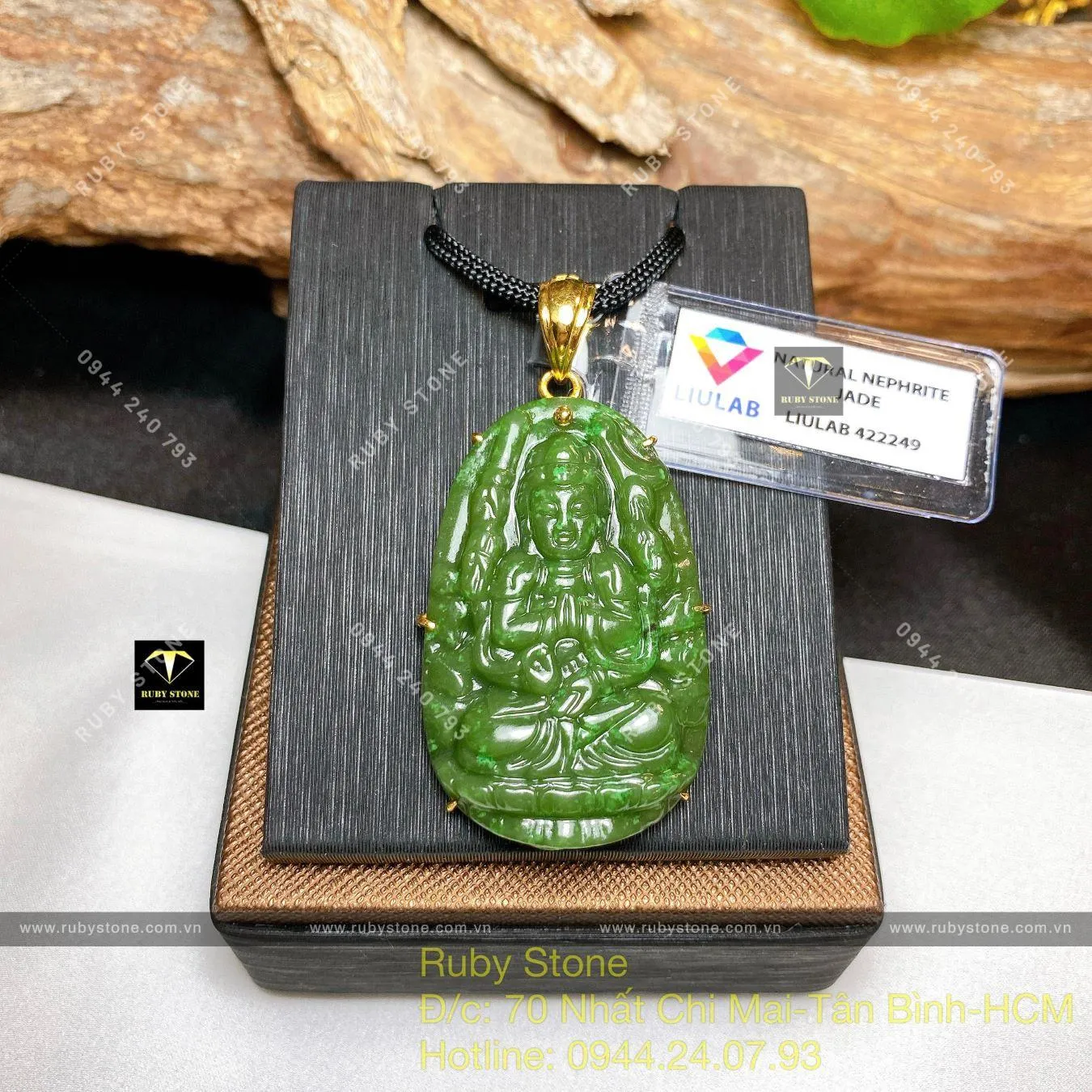 Phật bản mệnh ngọc bích Canada, vàng 18K (750), KT 43mm