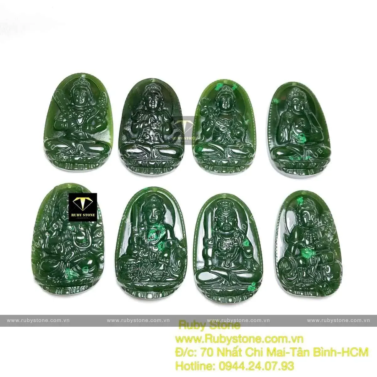 Trong 12 con giáp trong năm đều có những vị phật bản mệnh riêng, giúp bảo vệ, hộ mệnh, đem lại bình an, sức khoẻ, may mắn và thành công, mặt đá dây chuyền phong thuỷ hình Phật, trang sức phong thuỷ hộ mạng đeo cổ trừ tà được chế tác tinh xảo từ đá quý may mắn.
