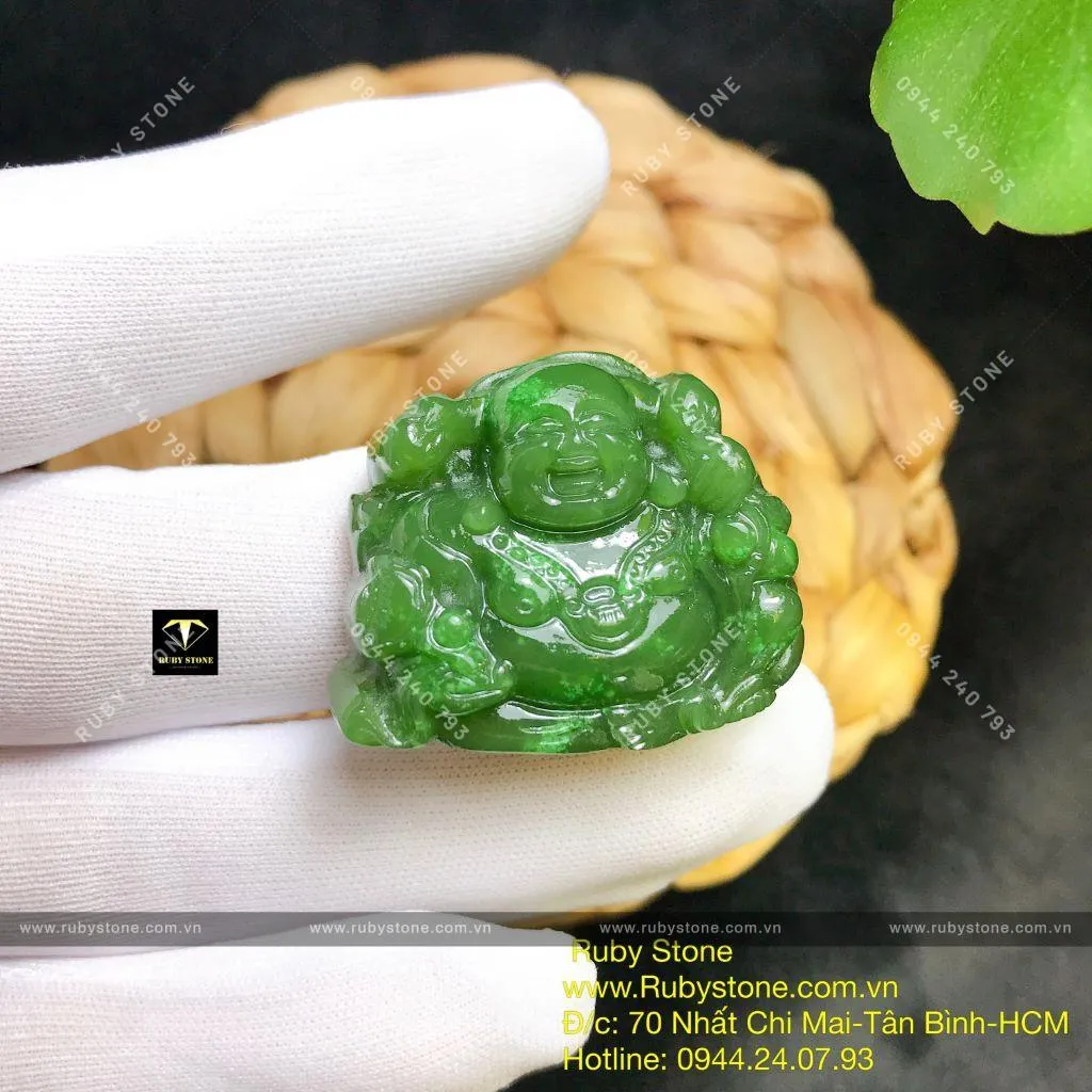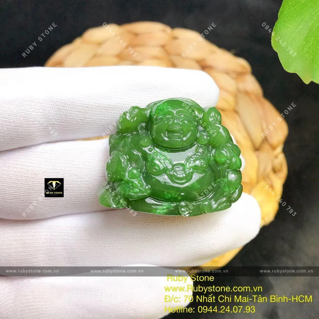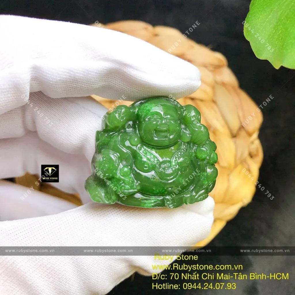 Phật Di Lặc Ngọc Bích Canada Xanh, KT 29mm - Ngọc Bích Phong Thủy
