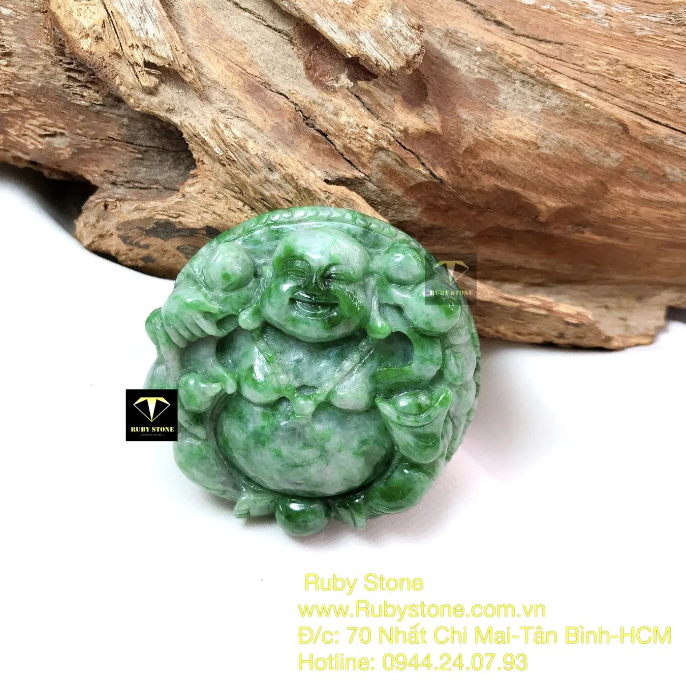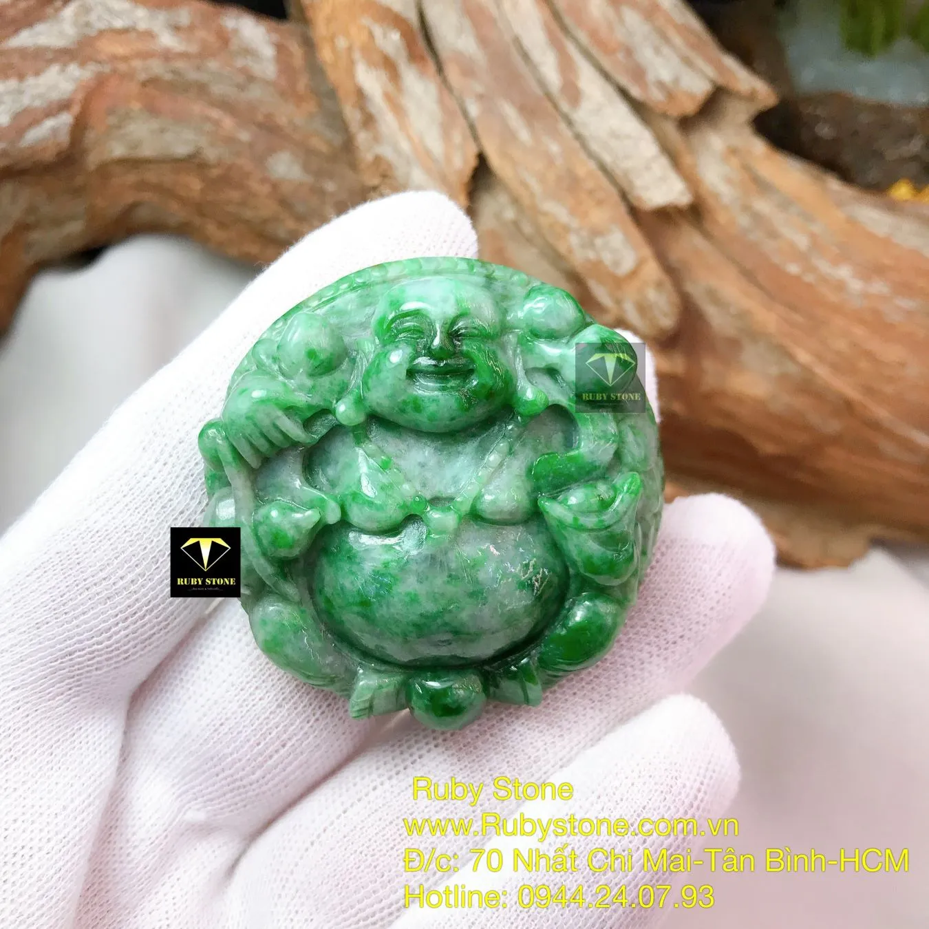 Phật Di Lặc Ngọc Cẩm Thạch Sơn Thuỷ, Kích Thước 49mm - Ngọc Bích Phong Thủy