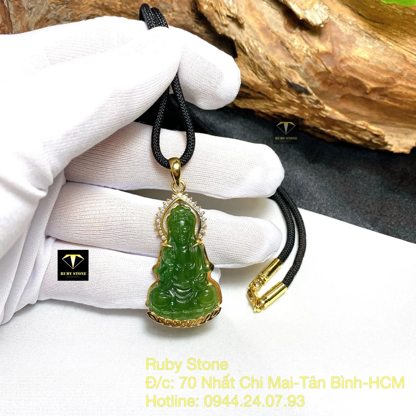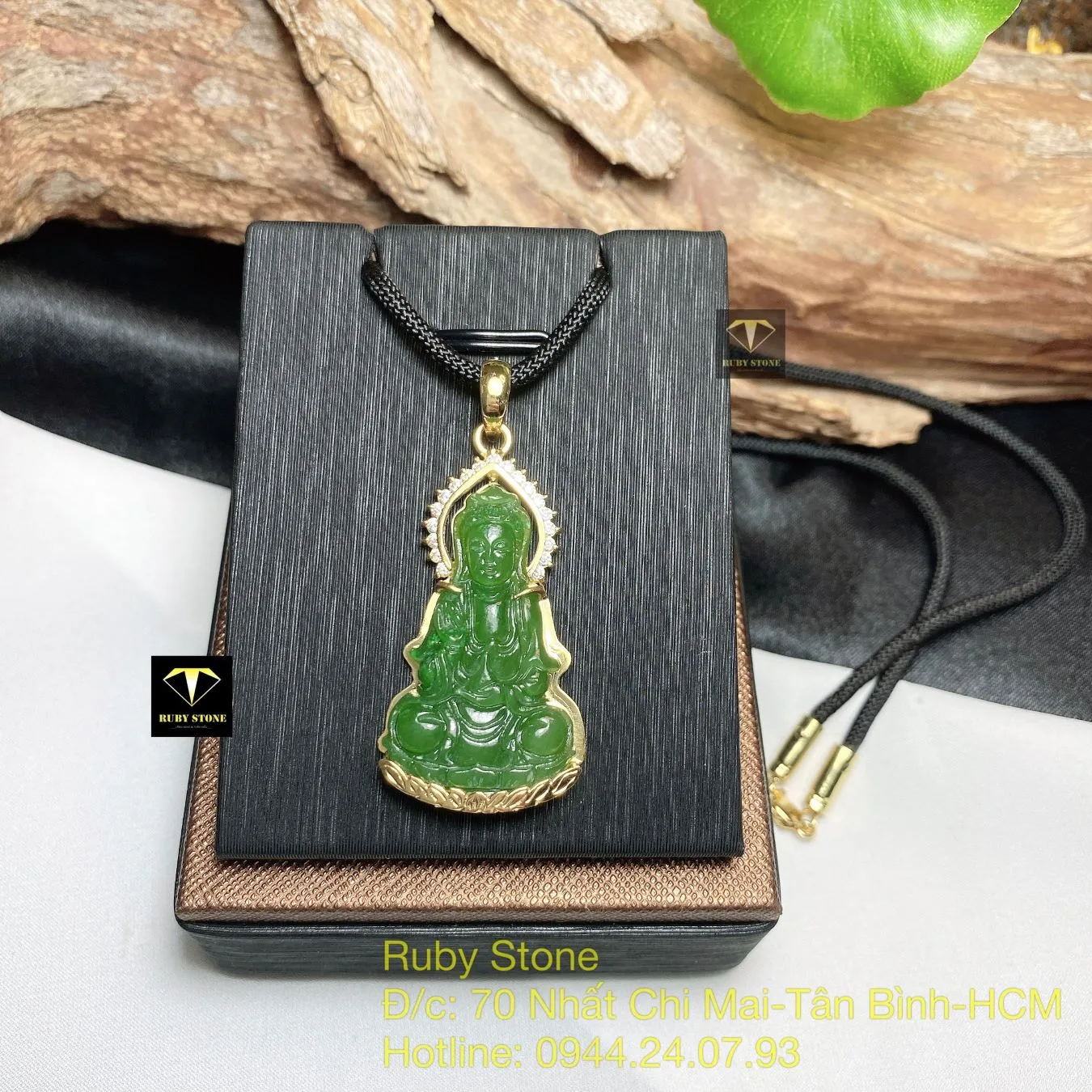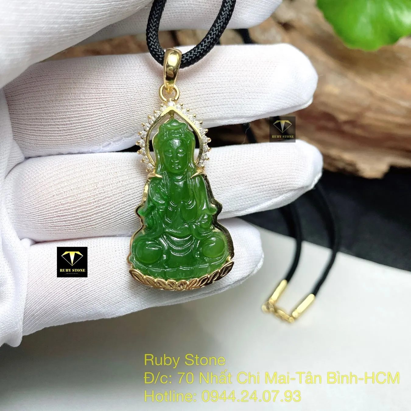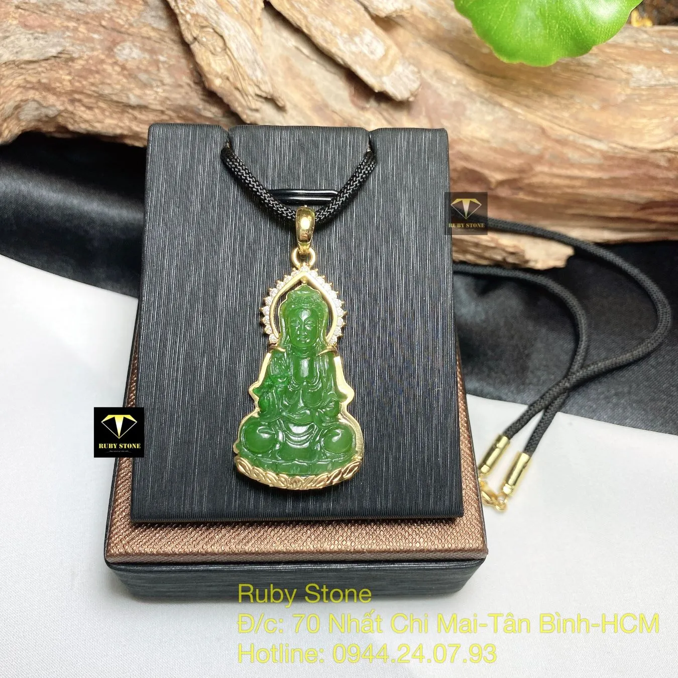 Phật Quan Âm Ngọc Bích Canada Xanh Lá, Vàng 18k - Ngọc Bích Phong Thủy