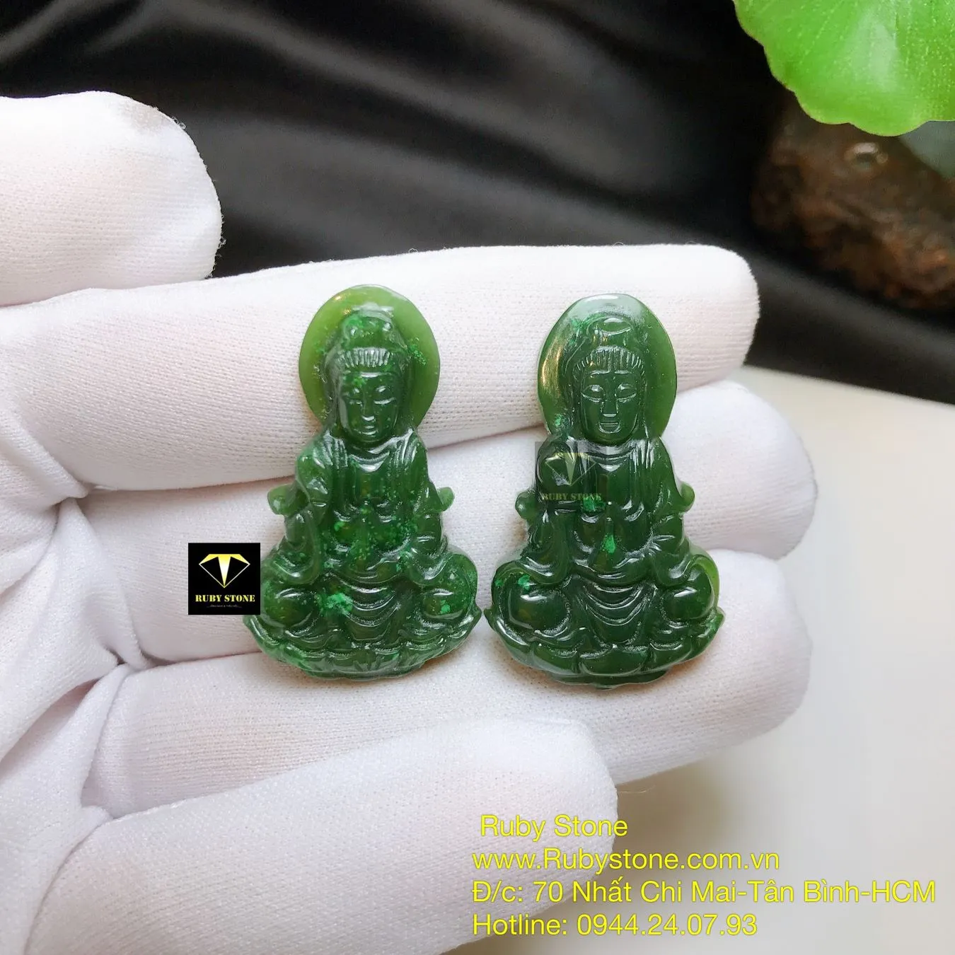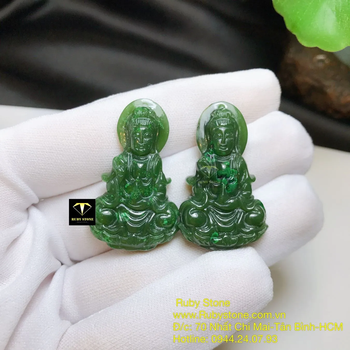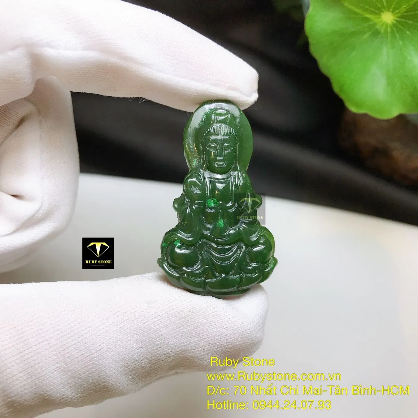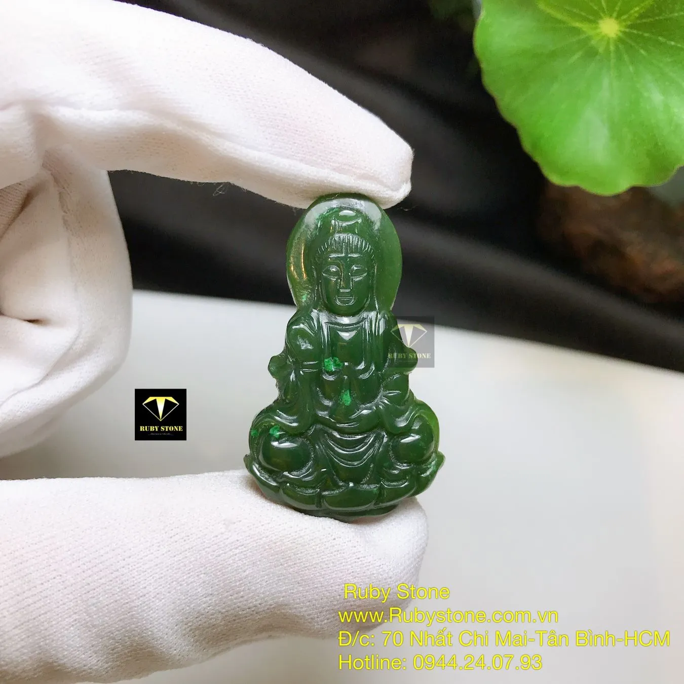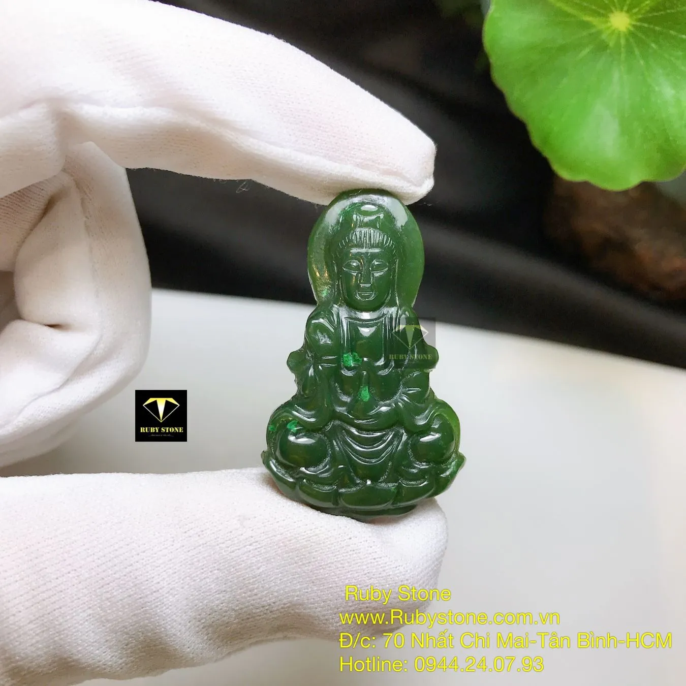 Phật Quan Âm ngọc bích Canada xanh đậm, KT 39mm