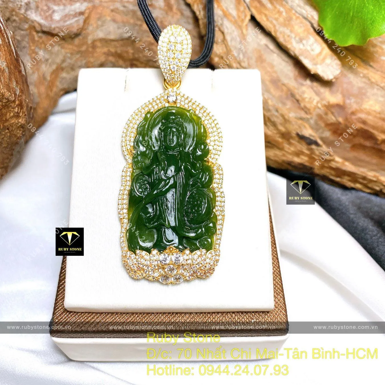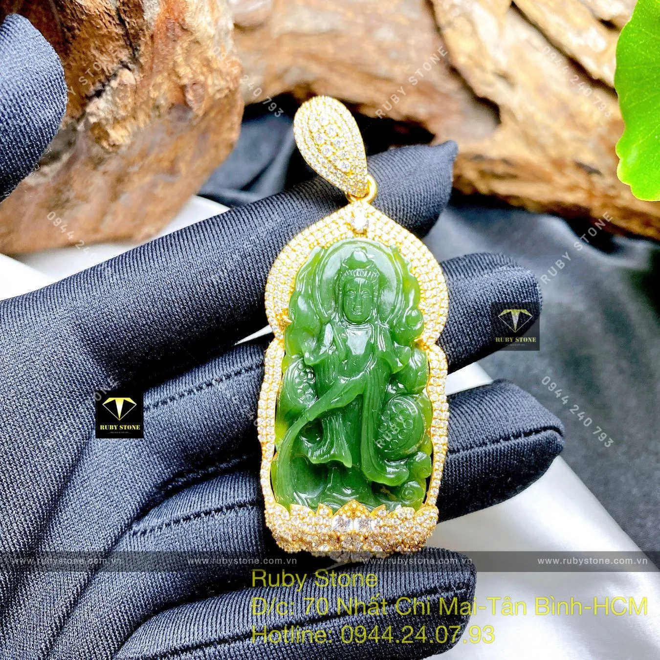 Phật Quan Thế Âm Bồ Tát Ngọc Bích Canada, Vàng 18k - Ngọc Bích Phong Thủy