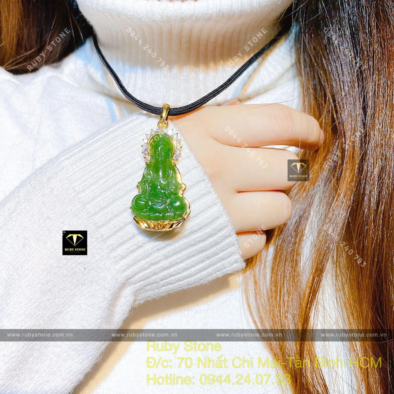 Phật Quan Thế Âm Bồ Tát Ngọc Bích Canada, Vàng 18k - Ngọc Bích Phong Thủy