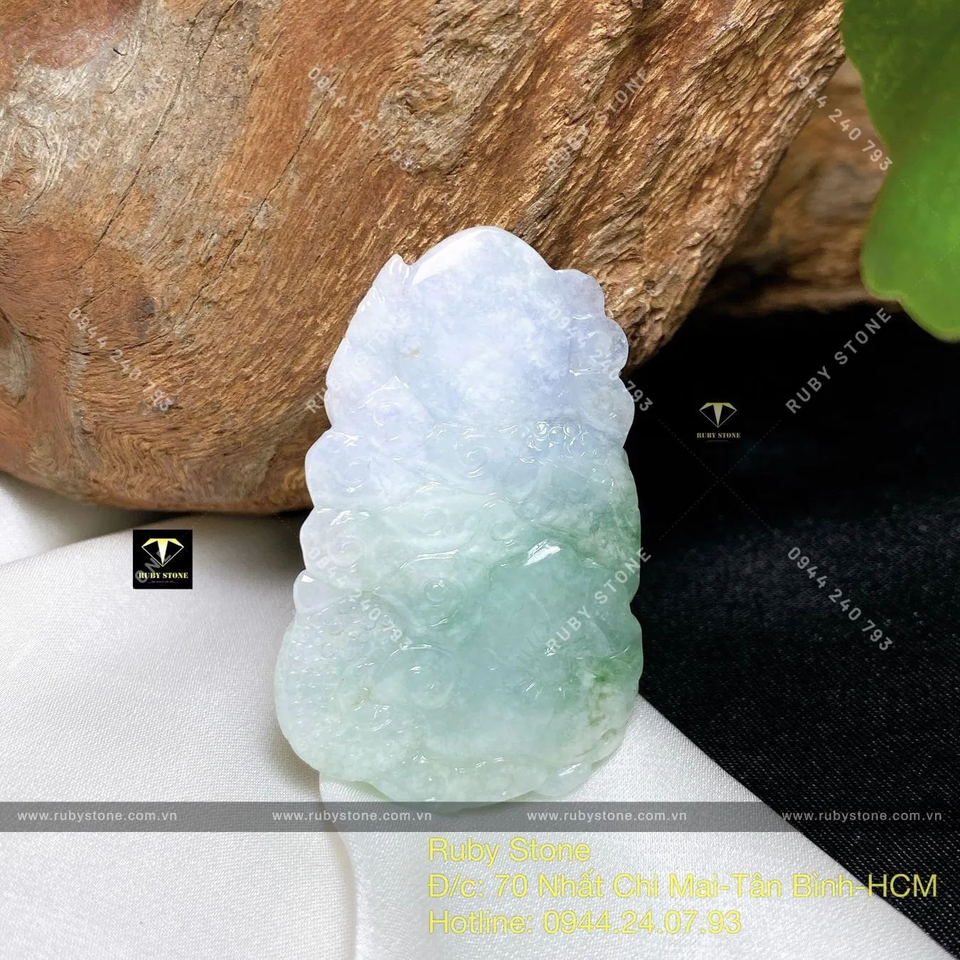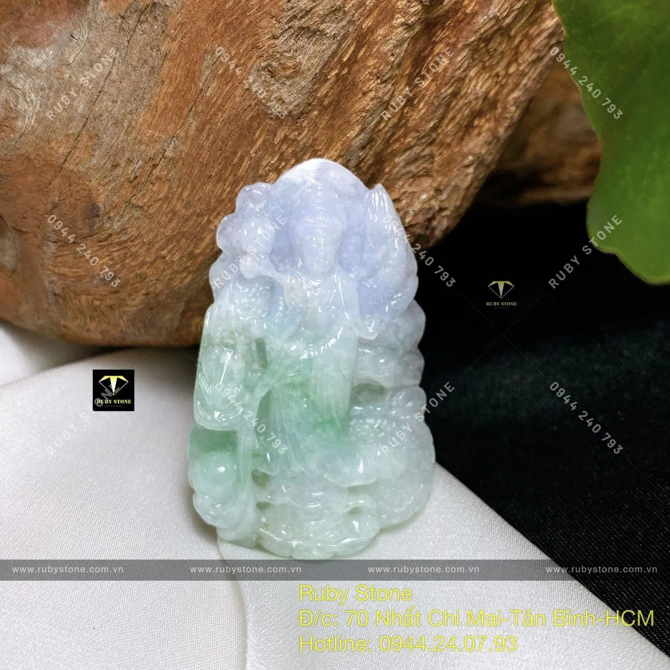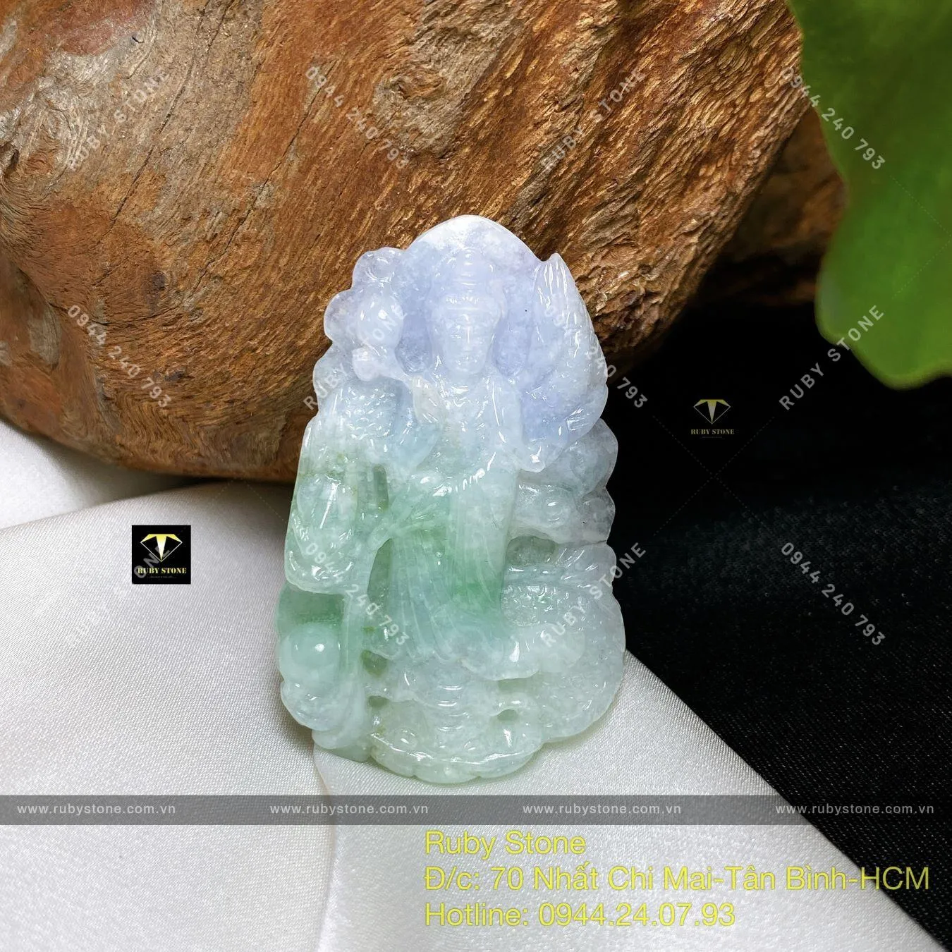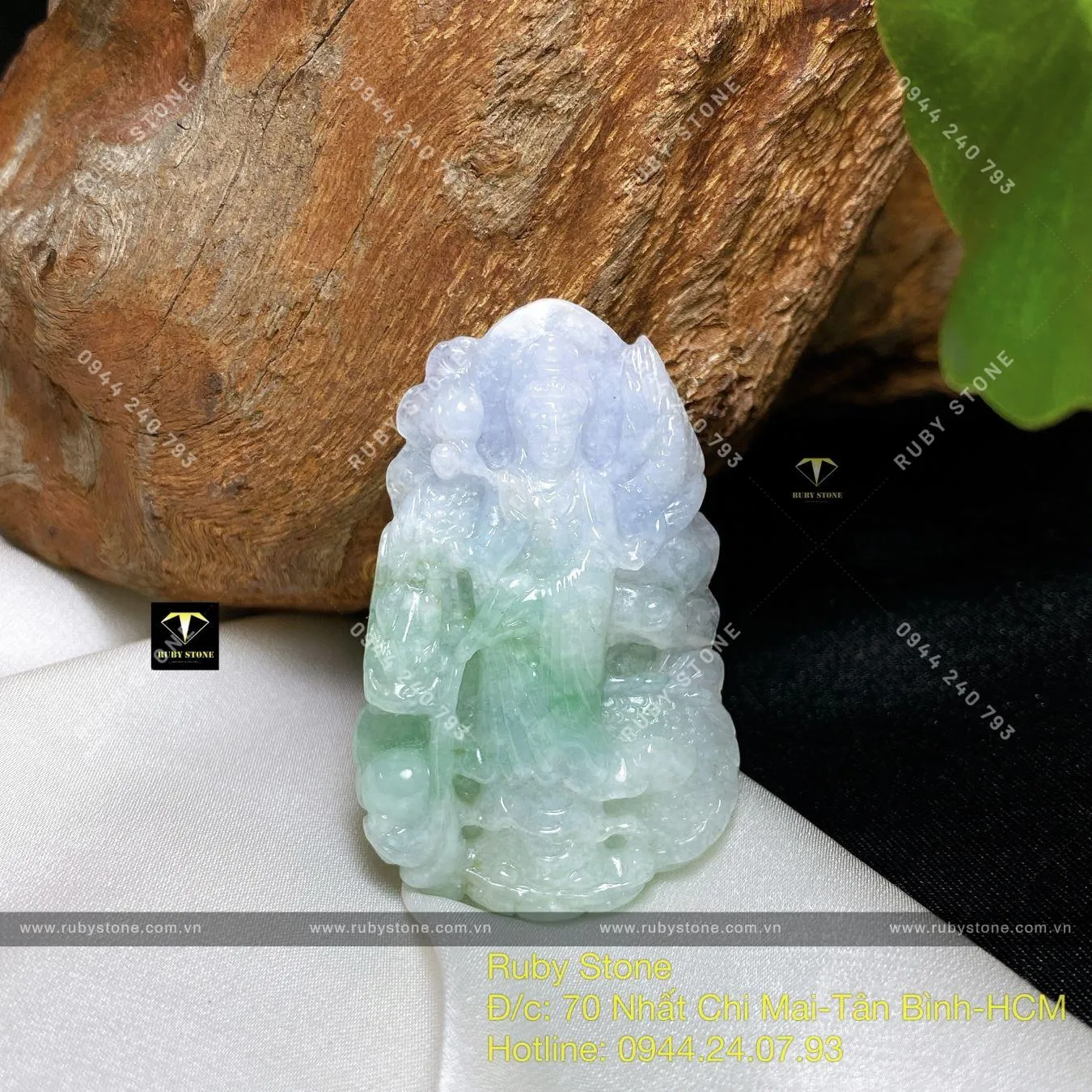 Phật Quán Thế Âm Bồ Tát Ngọc Cẩm Thạch 2 Màu, KT 48mm - Ngọc Bích Phong Thủy
