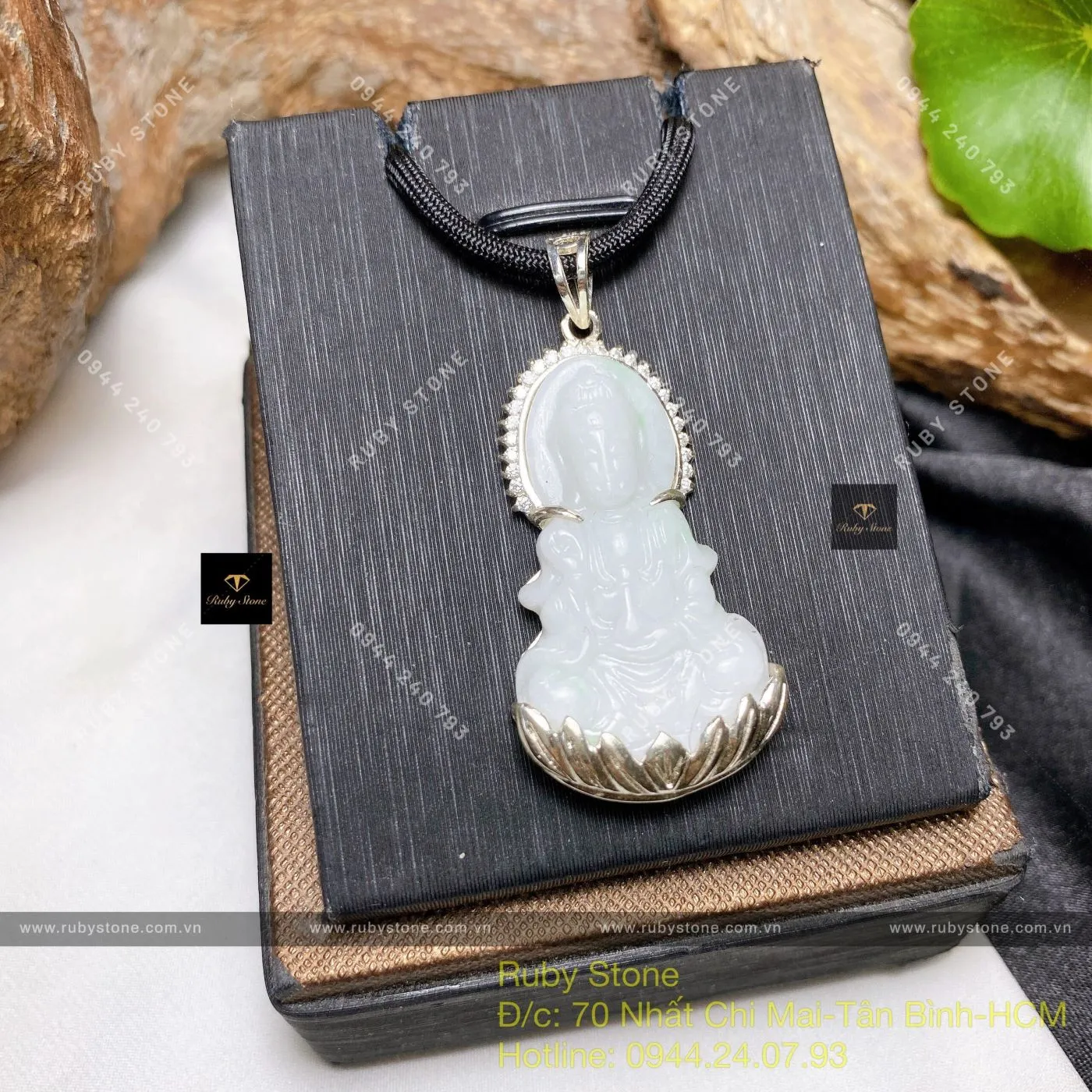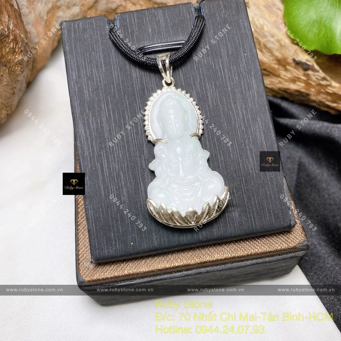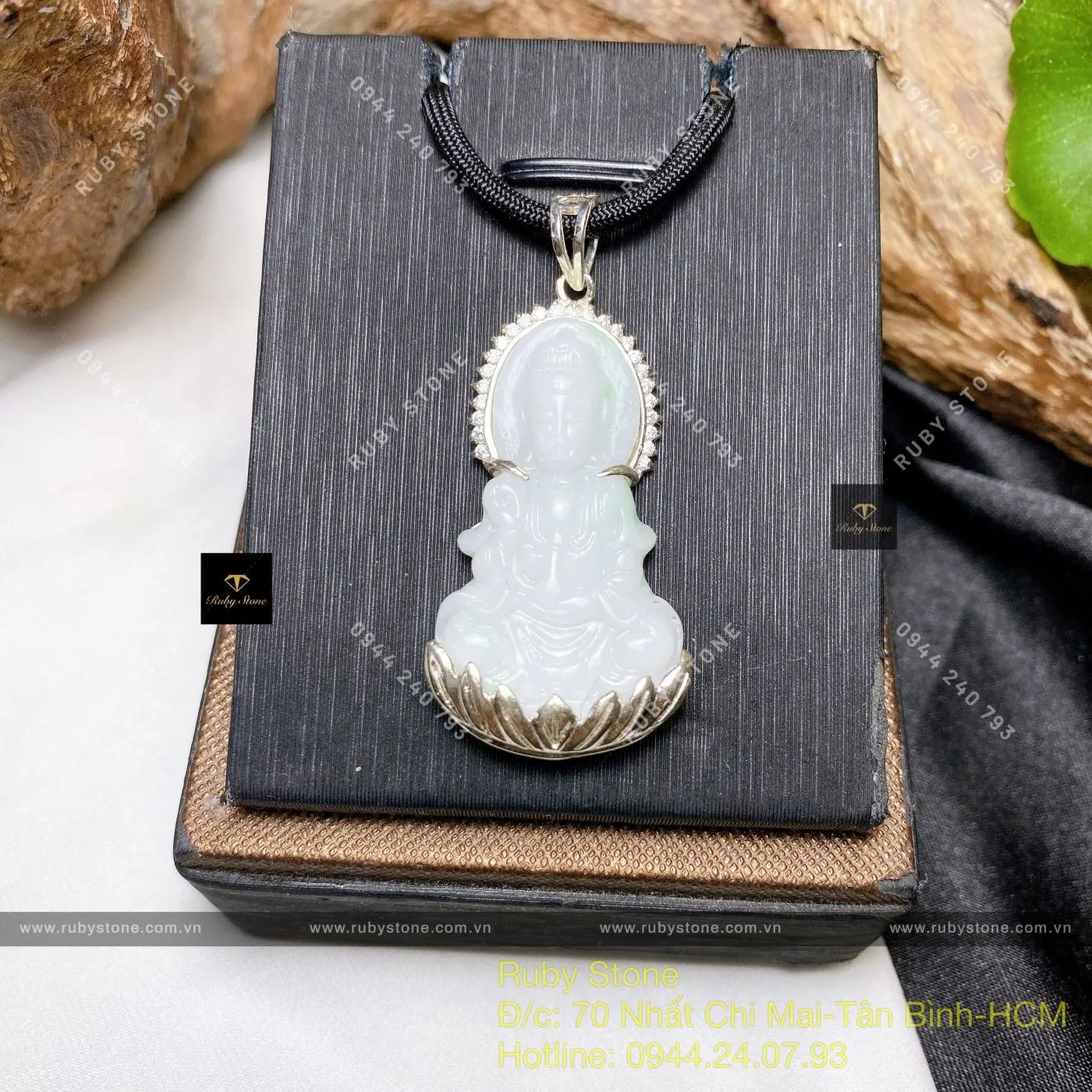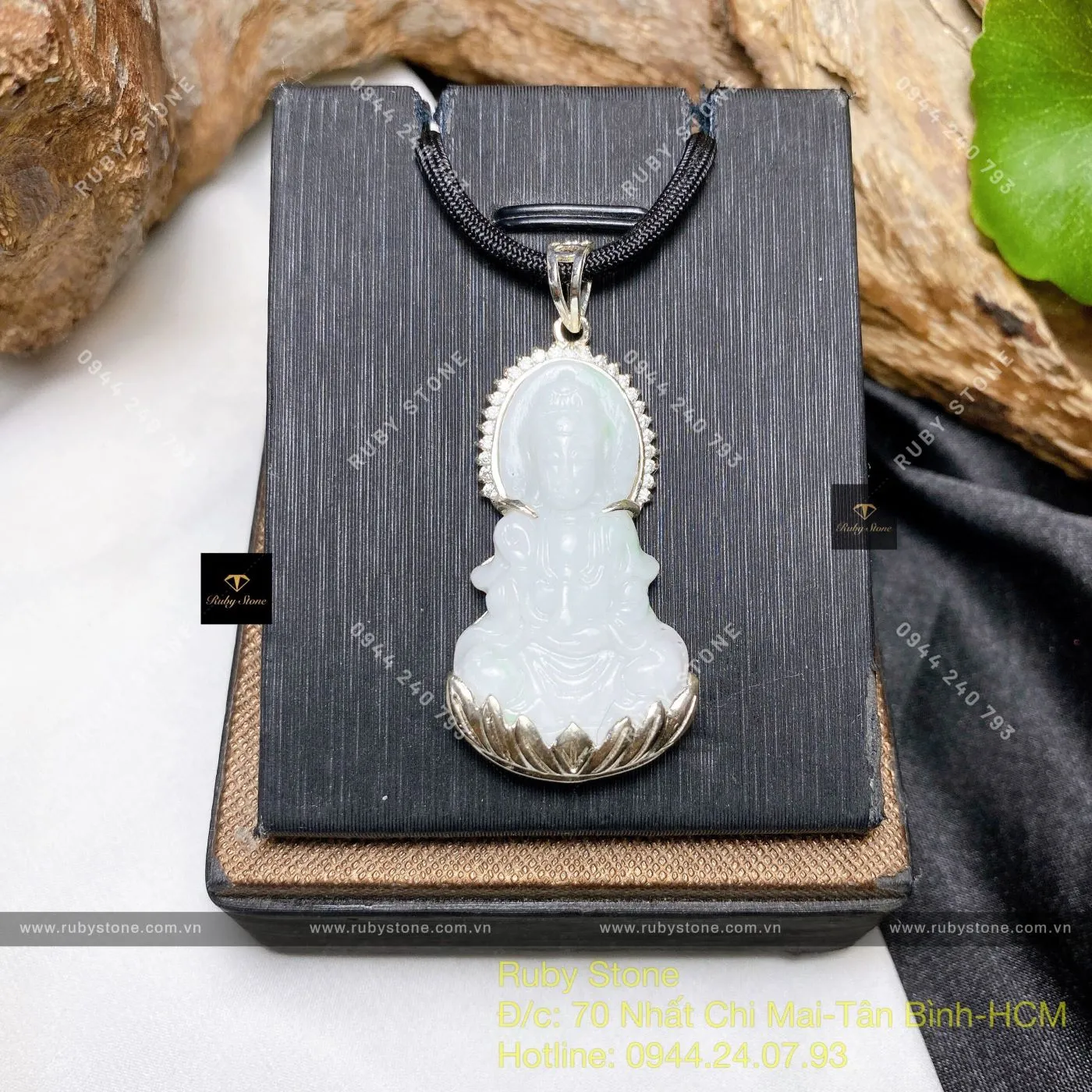 Phật Quán Thế Âm Bồ Tát Ngọc Cẩm Thạch, Bạc 925 - Ngọc Bích Phong Thủy