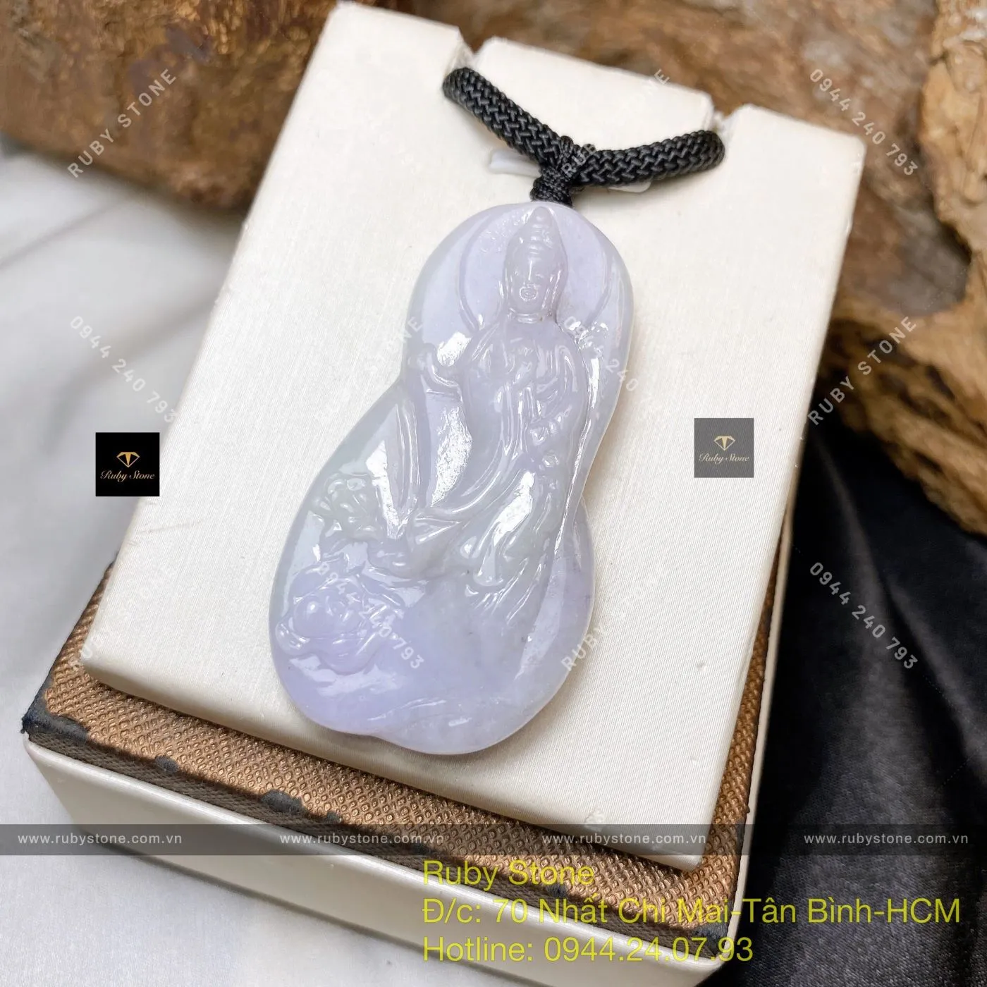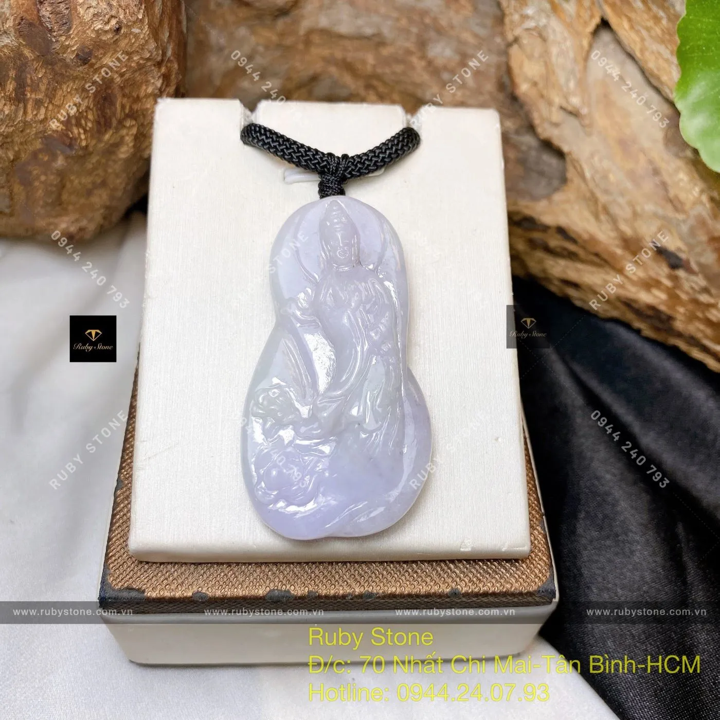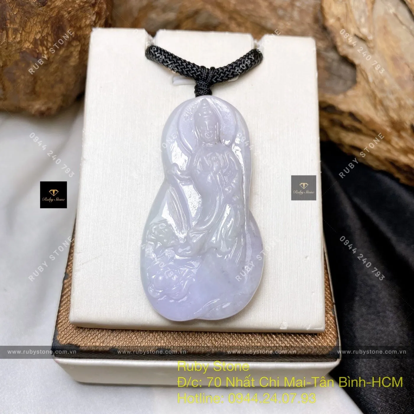 Phật Quán Thế Âm Bồ Tát Ngọc Cẩm Thạch Myanmar, KT 48mm - Ngọc Bích Phong Thủy