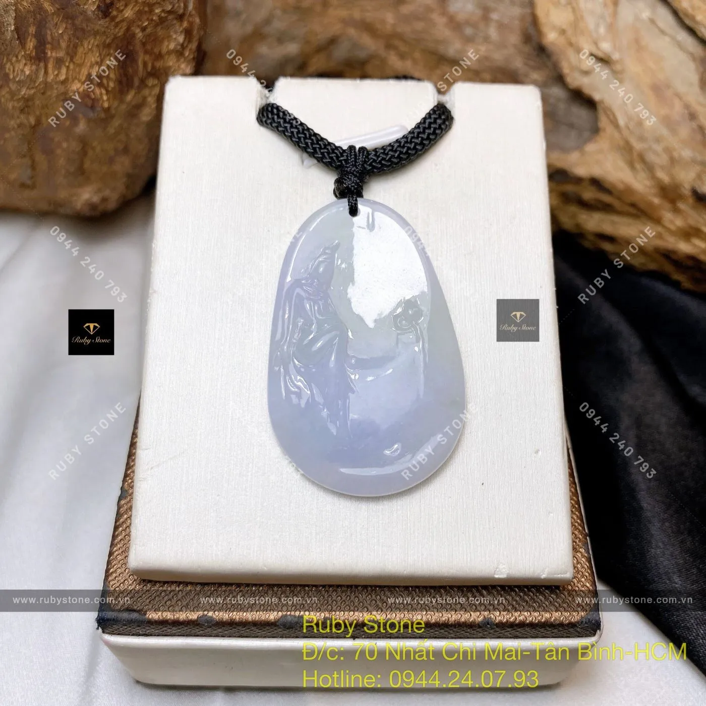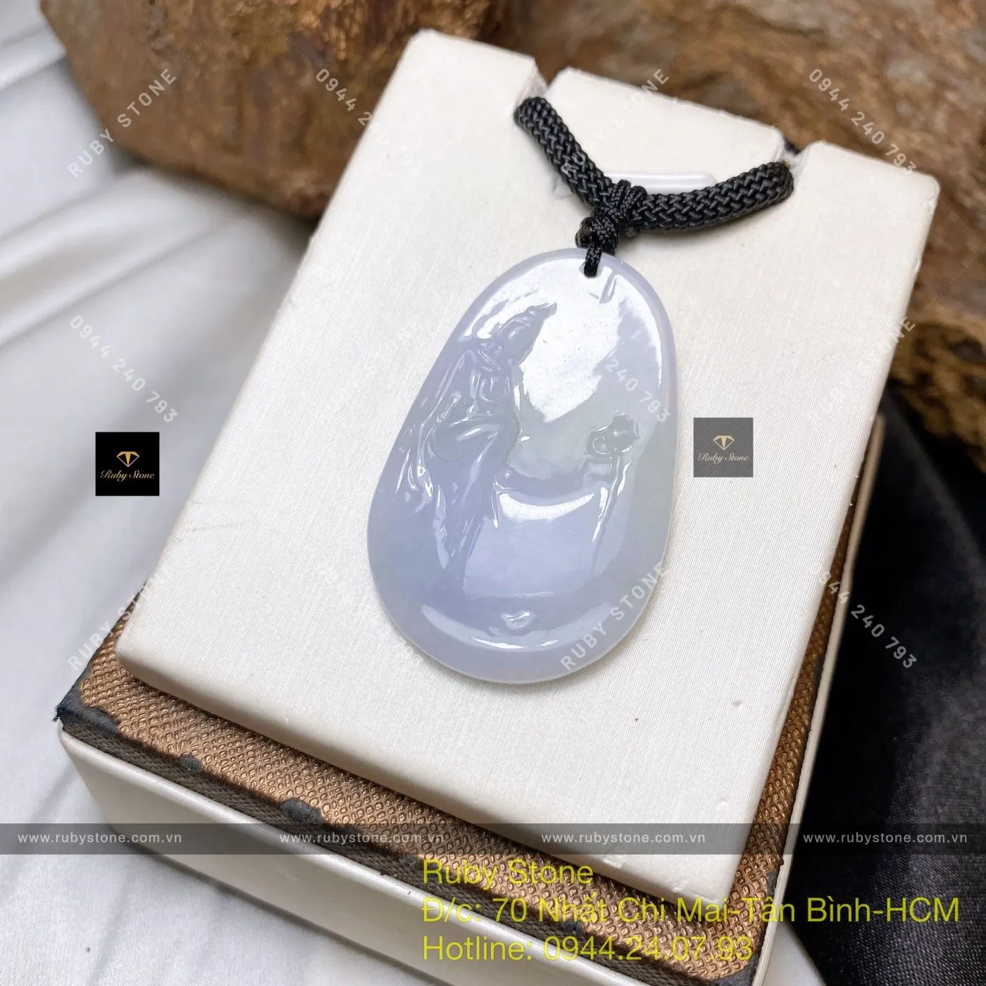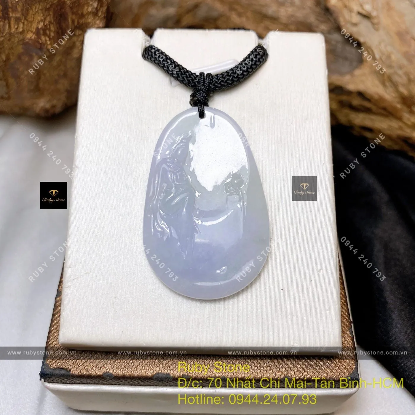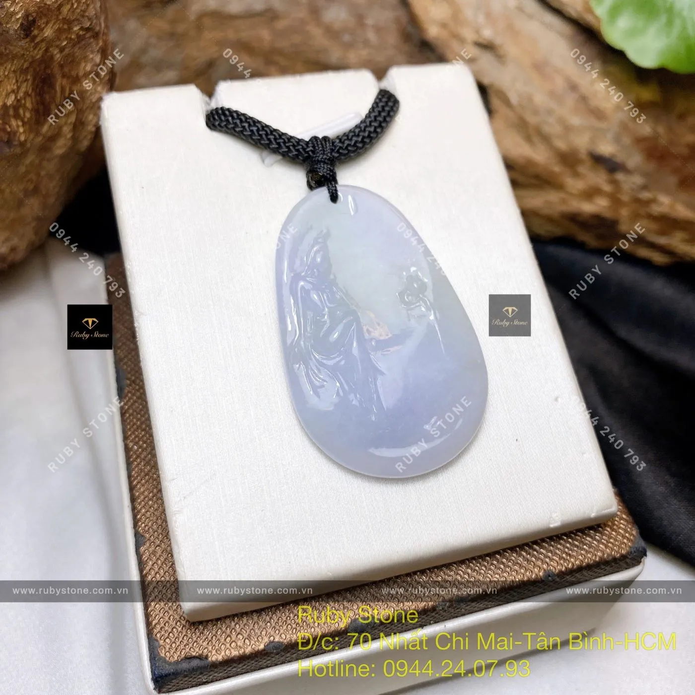 Phật Quán Thế Âm Bồ Tát ngọc Cẩm thạch Myanmar, phớt tím và xanh lơ, KT 39mm