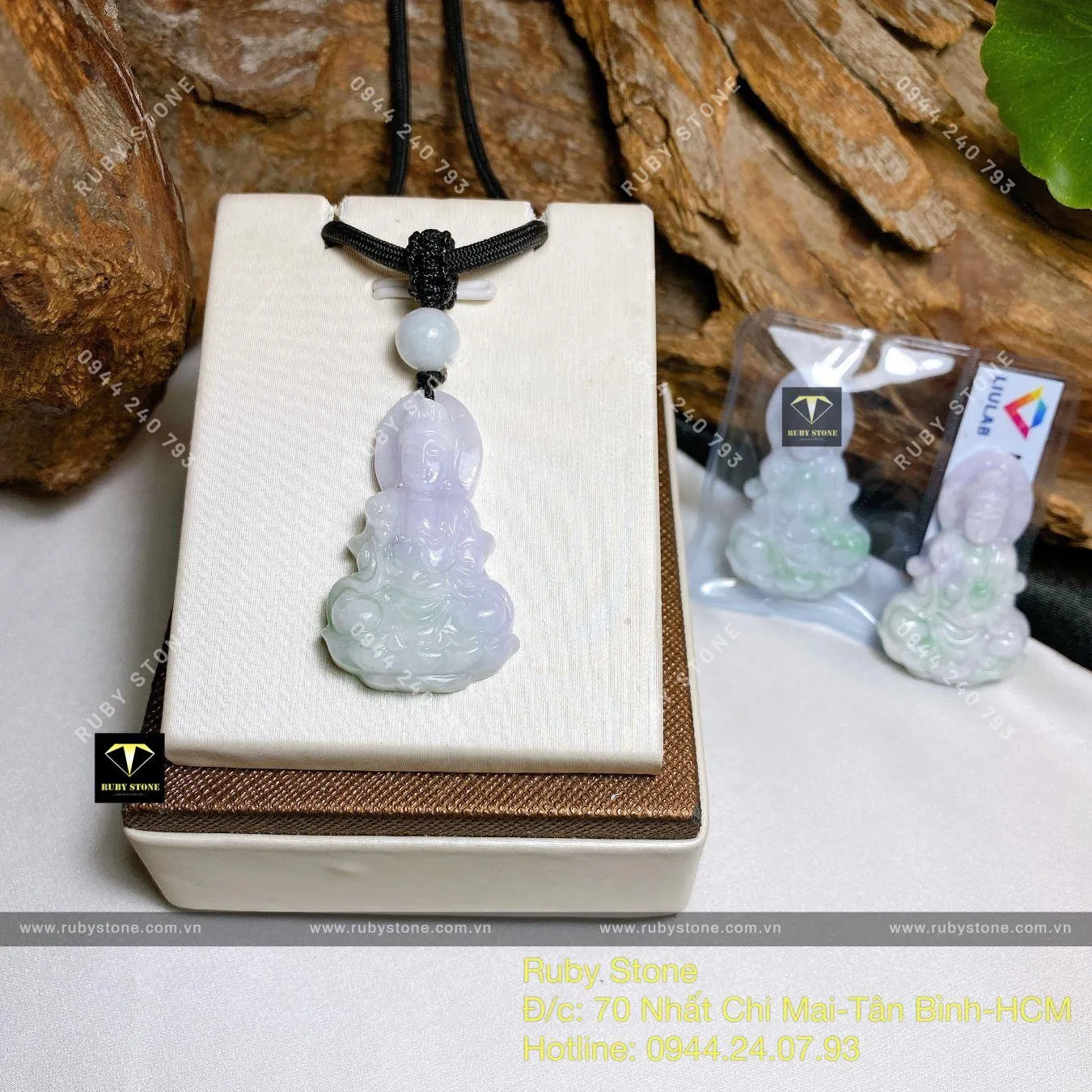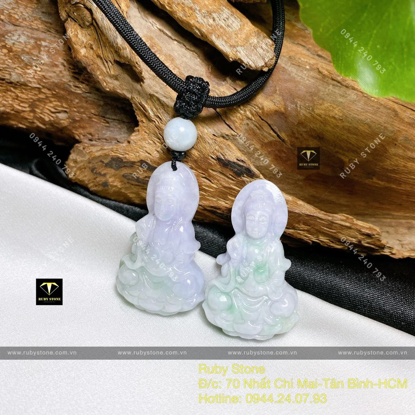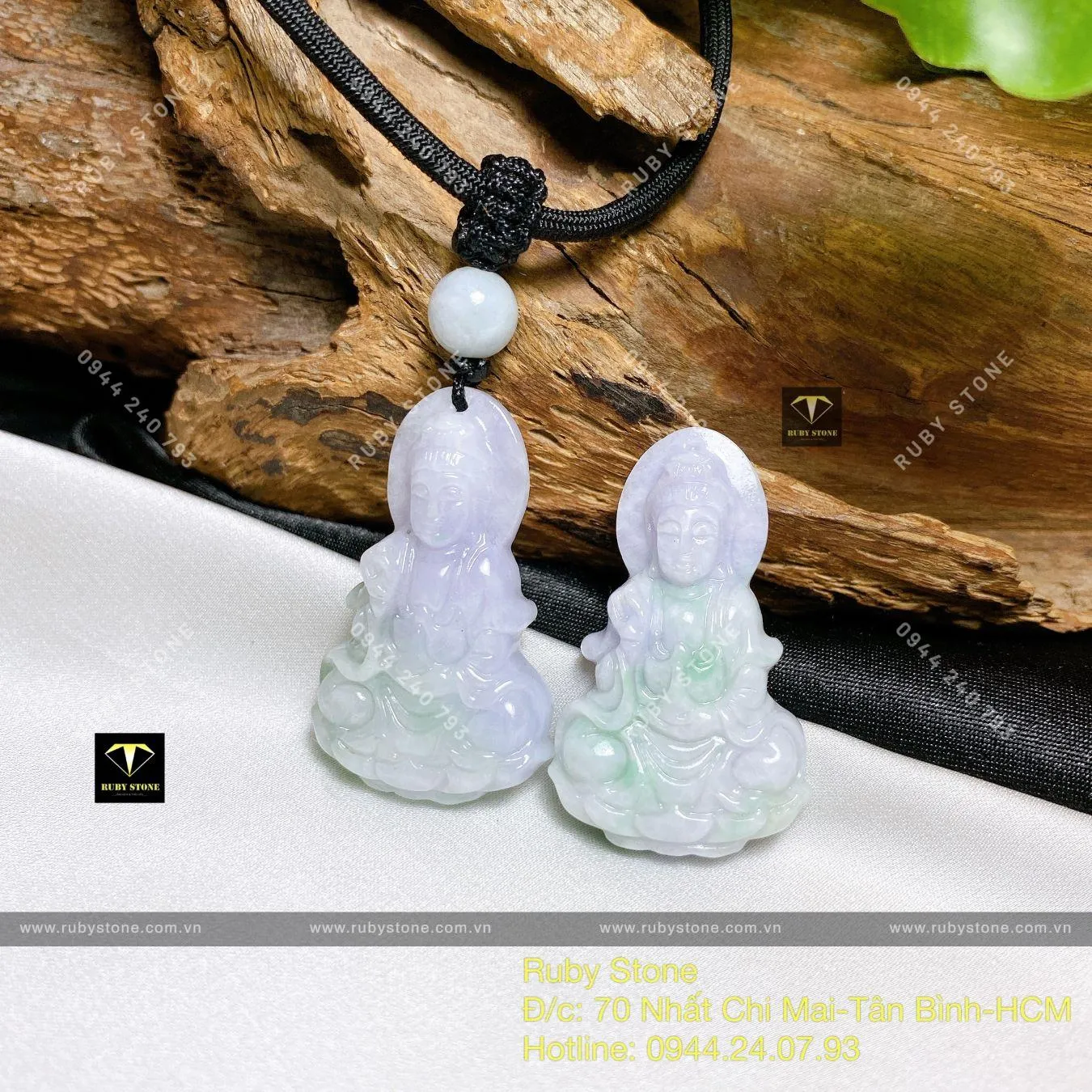 Phật Quan Thế Âm Bồ Tát Ngọc Cẩm Thạch Tử La Lan điểm Lý, KT 39mm - Ngọc Bích Phong Thủy