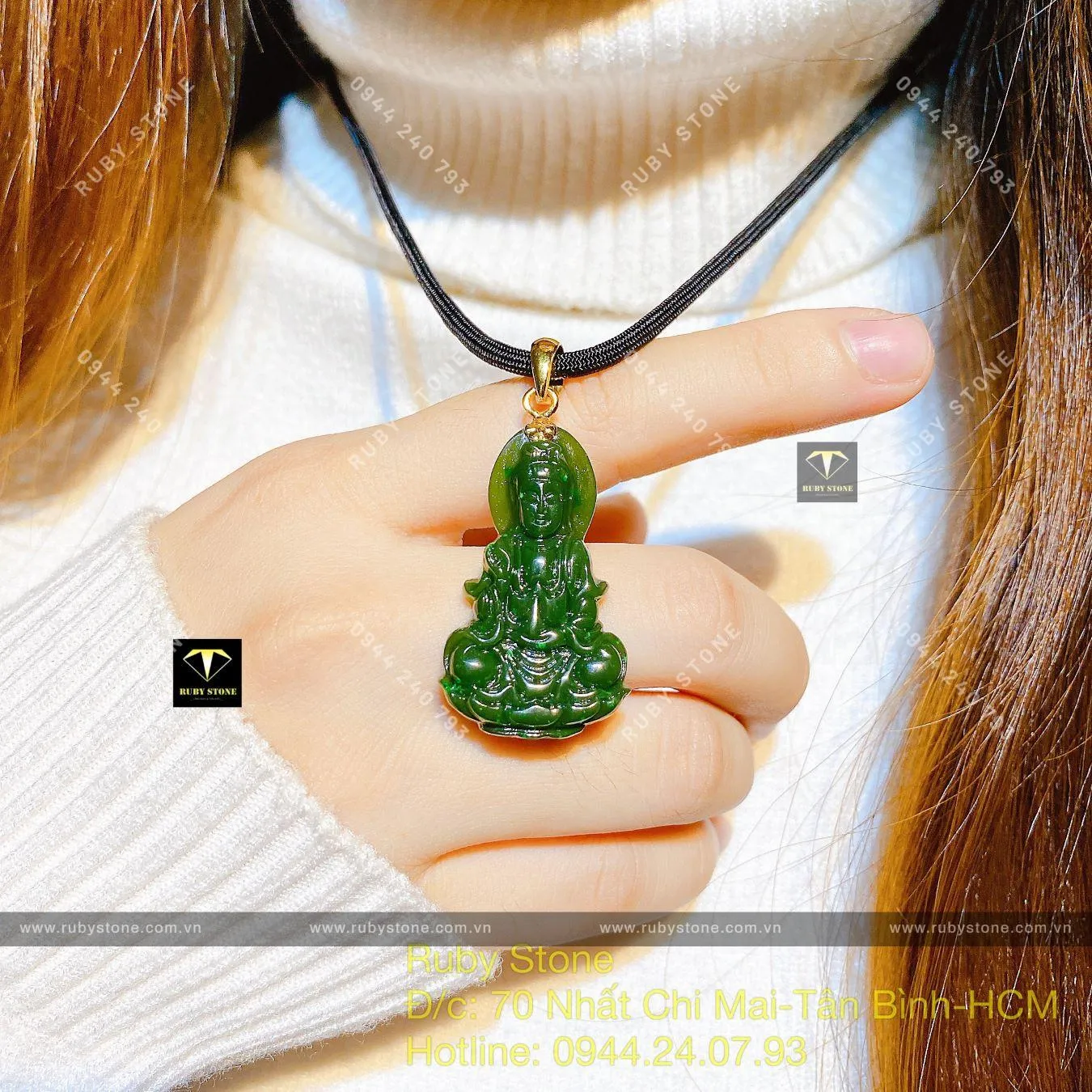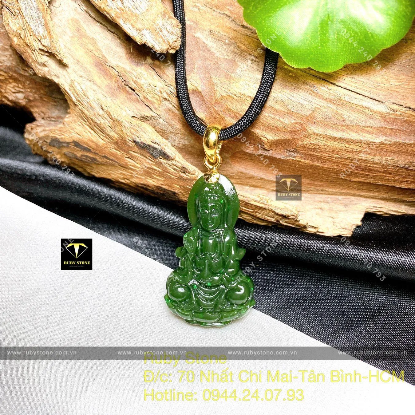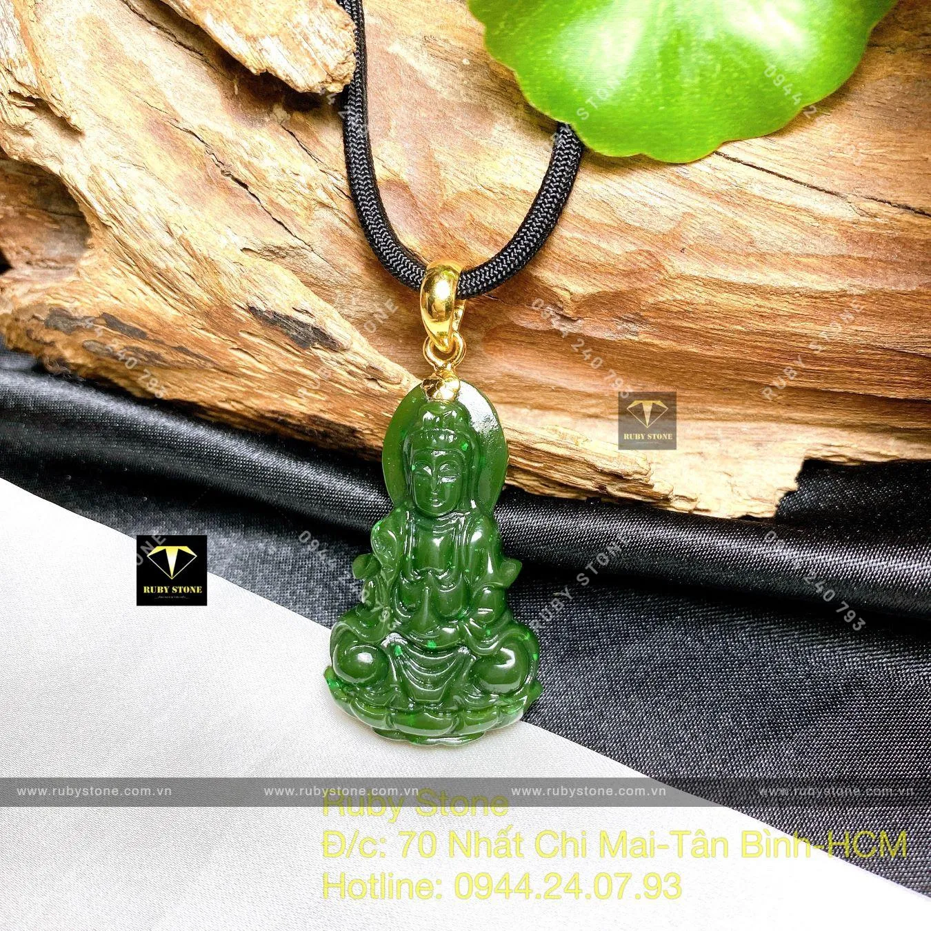 Phật Quan Thế Âm Ngọc Bích Canada Xanh Lý đậm, Móc Vàng Hoa Mai 18k - Ngọc Bích Phong Thủy