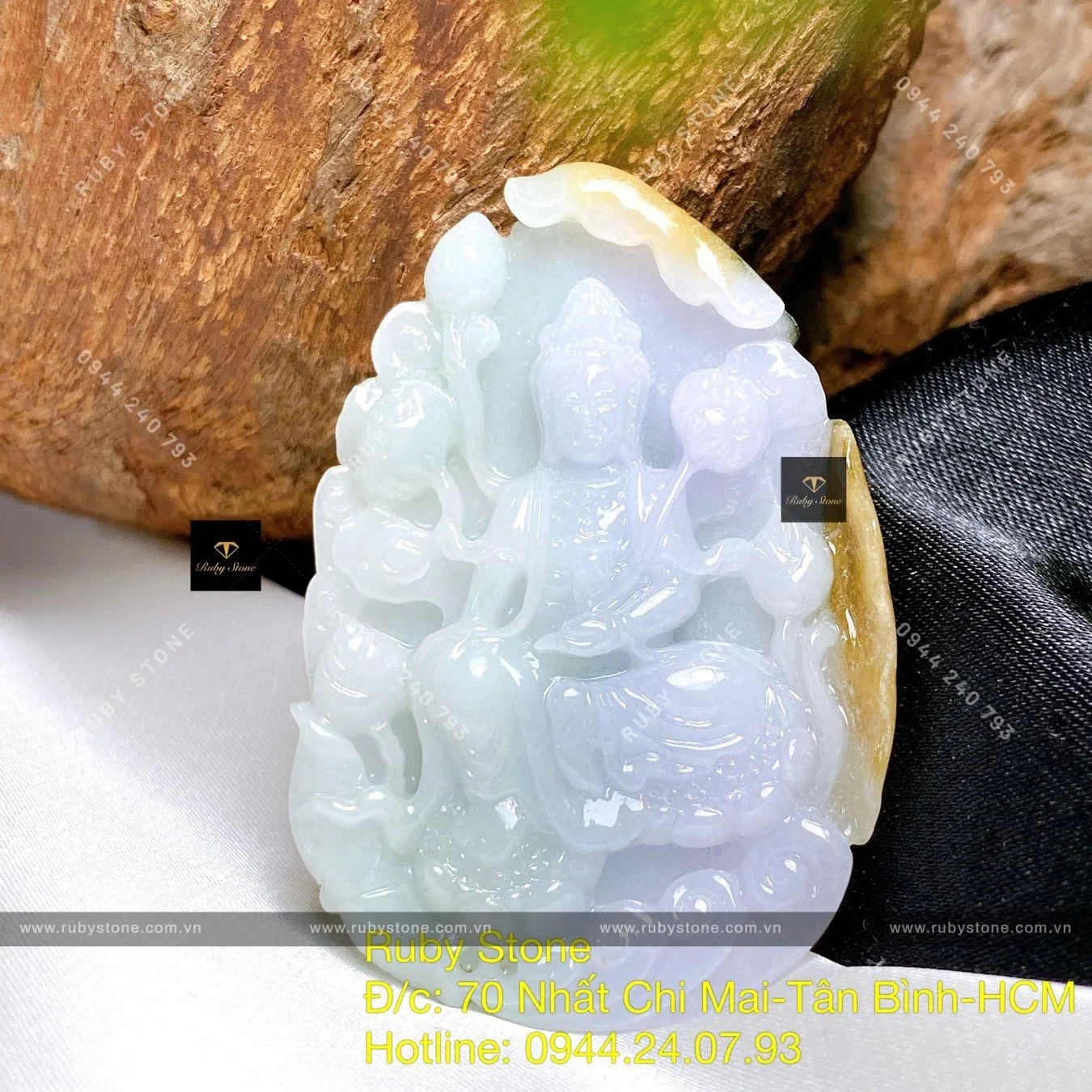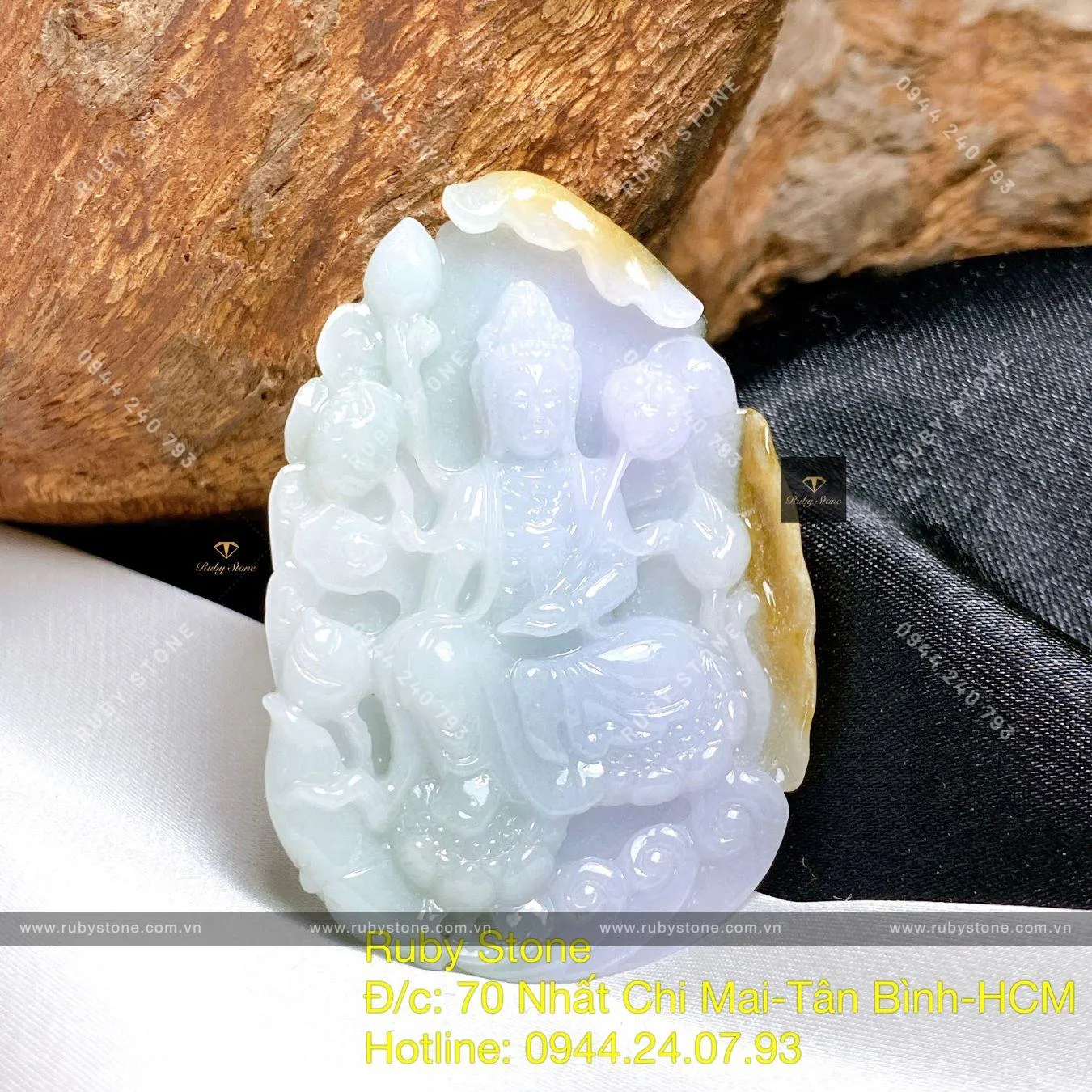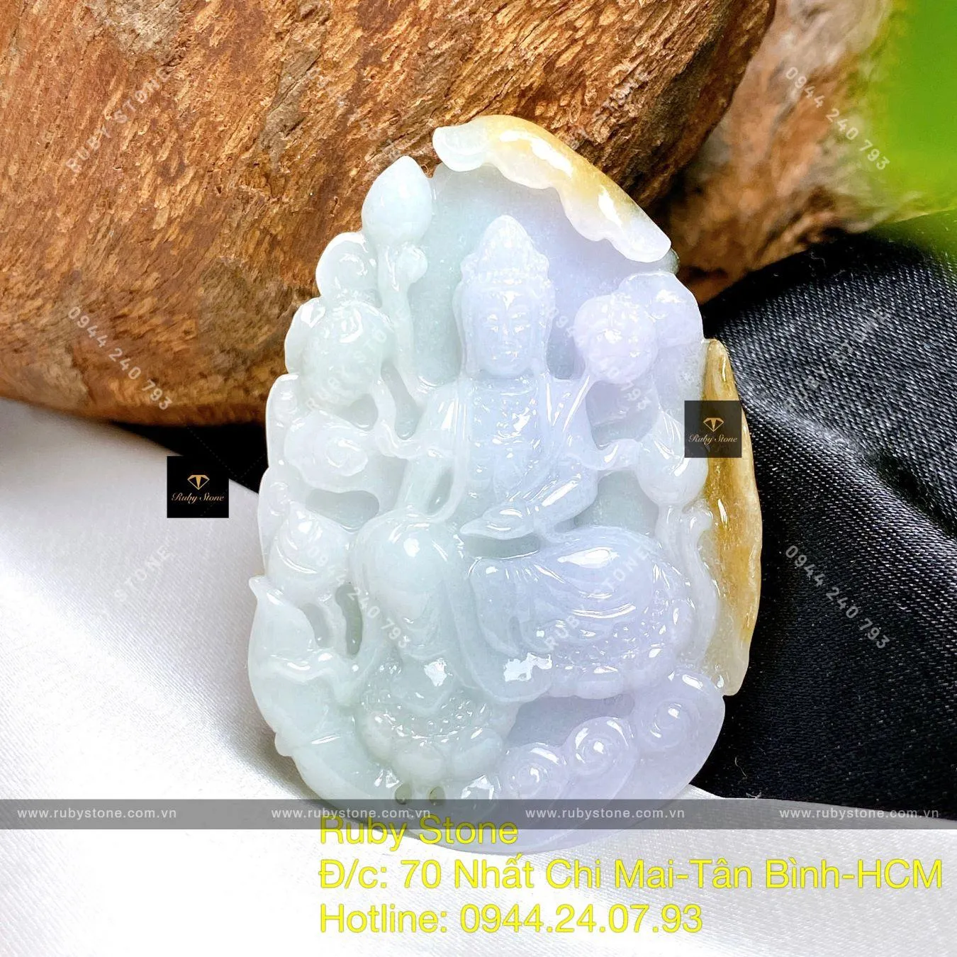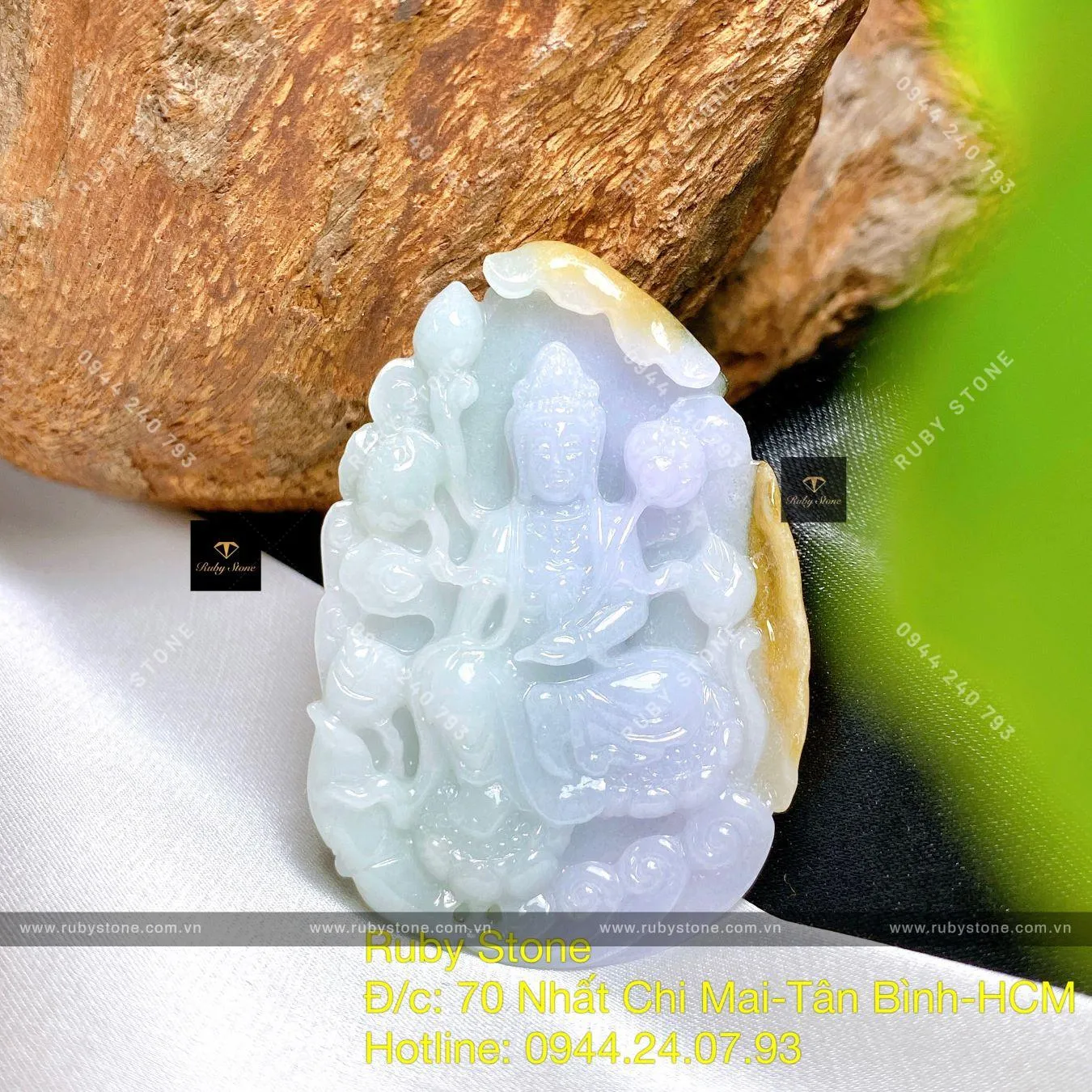 Phật Quán Thế Âm Tự Tại Ngọc Cẩm Thạch Ba Màu, KT 48mm - Ngọc Bích Phong Thủy
