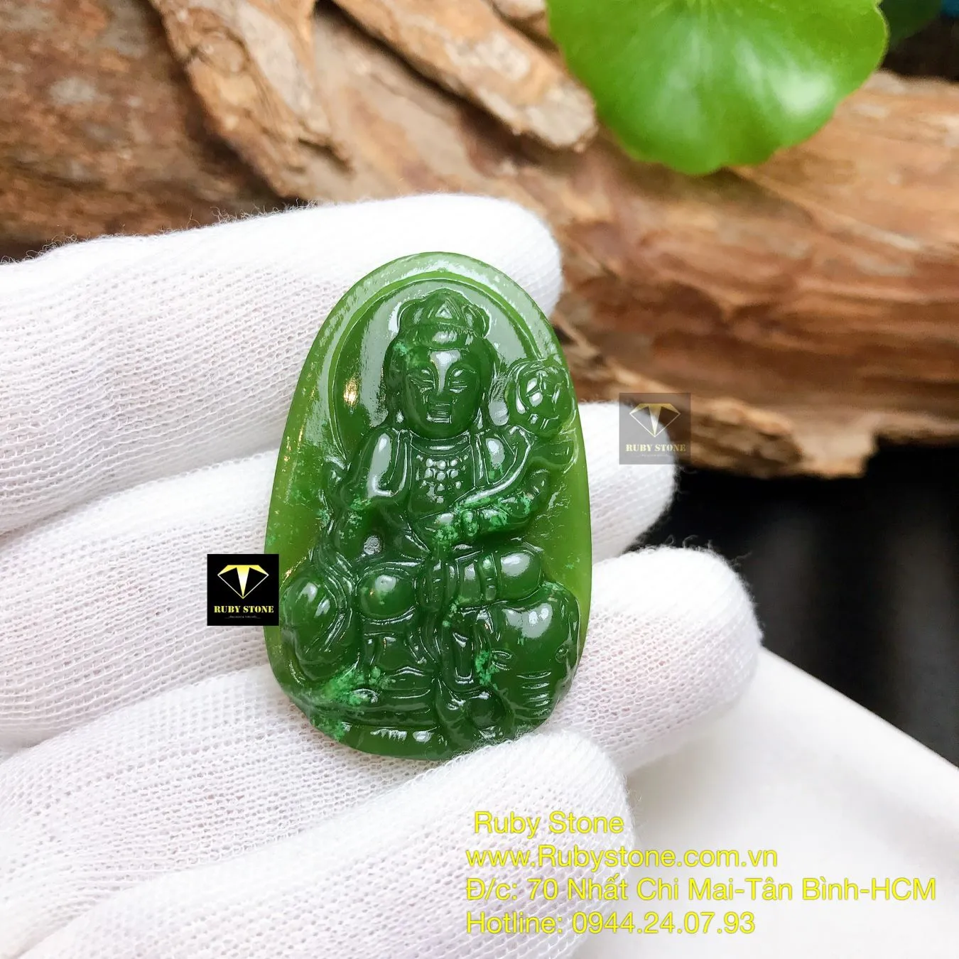 Phổ Hiền Bồ Tát - Phật Bản Mệnh Ngọc Bích Tuổi Thìn- Tỵ, Kích Thước 42mm - Ngọc Bích Phong Thủy