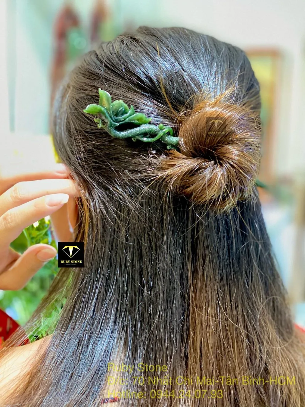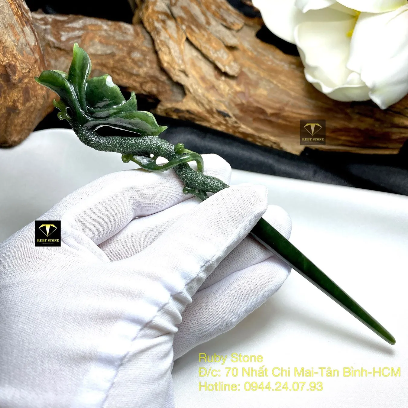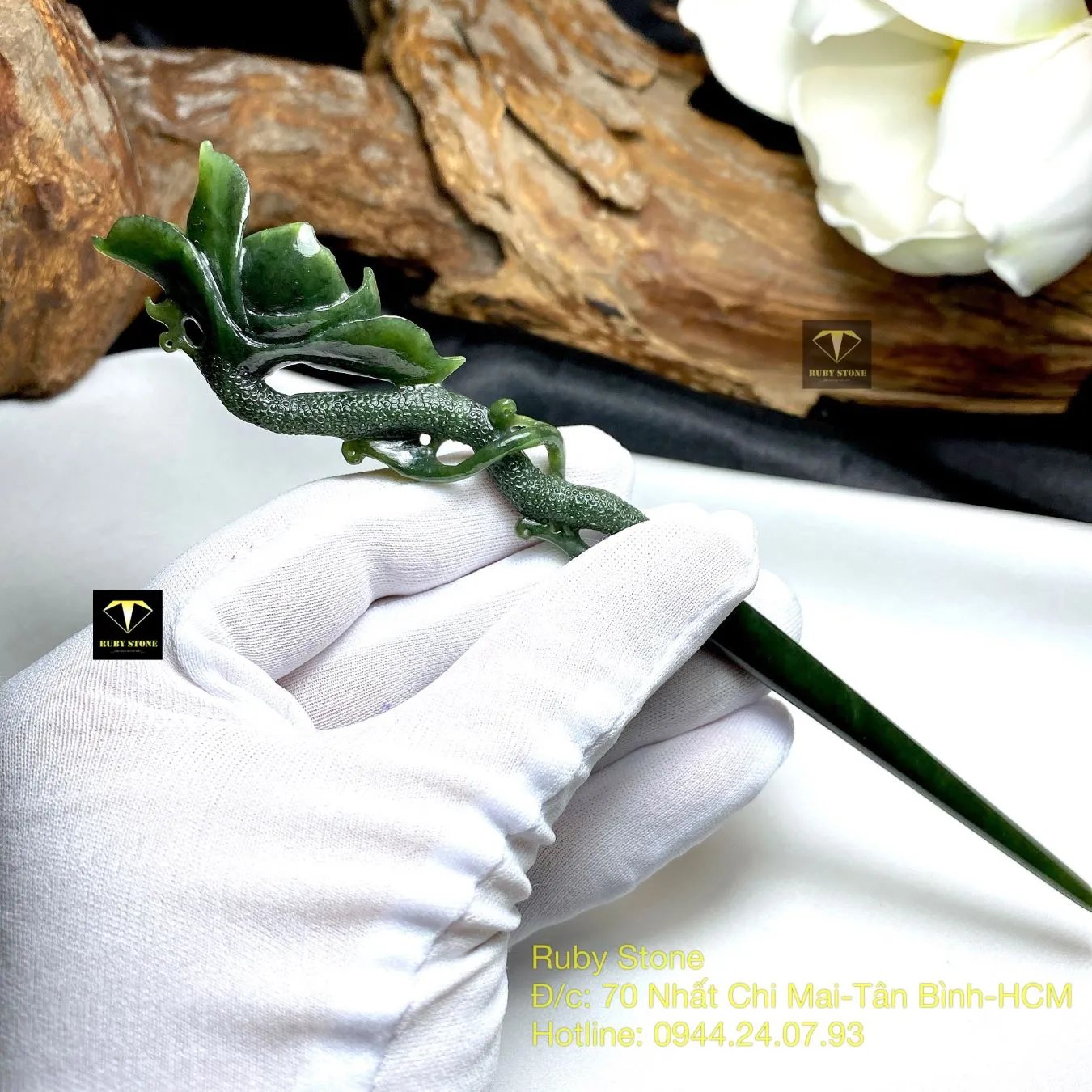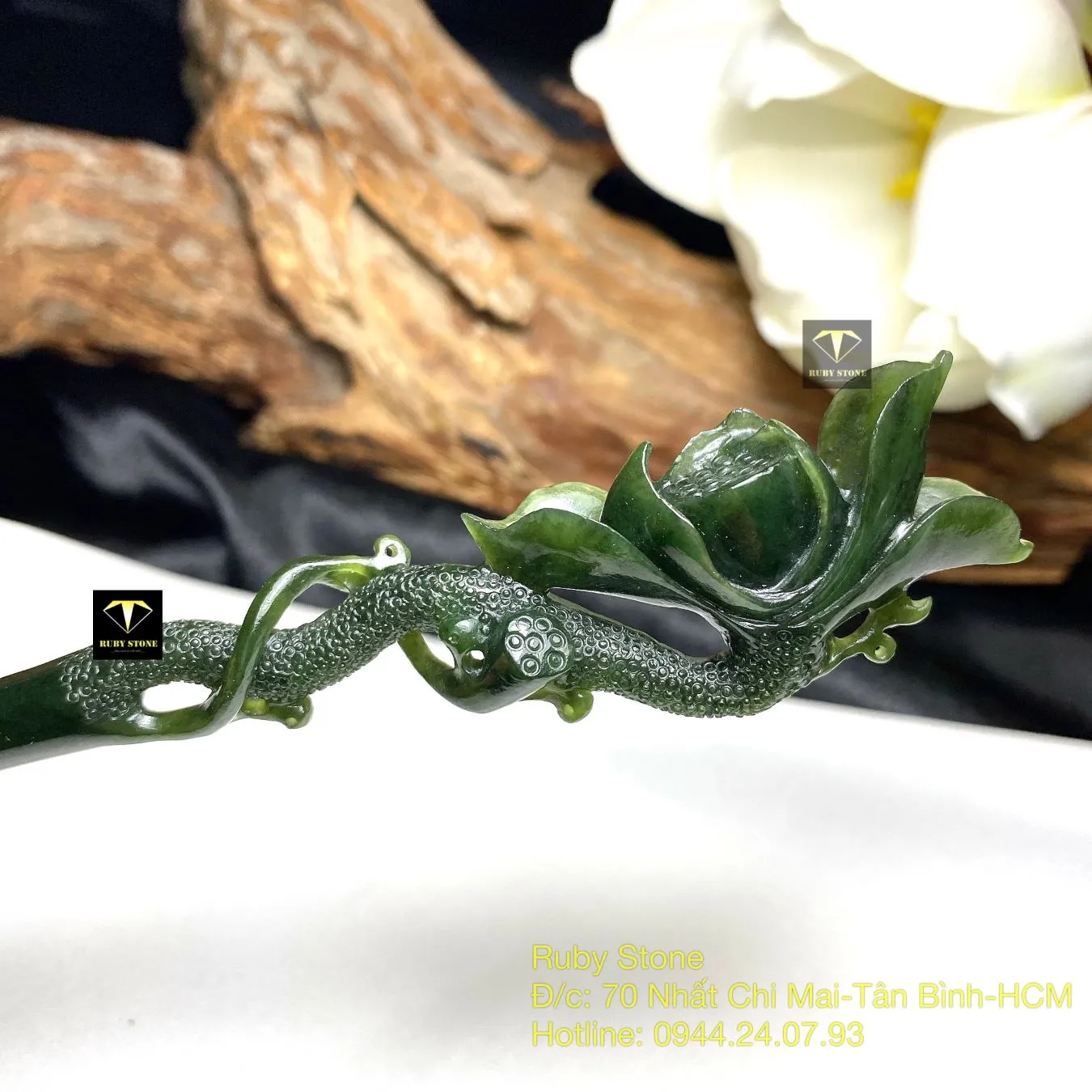 Trâm Cài Tóc Liên Hoa Ngọc Bích Chạm Tay Tinh Xảo - Ngọc Bích Phong Thủy