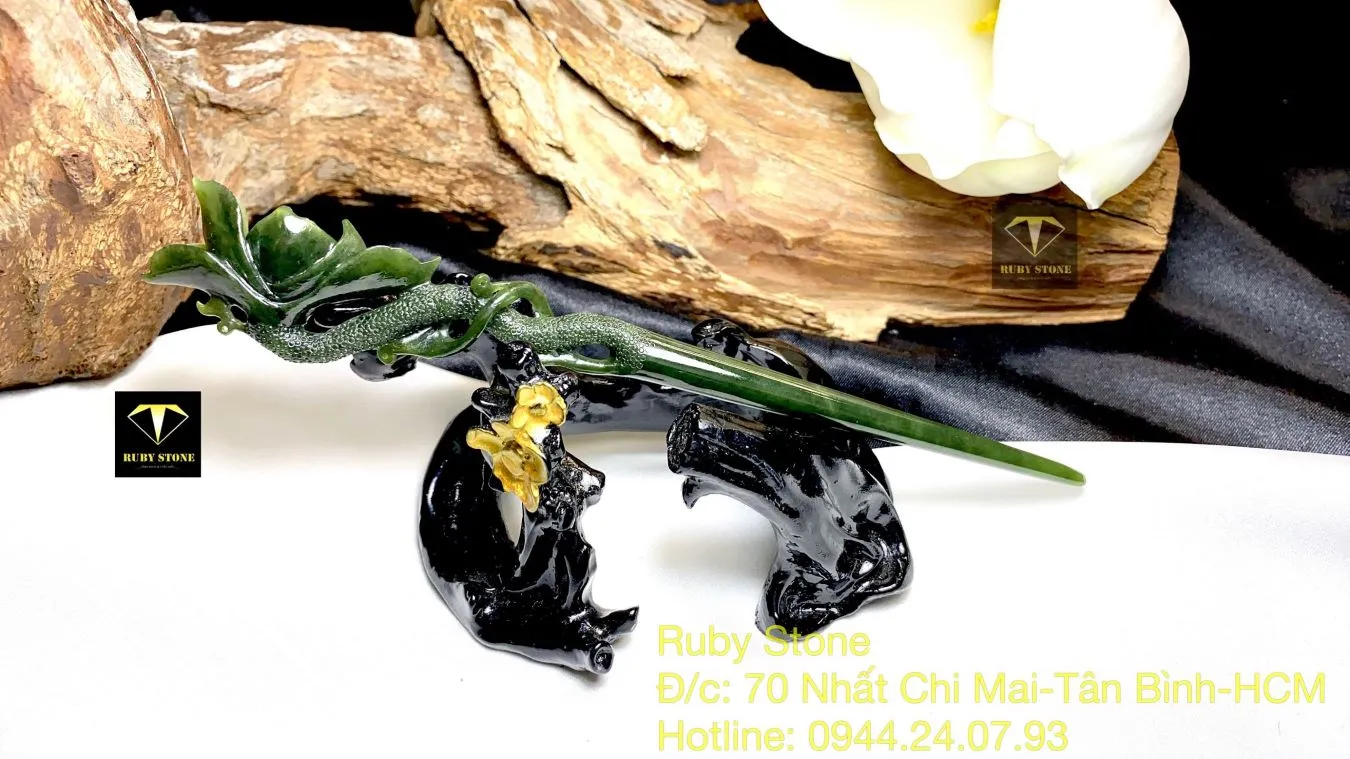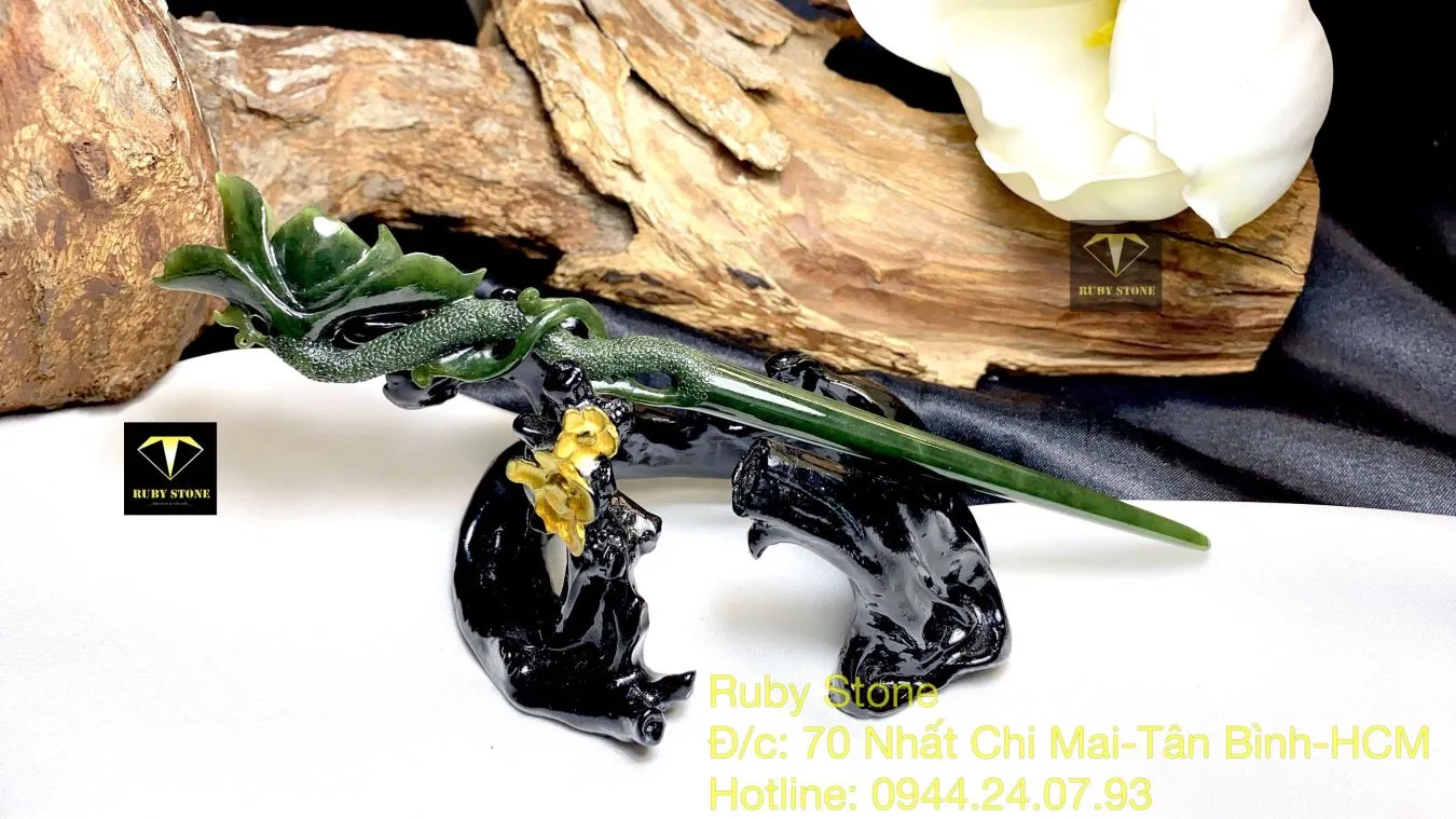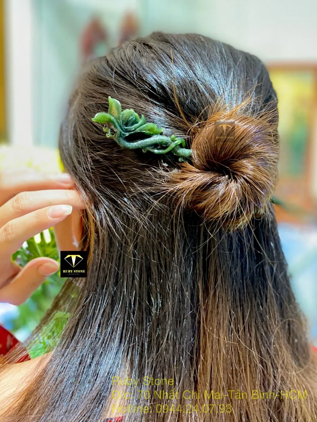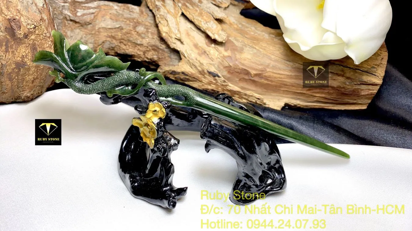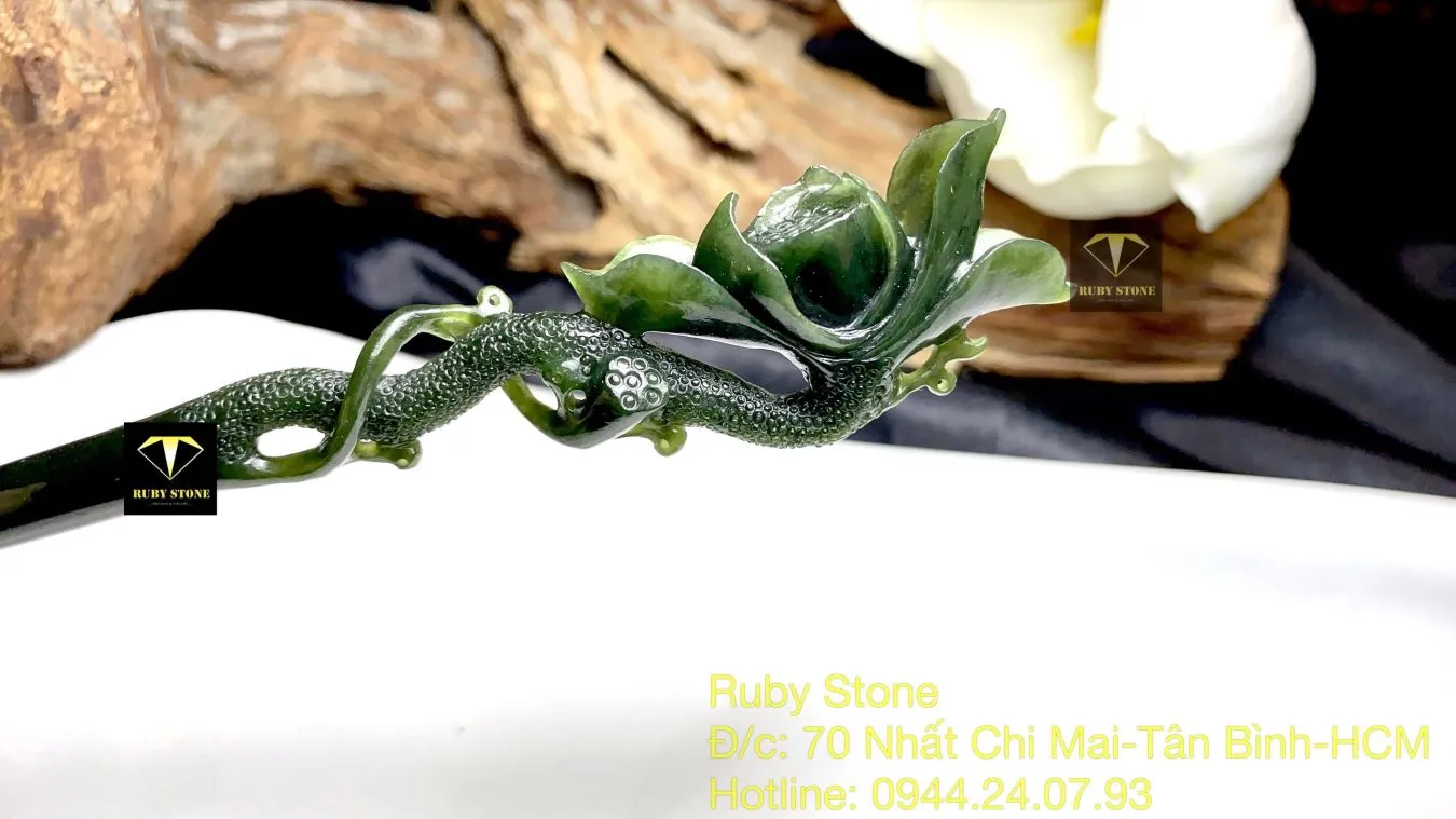Trâm Cài Tóc Liên Hoa Ngọc Bích Chạm Tay Tinh Xảo - Ngọc Bích Phong Thủy