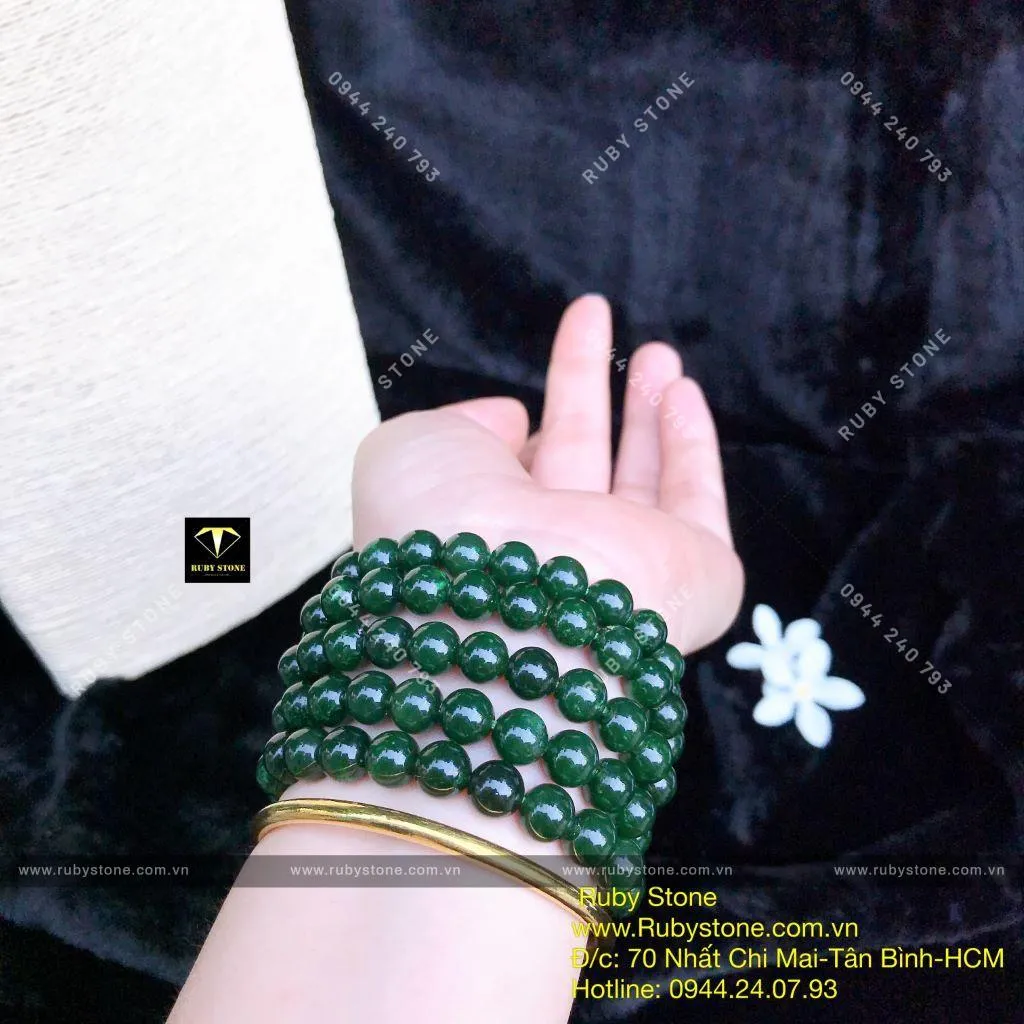 TRÀNG HẠT 108 HẠT NGỌC BÍCH CANADA MÀU XANH ĐẬM