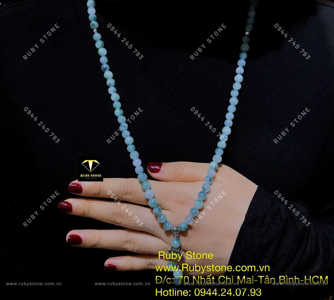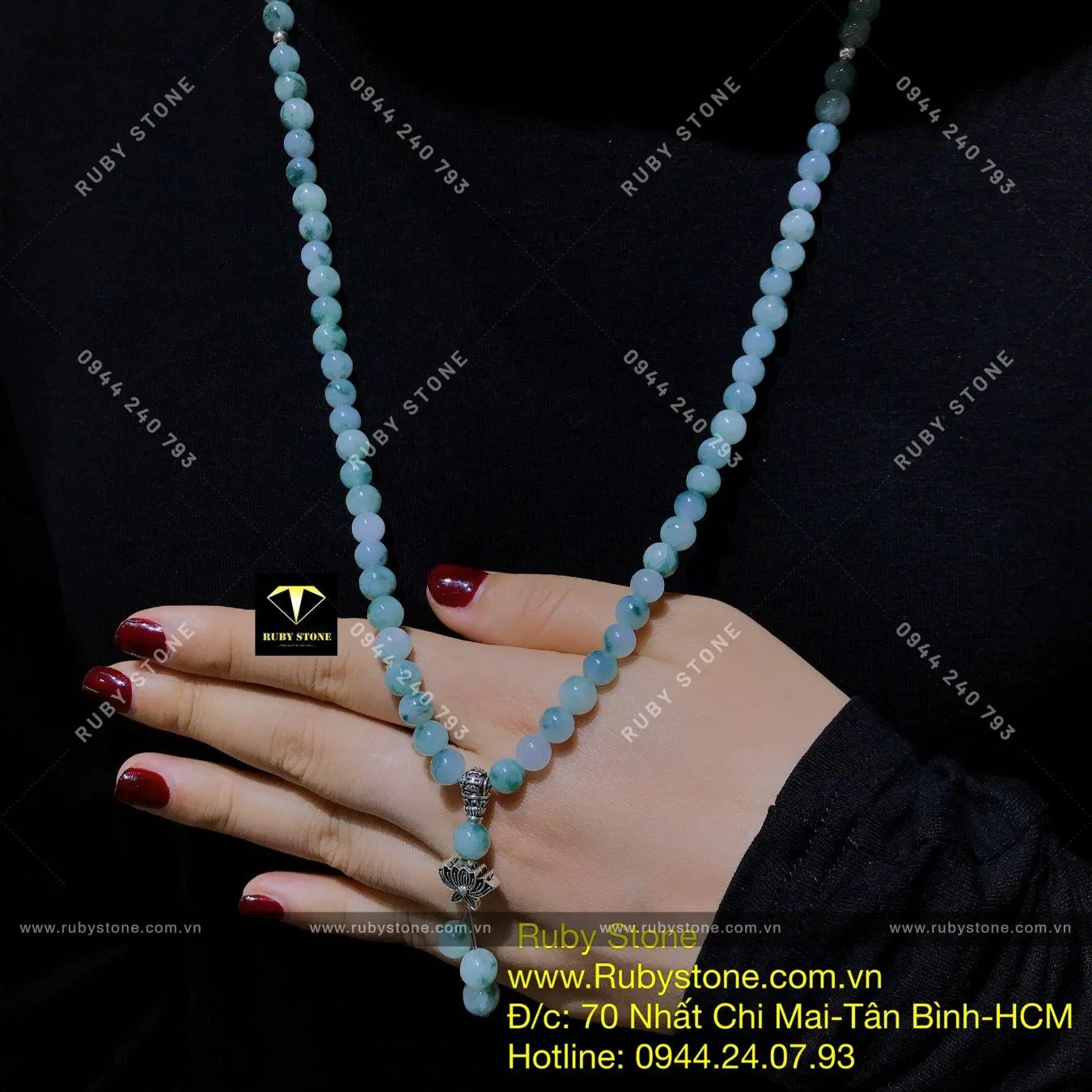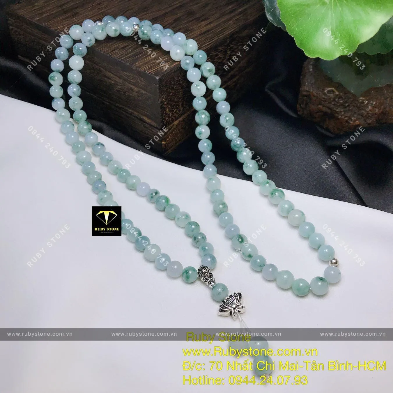 Tràng Hạt Phật Giáo 108 Hạt Ngọc Cẩm Thạch Phiêu Lam Hoa (jadeite A) - Ngọc Bích Phong Thủy