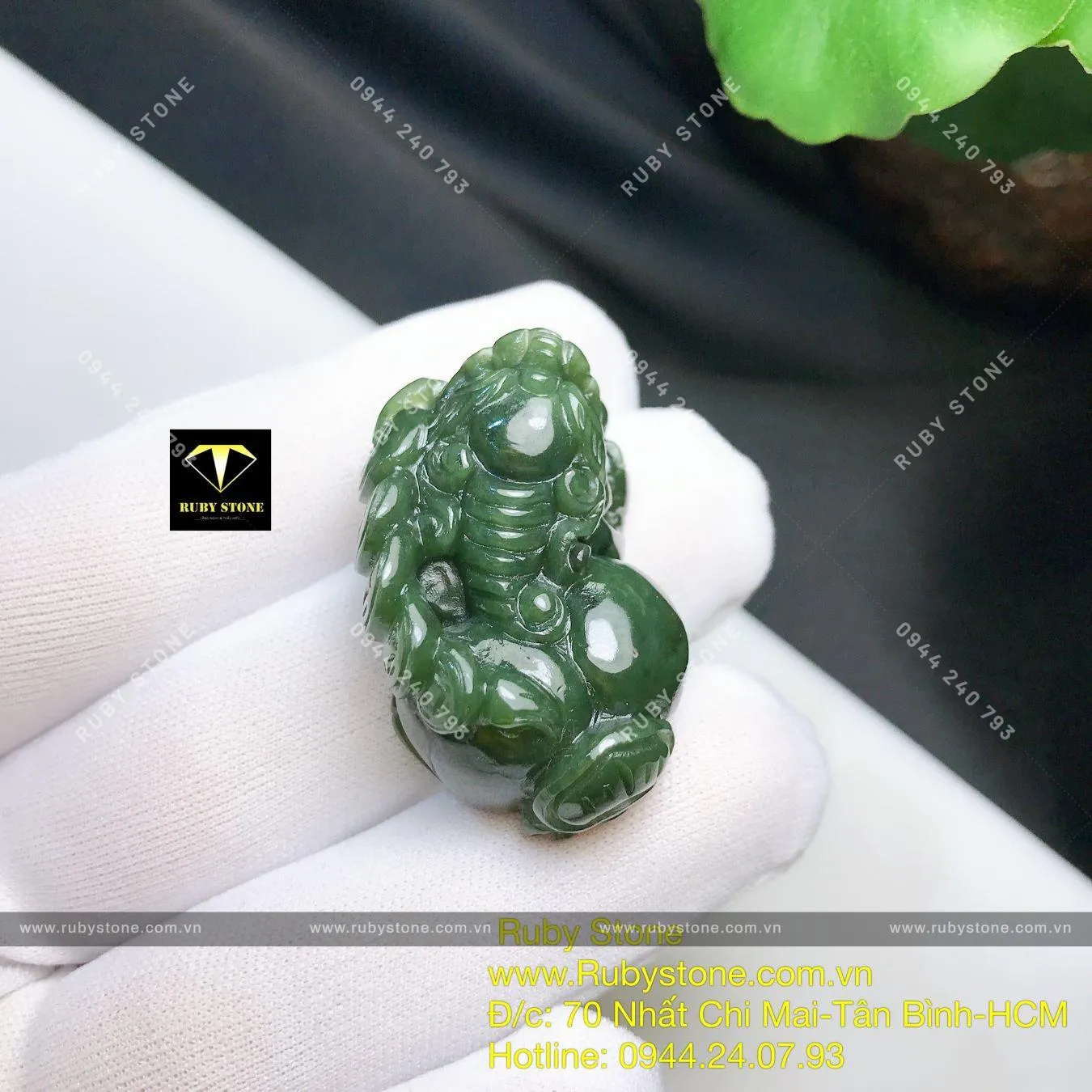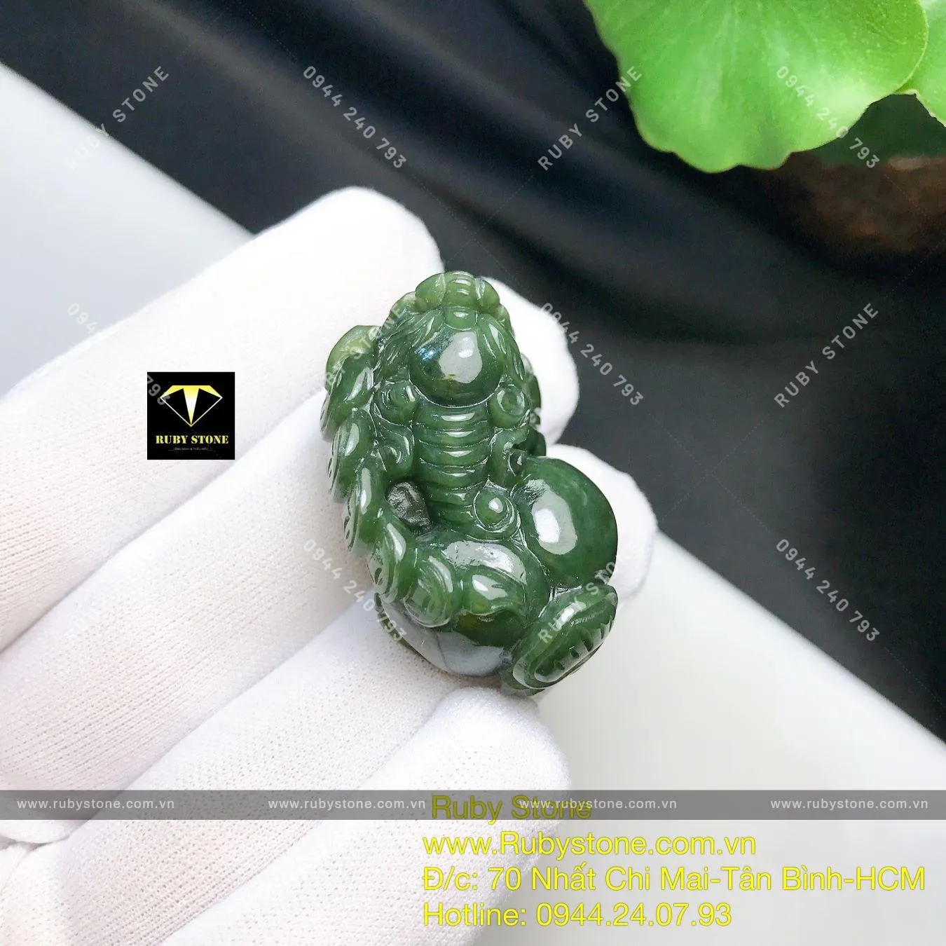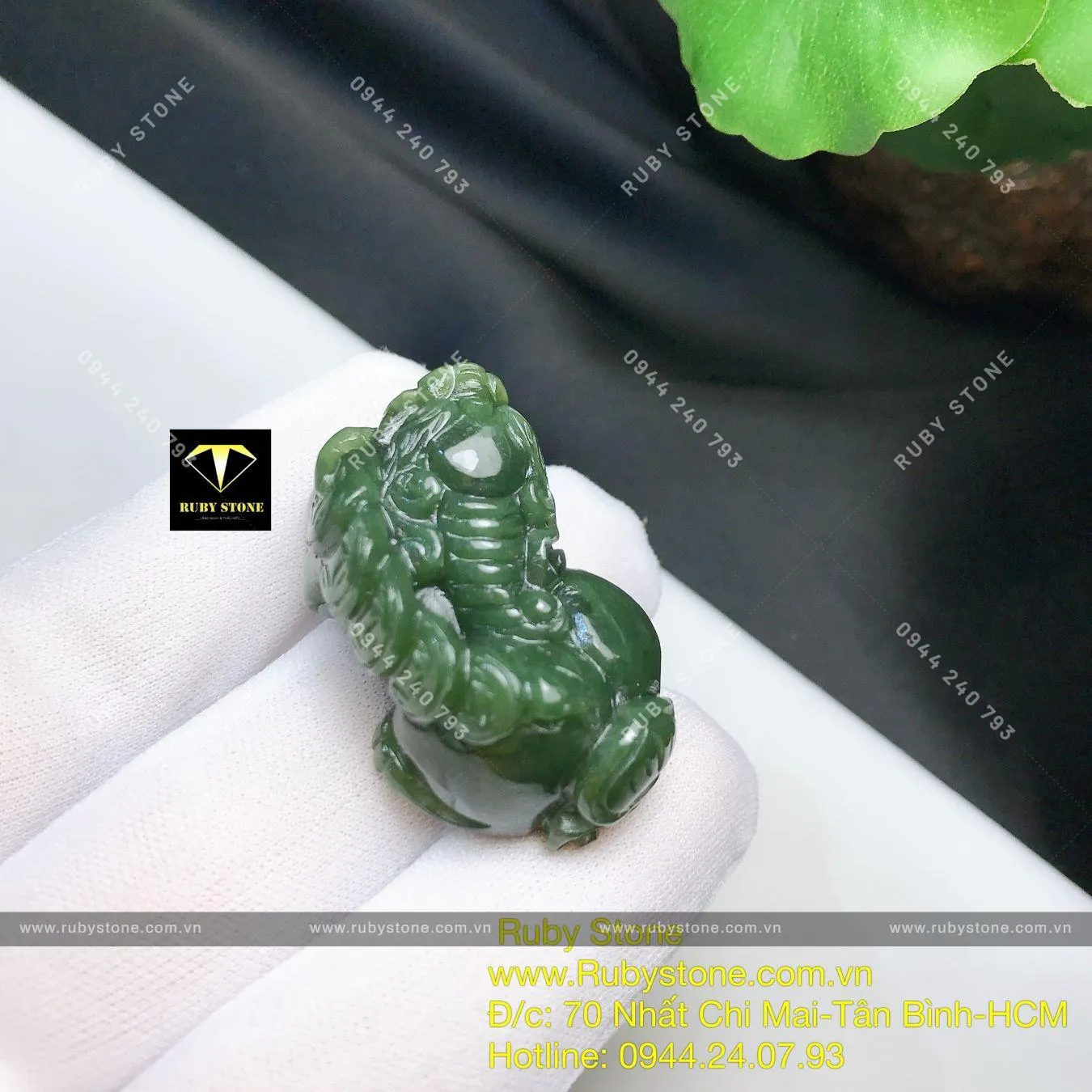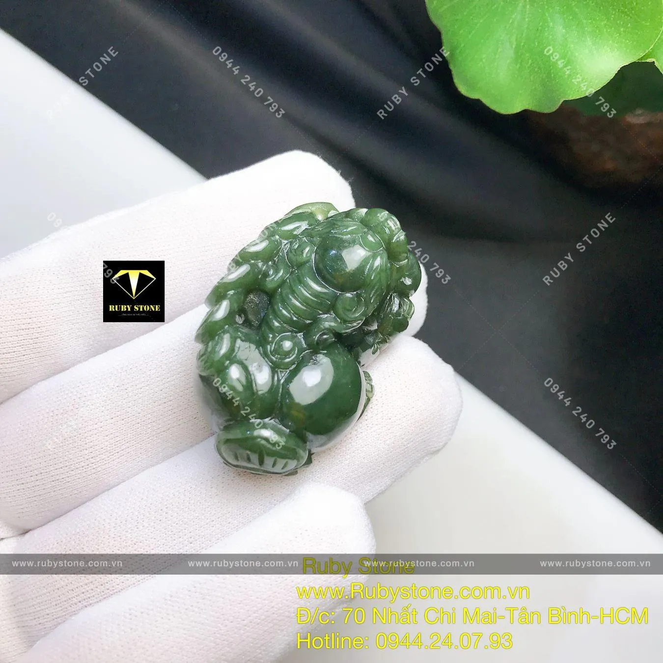 Tỳ Hưu Ngọc Bích Canada Chạm Trổ Tinh Xảo Màu Sẫm, KT 40mm - Ngọc Bích Phong Thủy