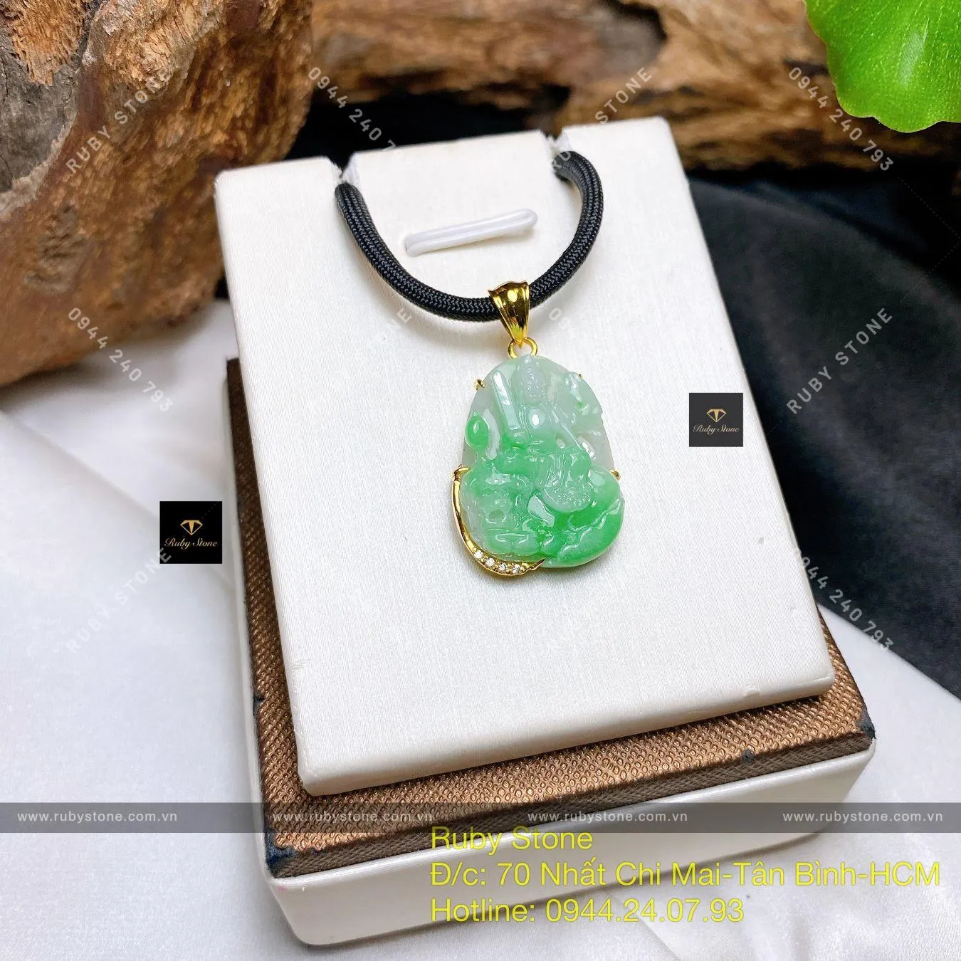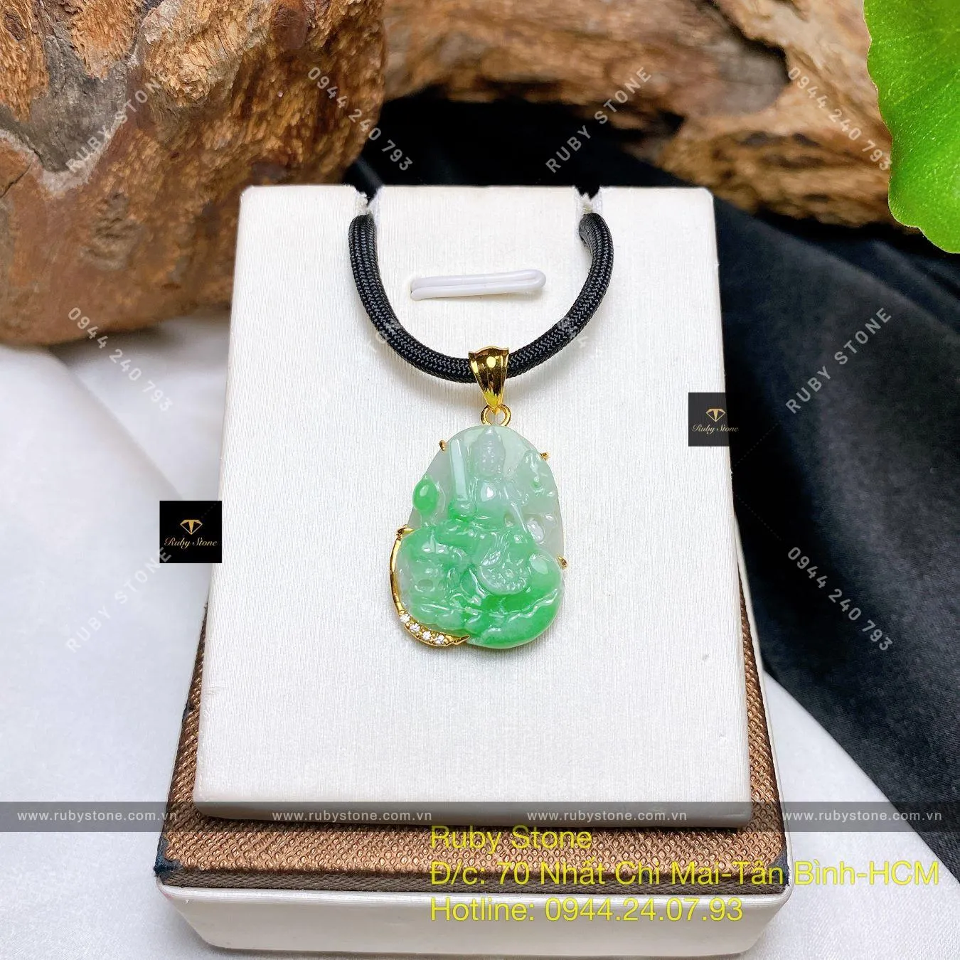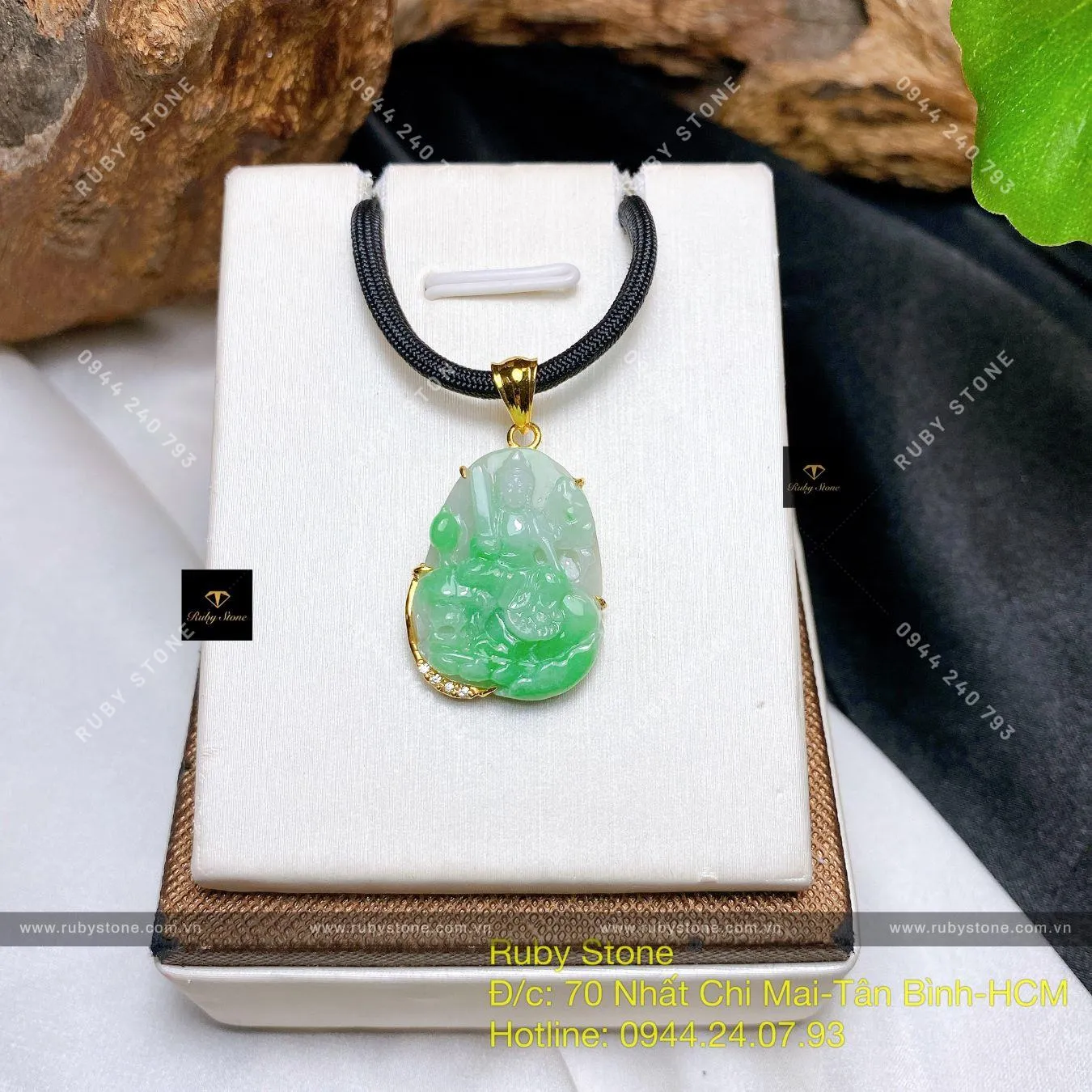Văn thù bồ tát – Phật bản mệnh ngọc Cẩm thạch tuổi Mão, KT 23mm, vàng 18k