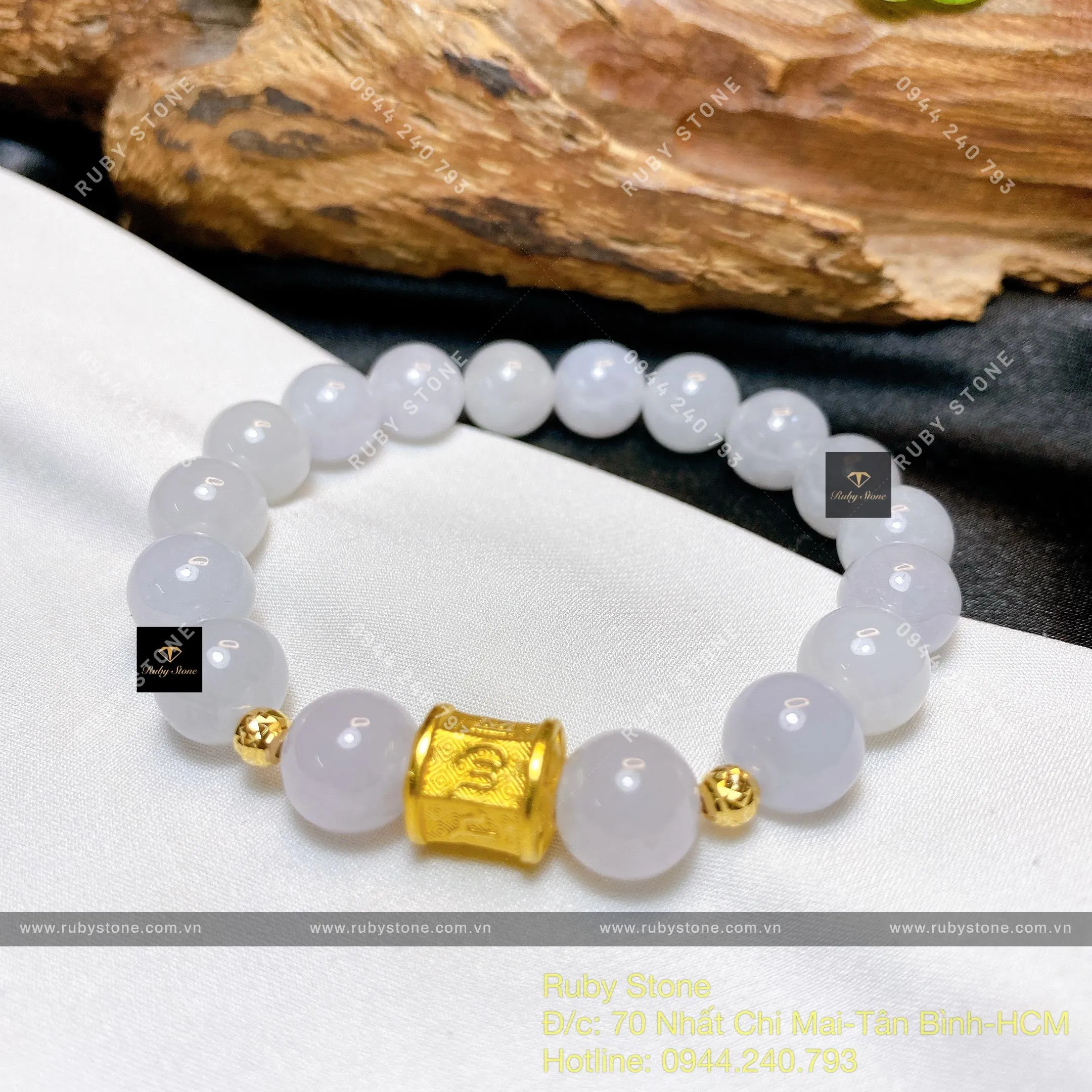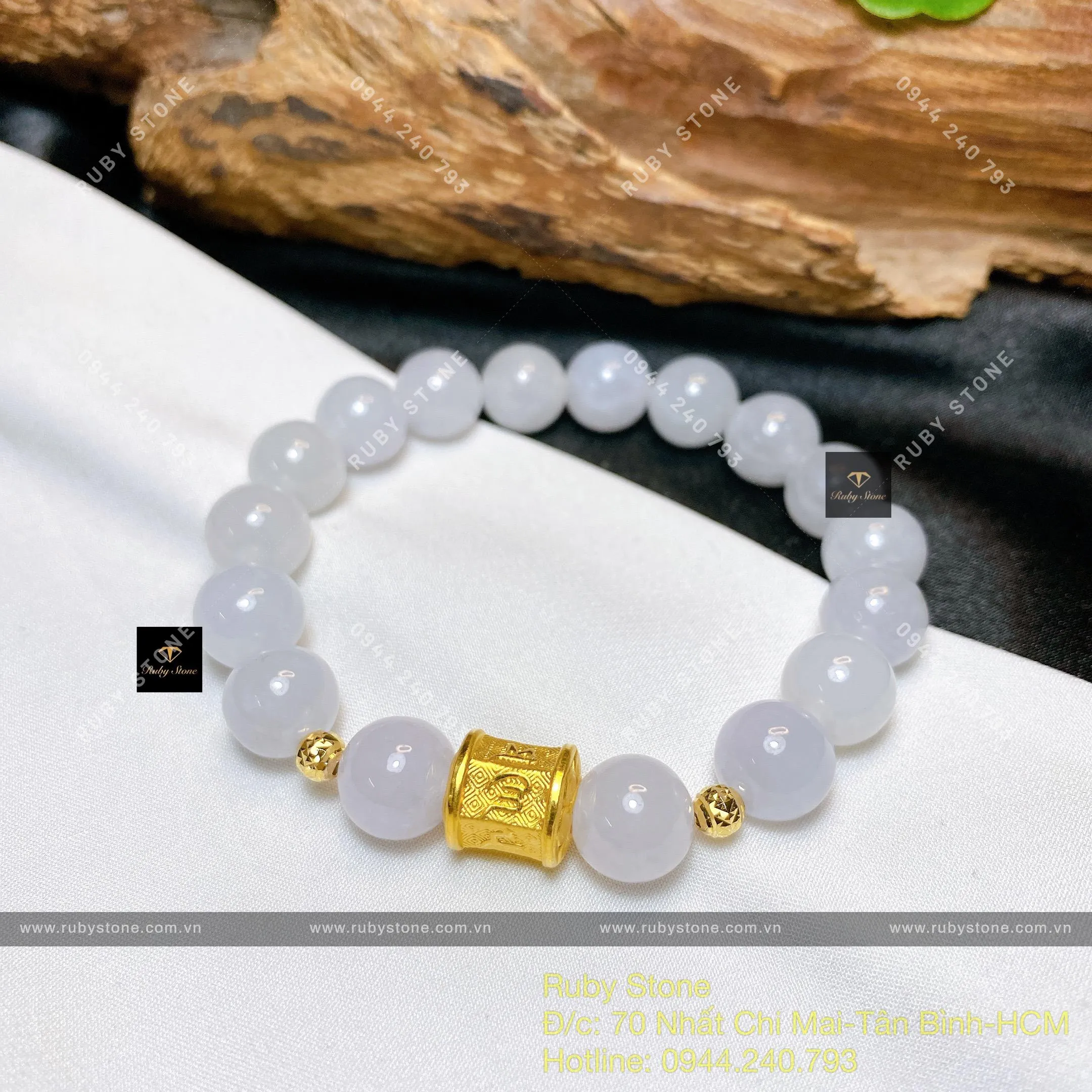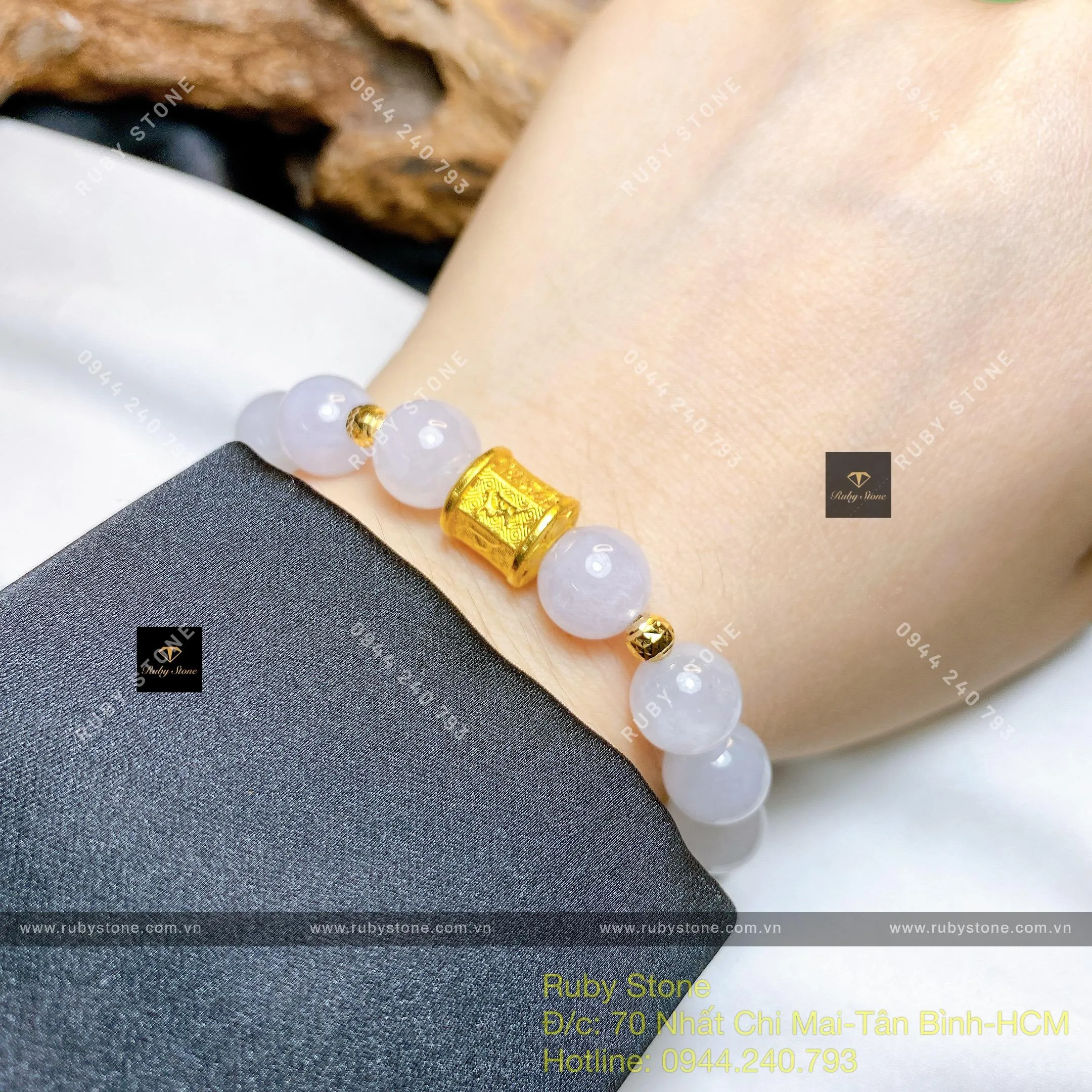 Vòng chuỗi Băng ngọc 9.5 ly, mix charm vàng 24k