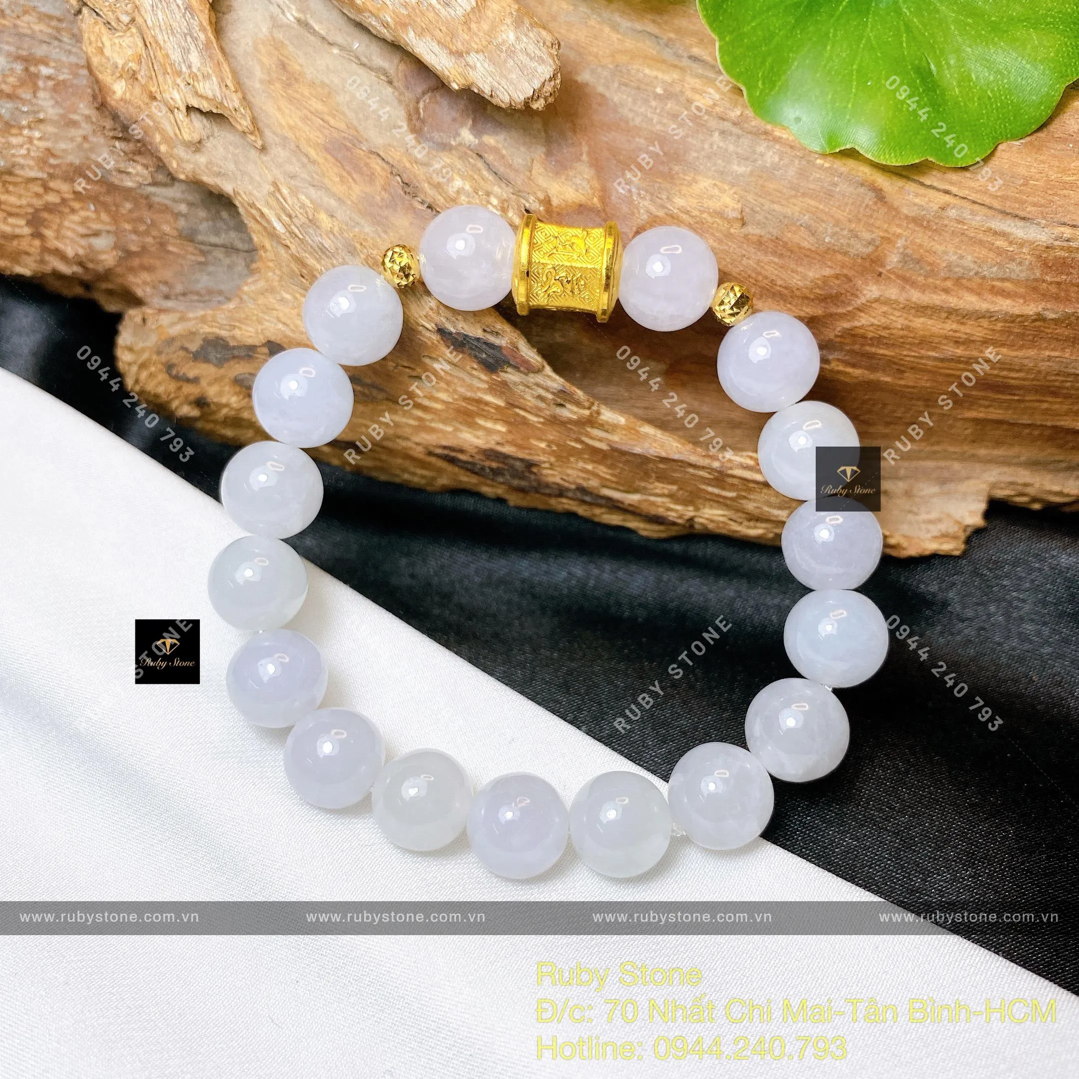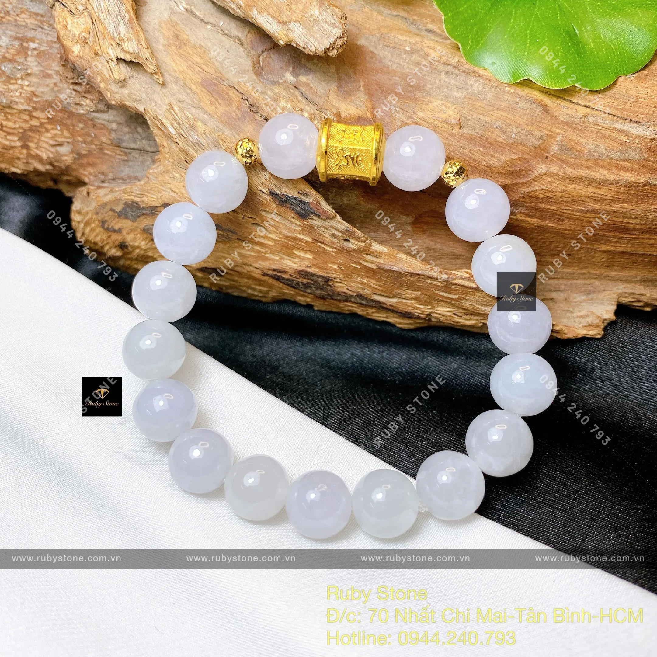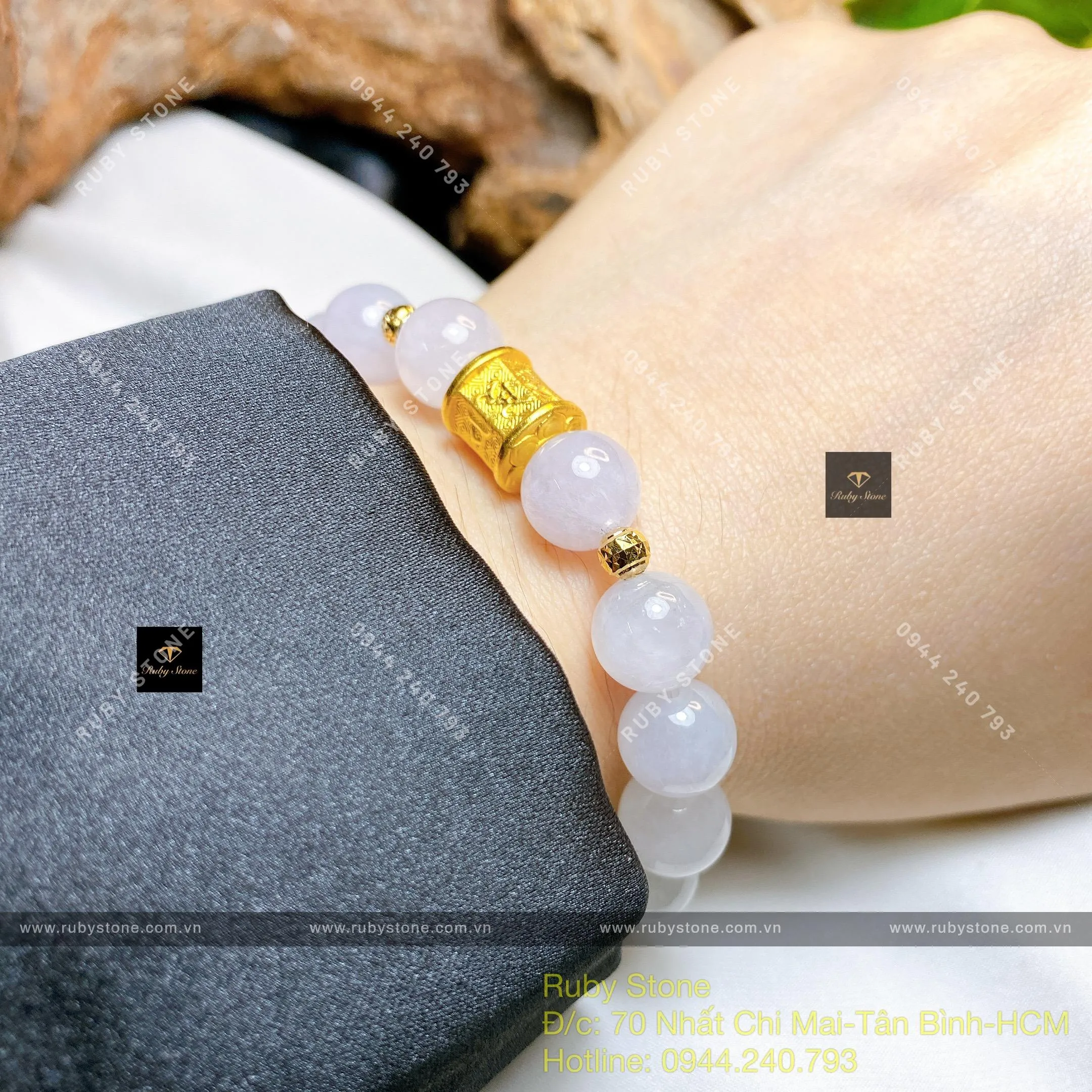 Vòng chuỗi Băng ngọc 9.5 ly, mix charm vàng 24k