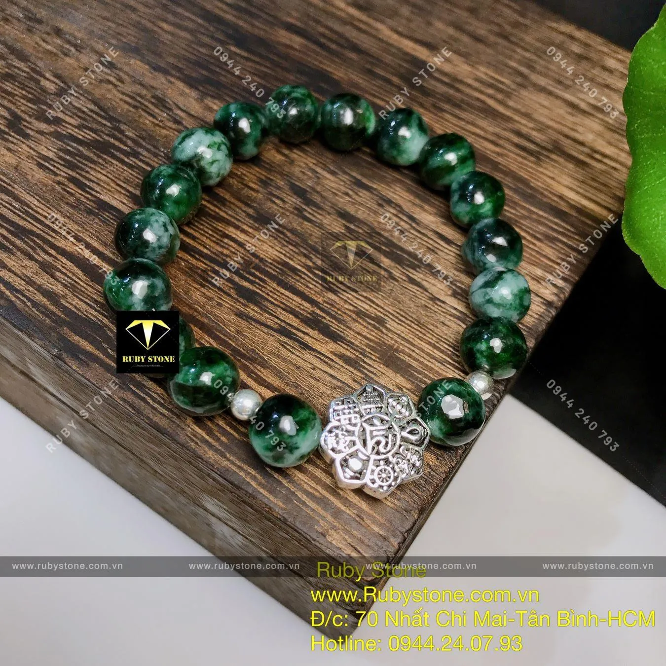 Vòng chuỗi Cẩm thạch sơn thuỷ Myanmar mix charm bạc