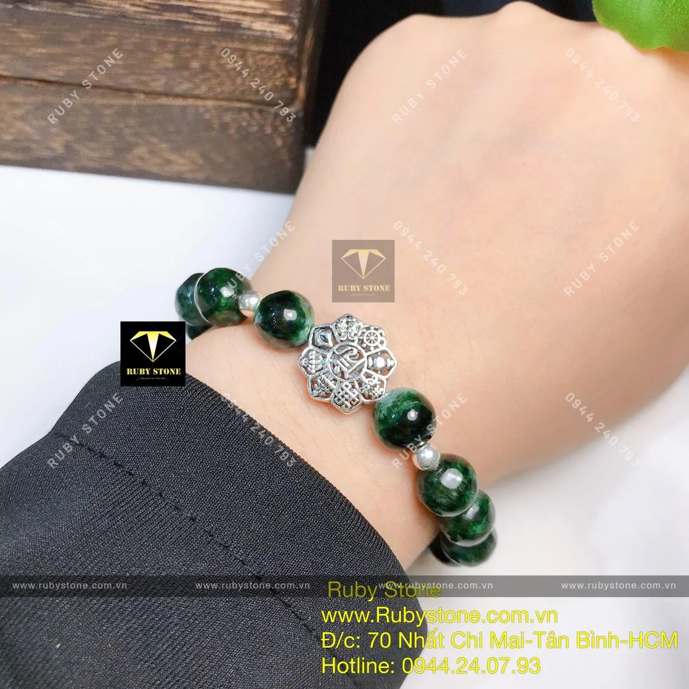 Vòng Chuỗi Cẩm Thạch Sơn Thuỷ Myanmar Mix Charm Bạc - Ngọc Bích Phong Thủy