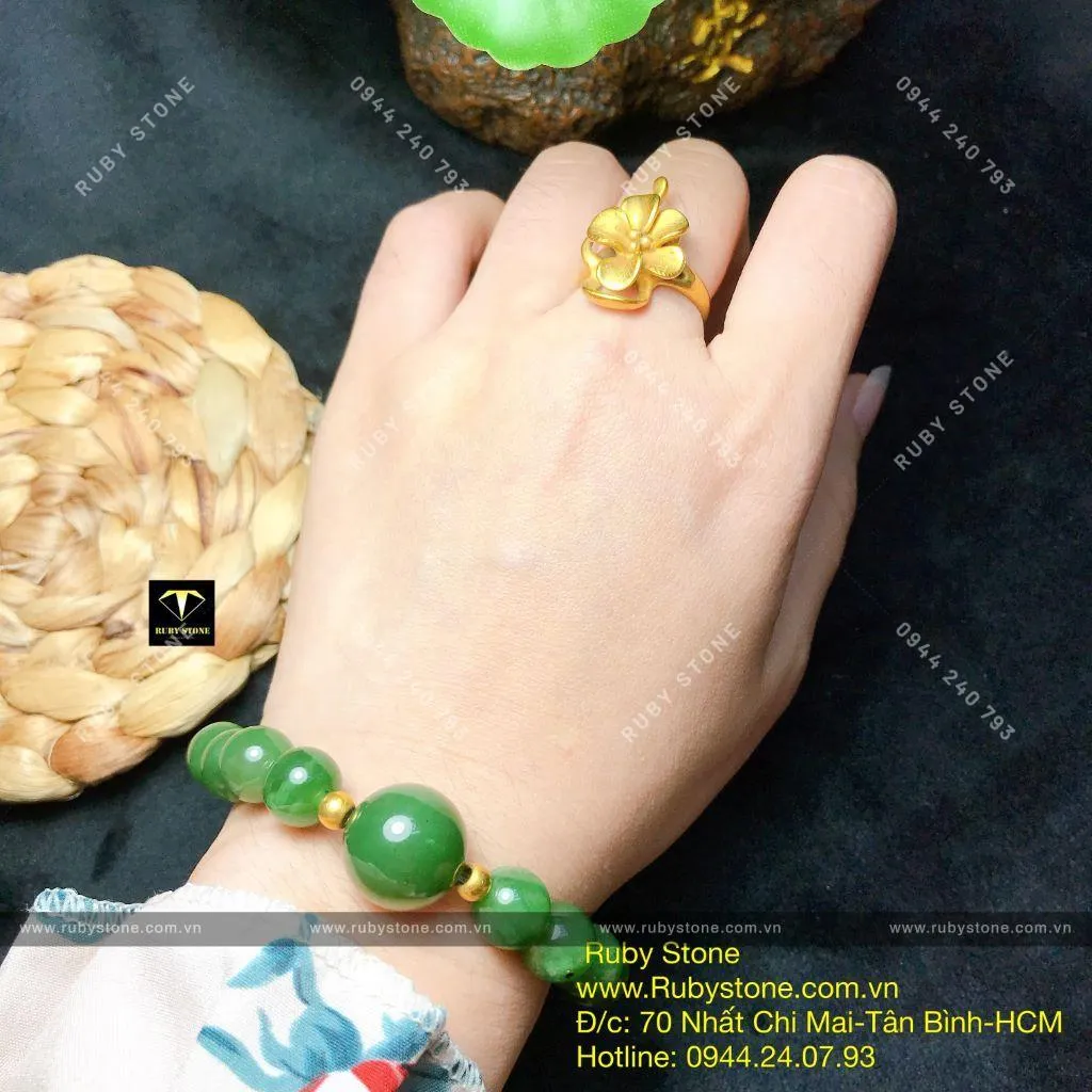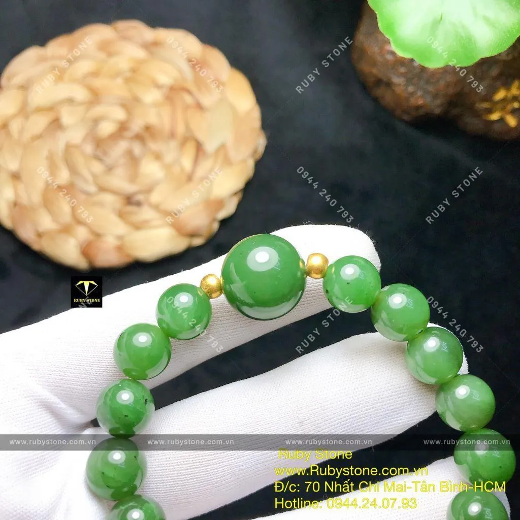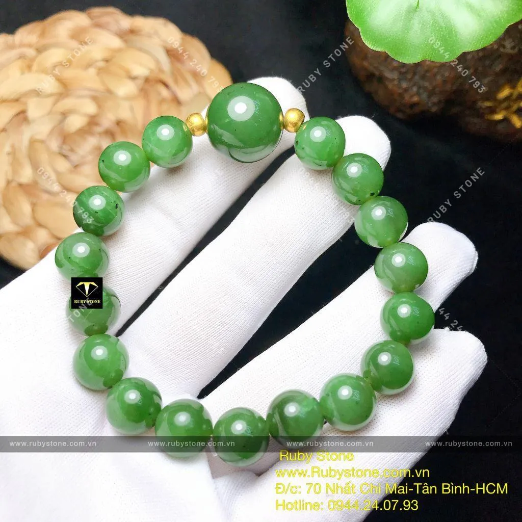 Vòng Chuỗi Ngọc Bích Mix Bi Vàng 24k - Ngọc Bích Phong Thủy