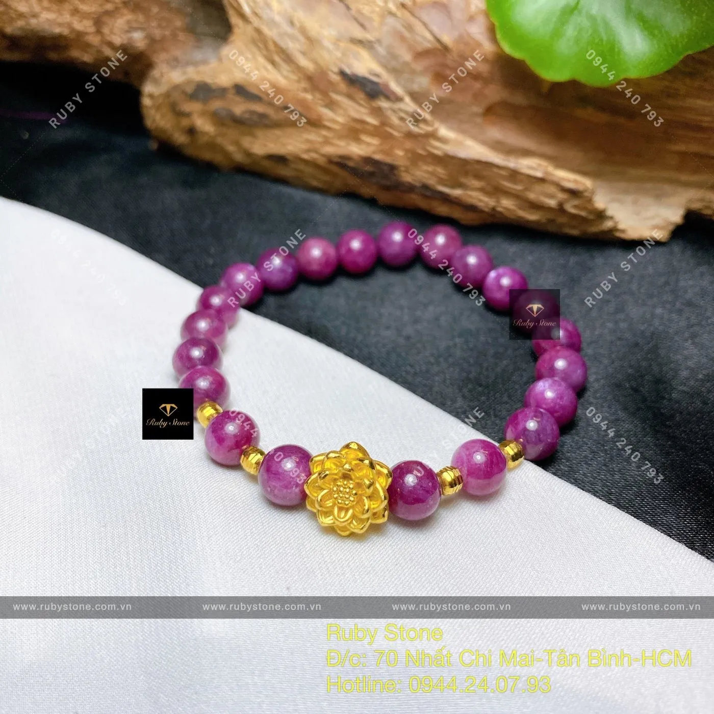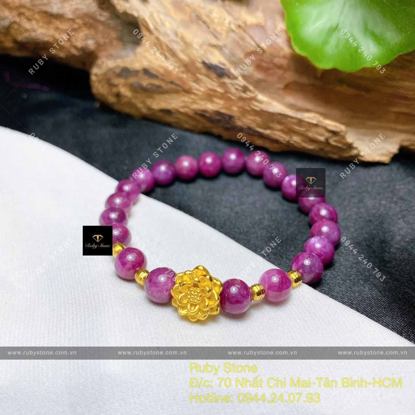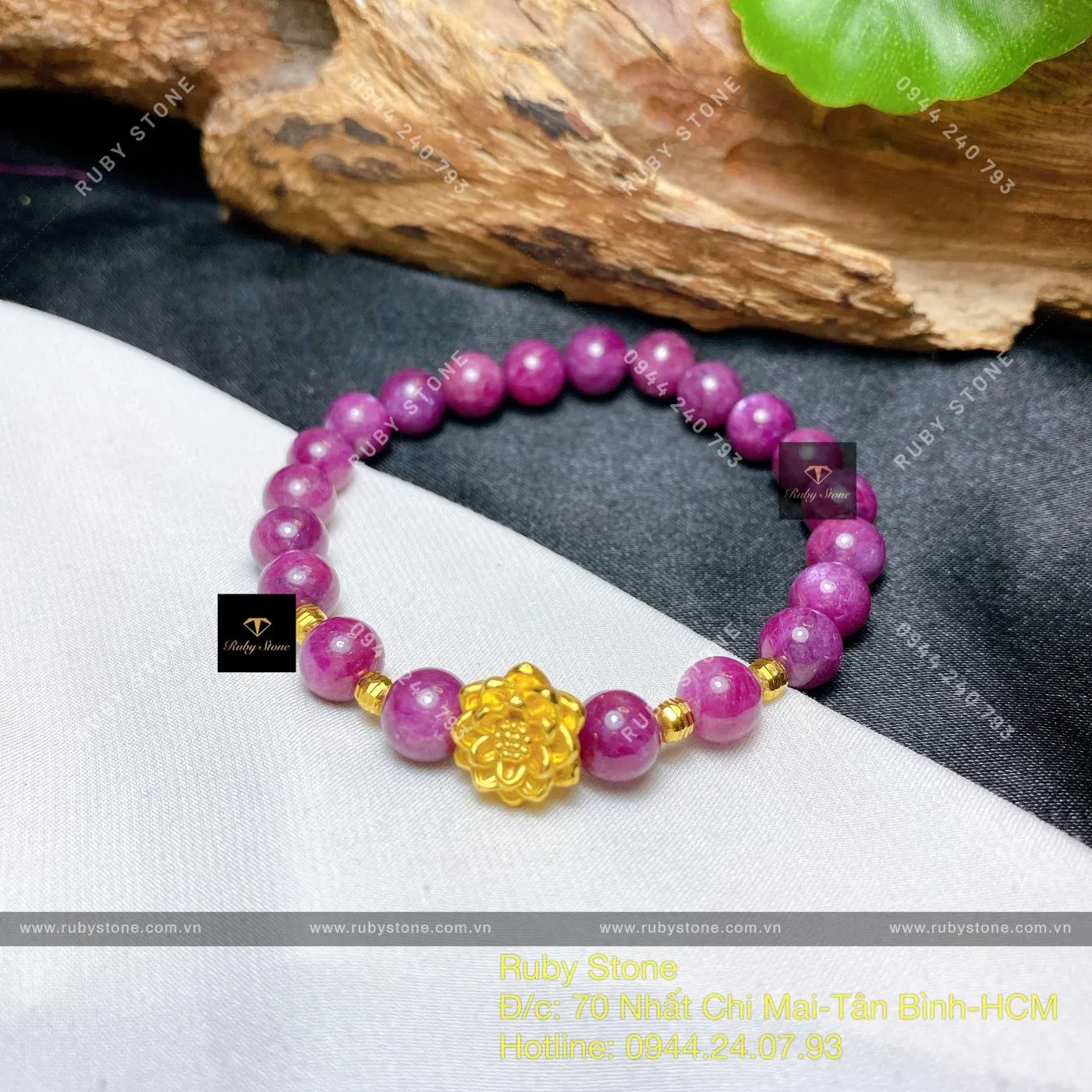 Vòng chuỗi Ruby Nam Phi 7,2 ly mix charm vàng 24k