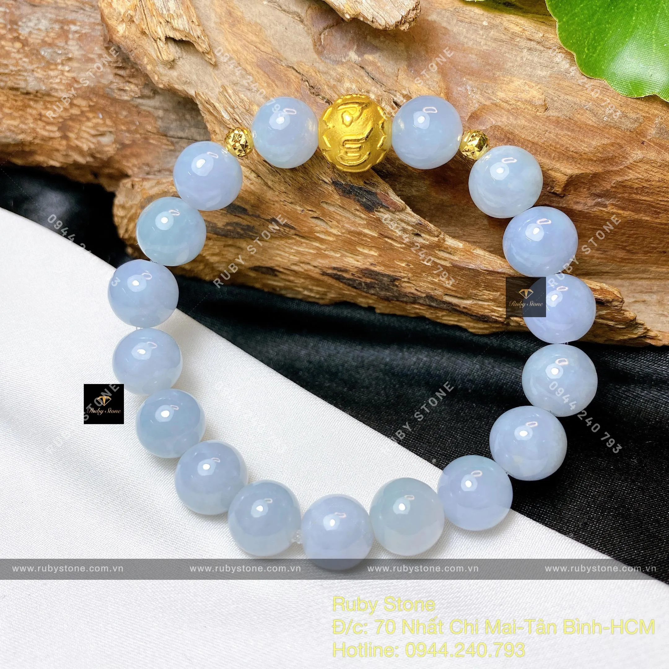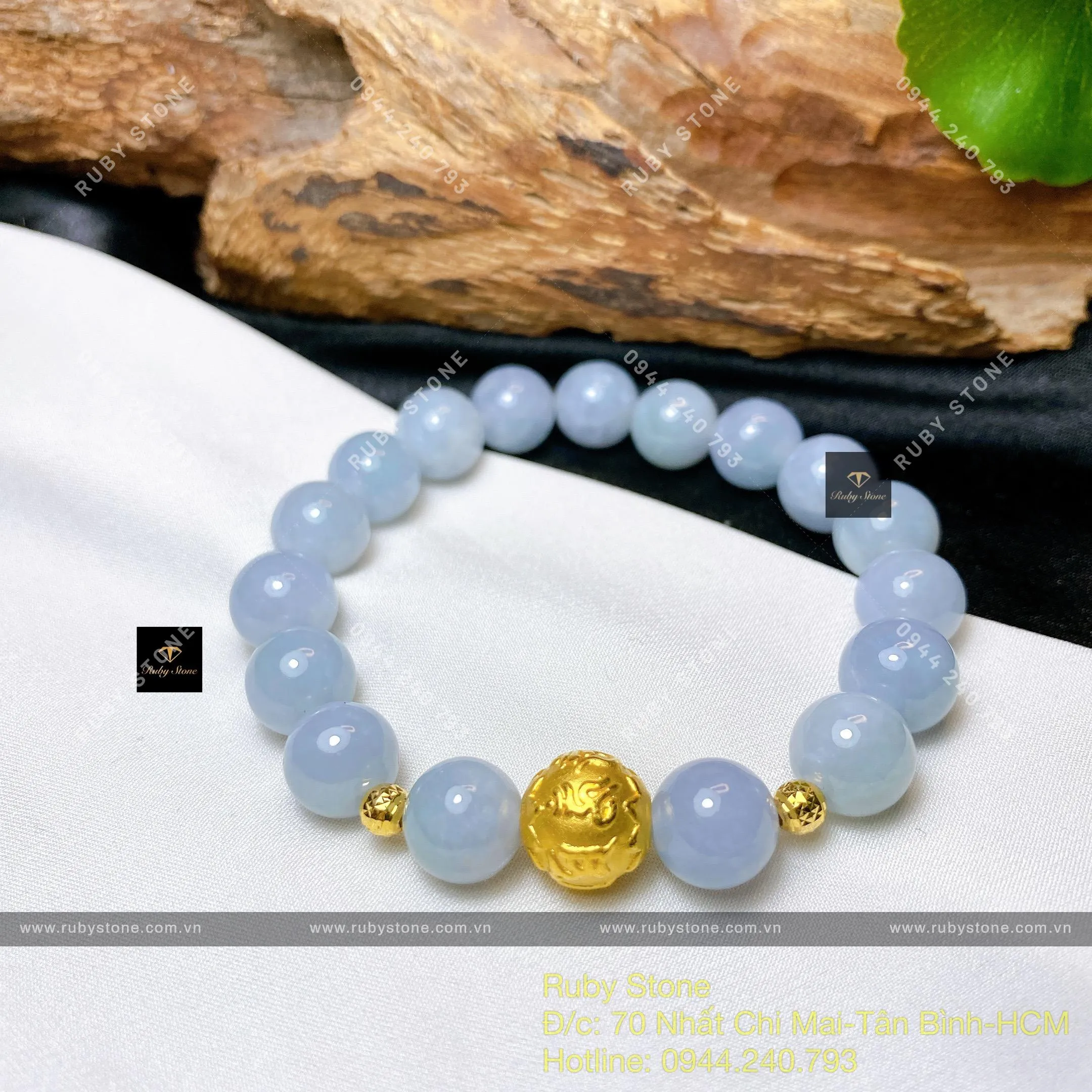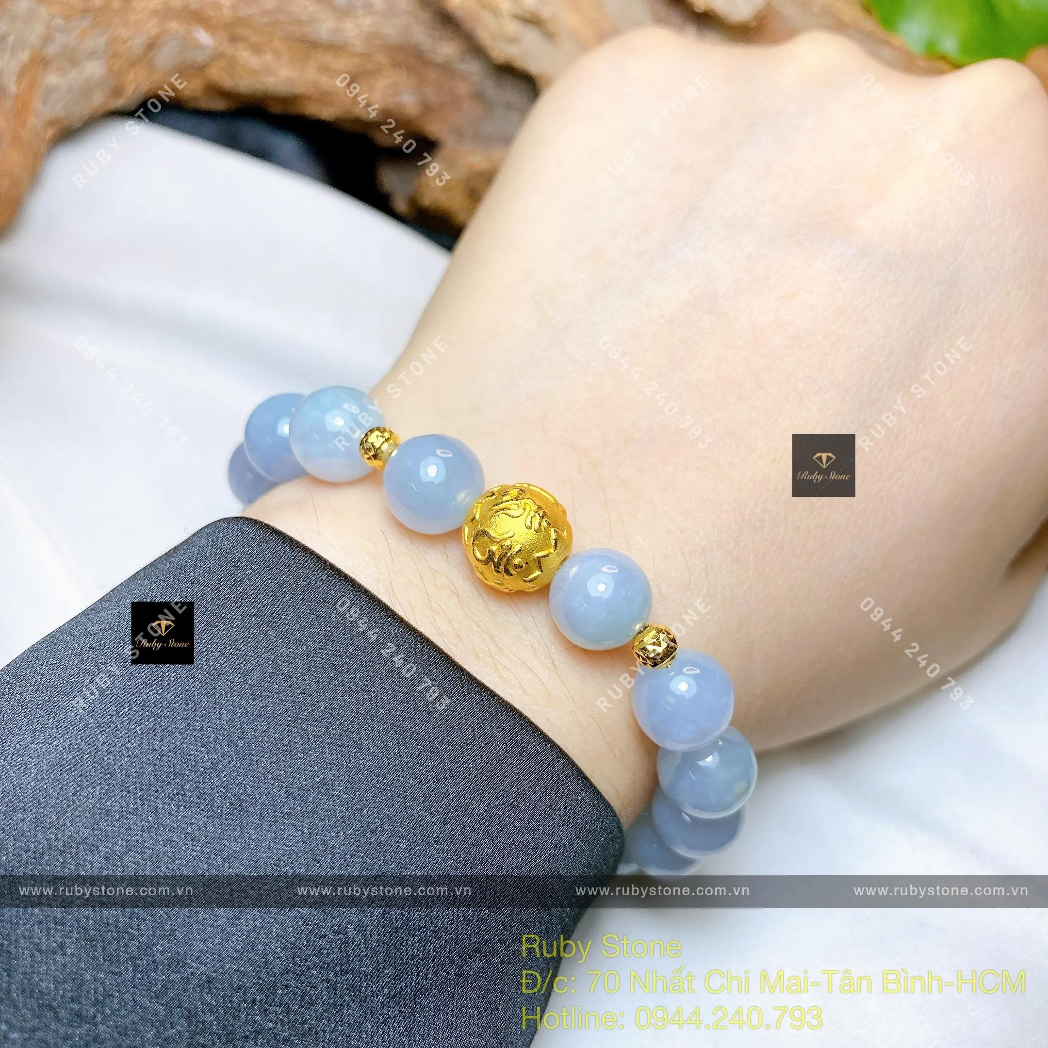 Vòng Chuỗi Ngọc Tím Lam 9.5 Ly, Mix Charm Vàng 24k - Ngọc Bích Phong Thủy