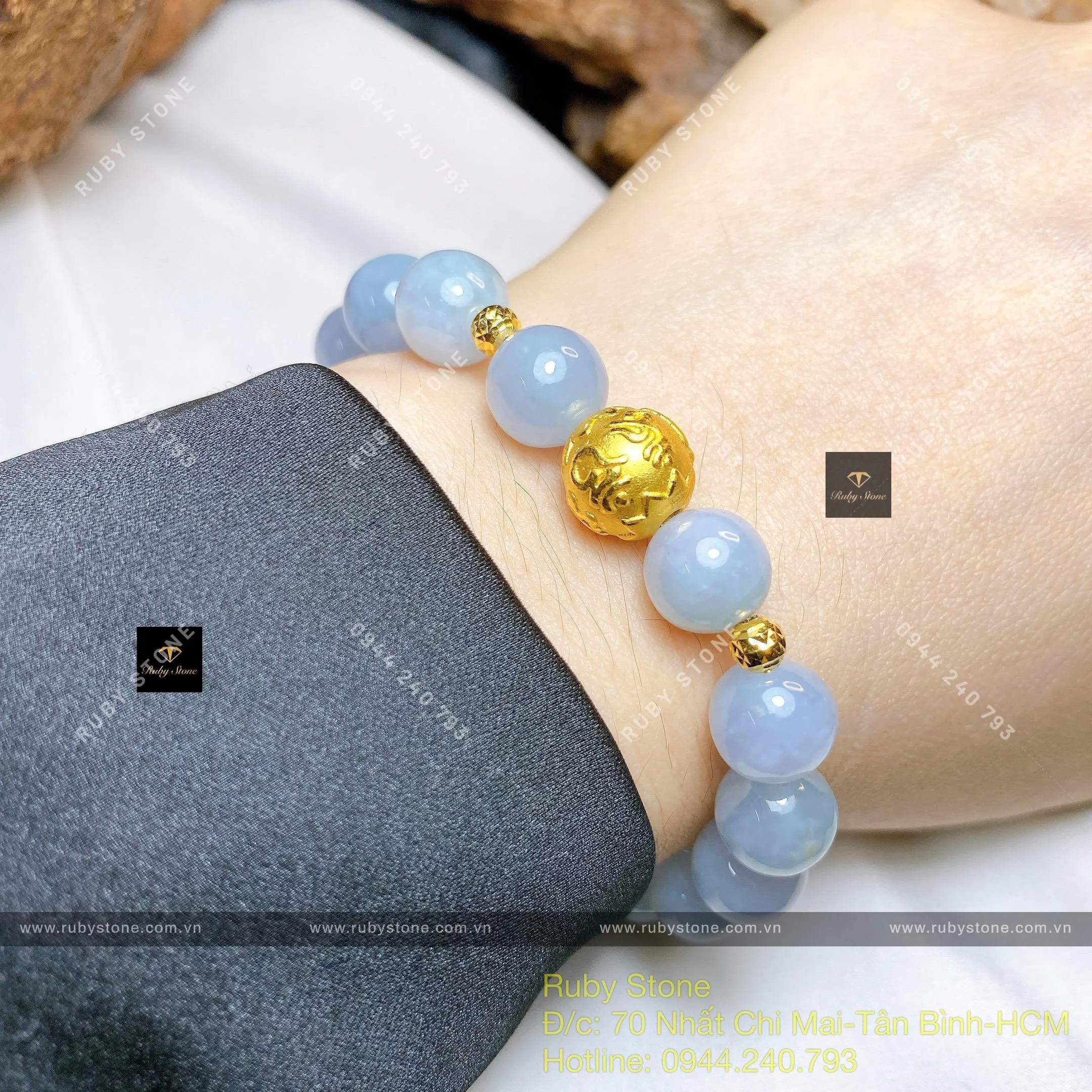 Vòng chuỗi ngọc tím lam 9.5 ly, mix charm vàng 24k