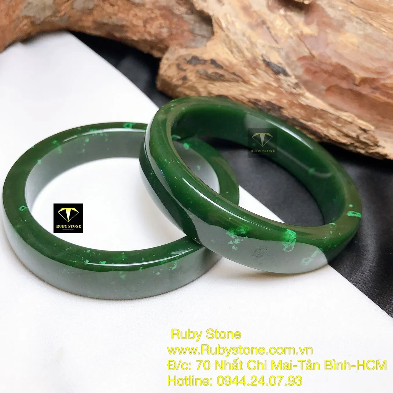 Vòng Ngọc Bích Canada, Bản Vuông 13mm, Ni Tay 54mm - Ngọc Bích Phong Thủy