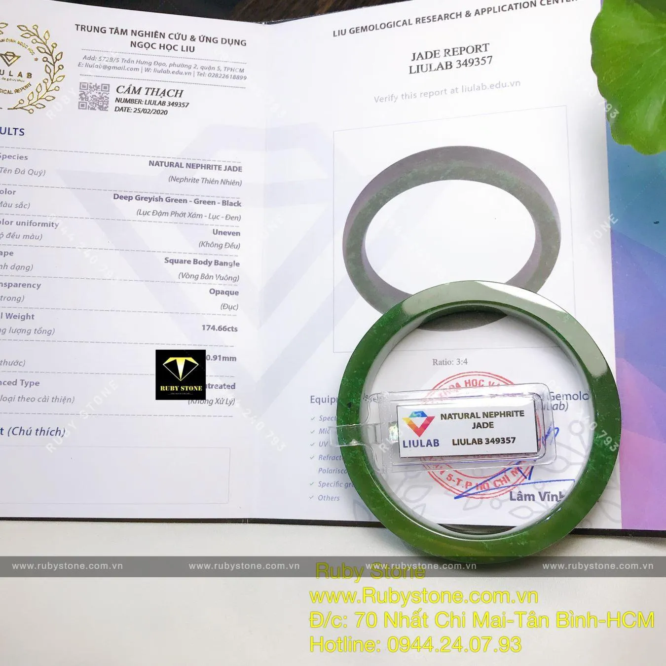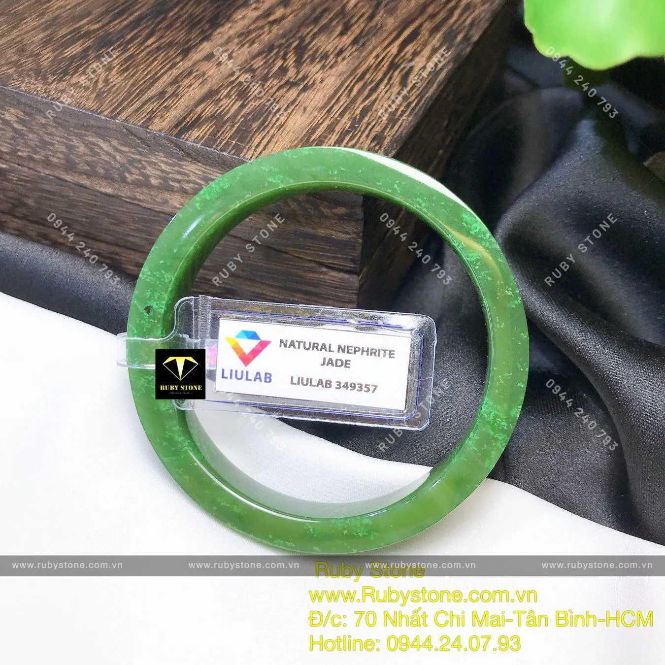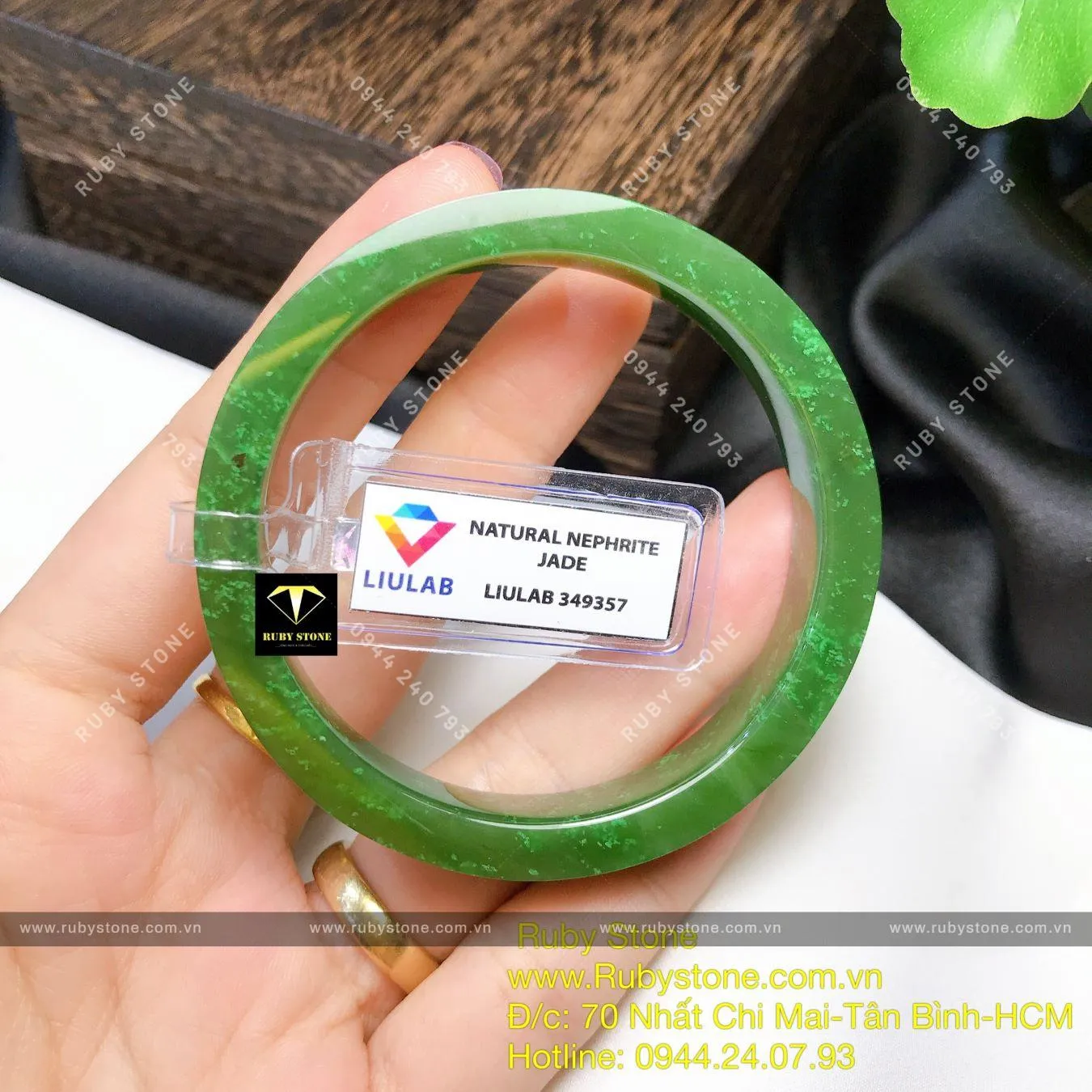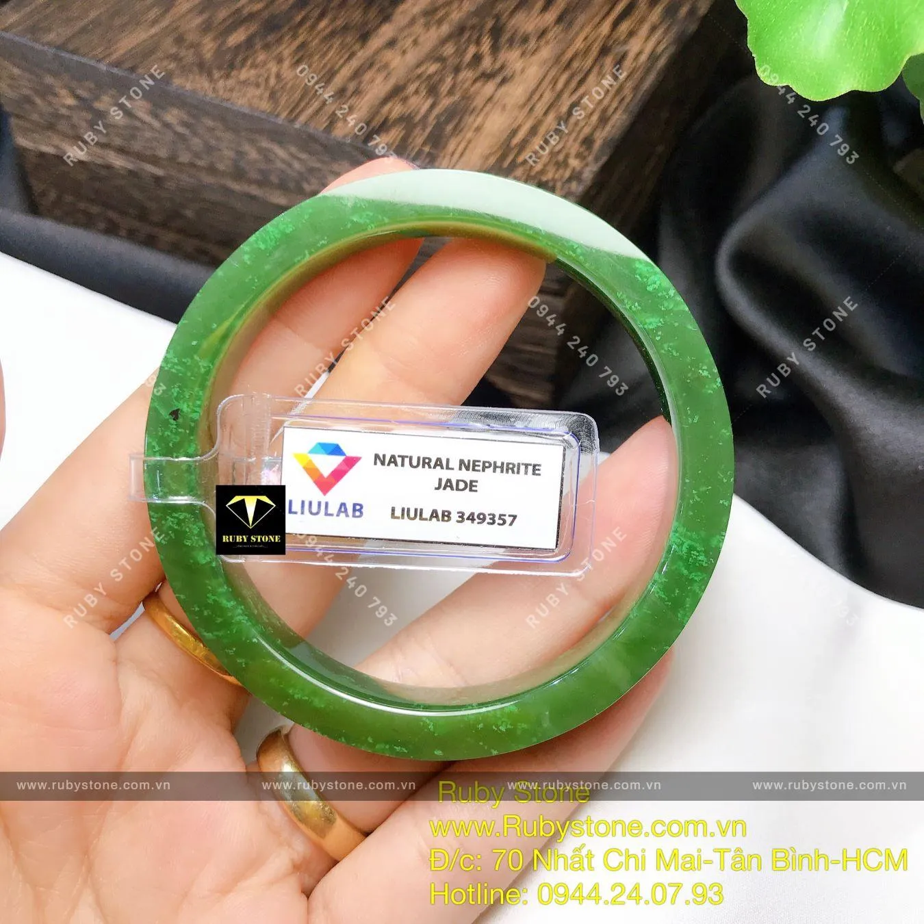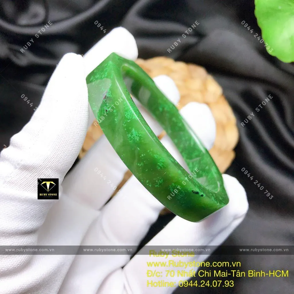 Vòng Ngọc Bích Canada Xanh Lý, Bản Vuông 10mm - Ngọc Bích Phong Thủy