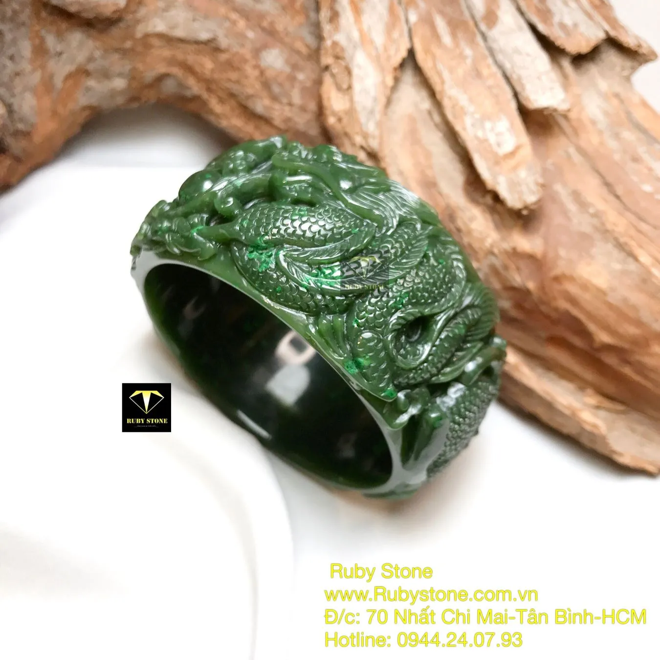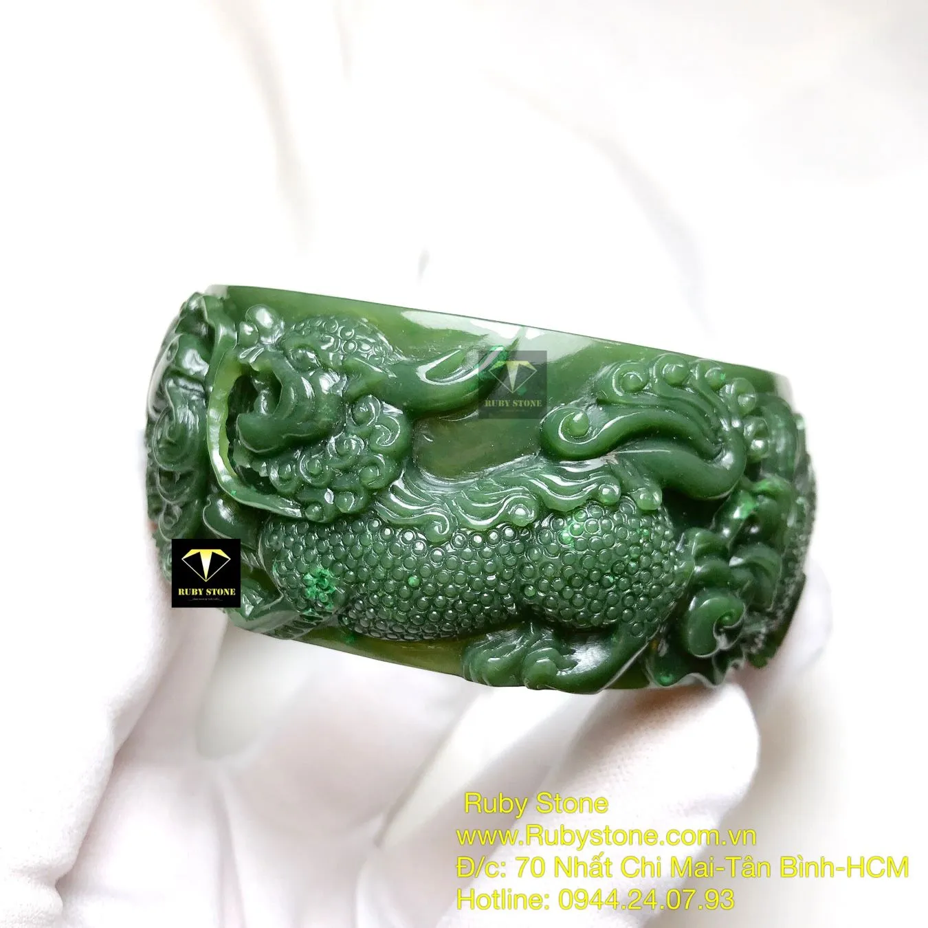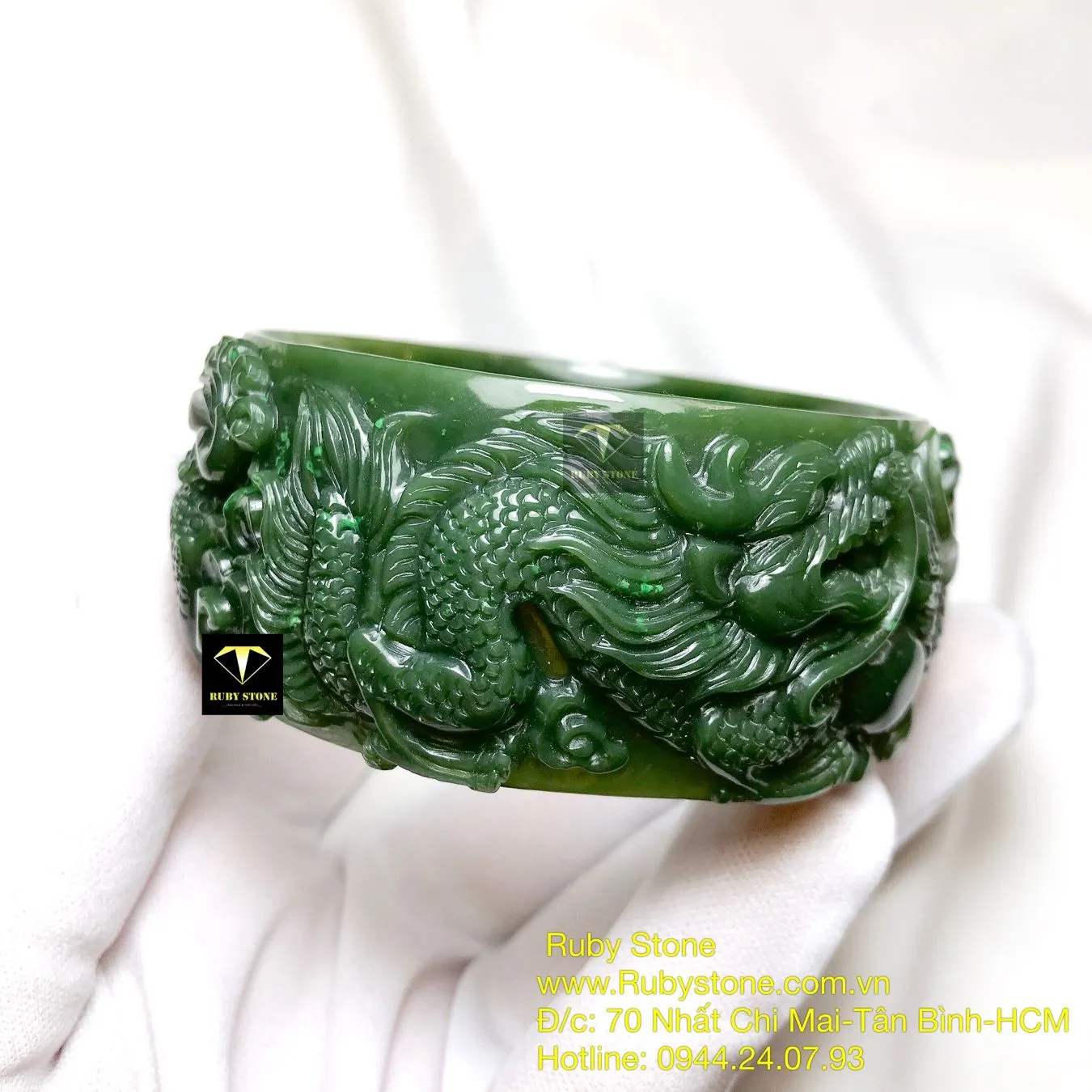 Vòng ngọc bích Canada chạm Tứ linh (Long - Lân - Quy - Phụng), bản 30mm