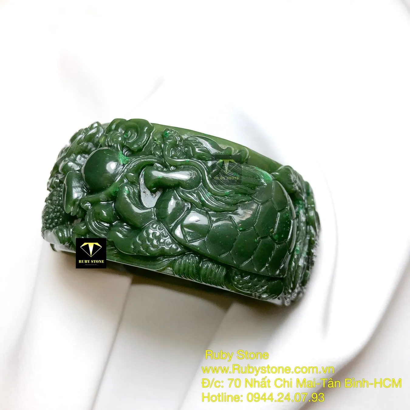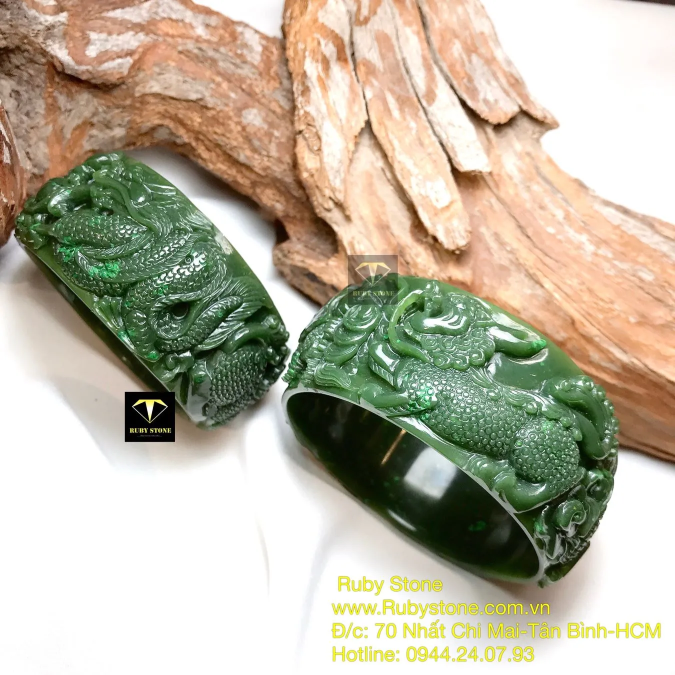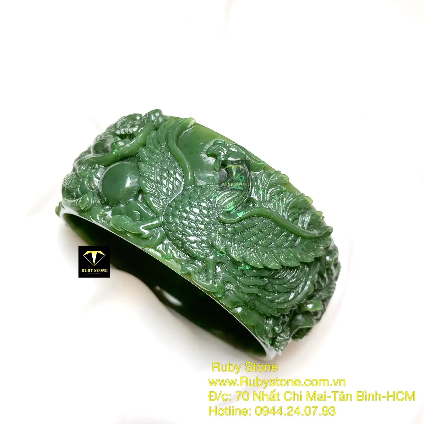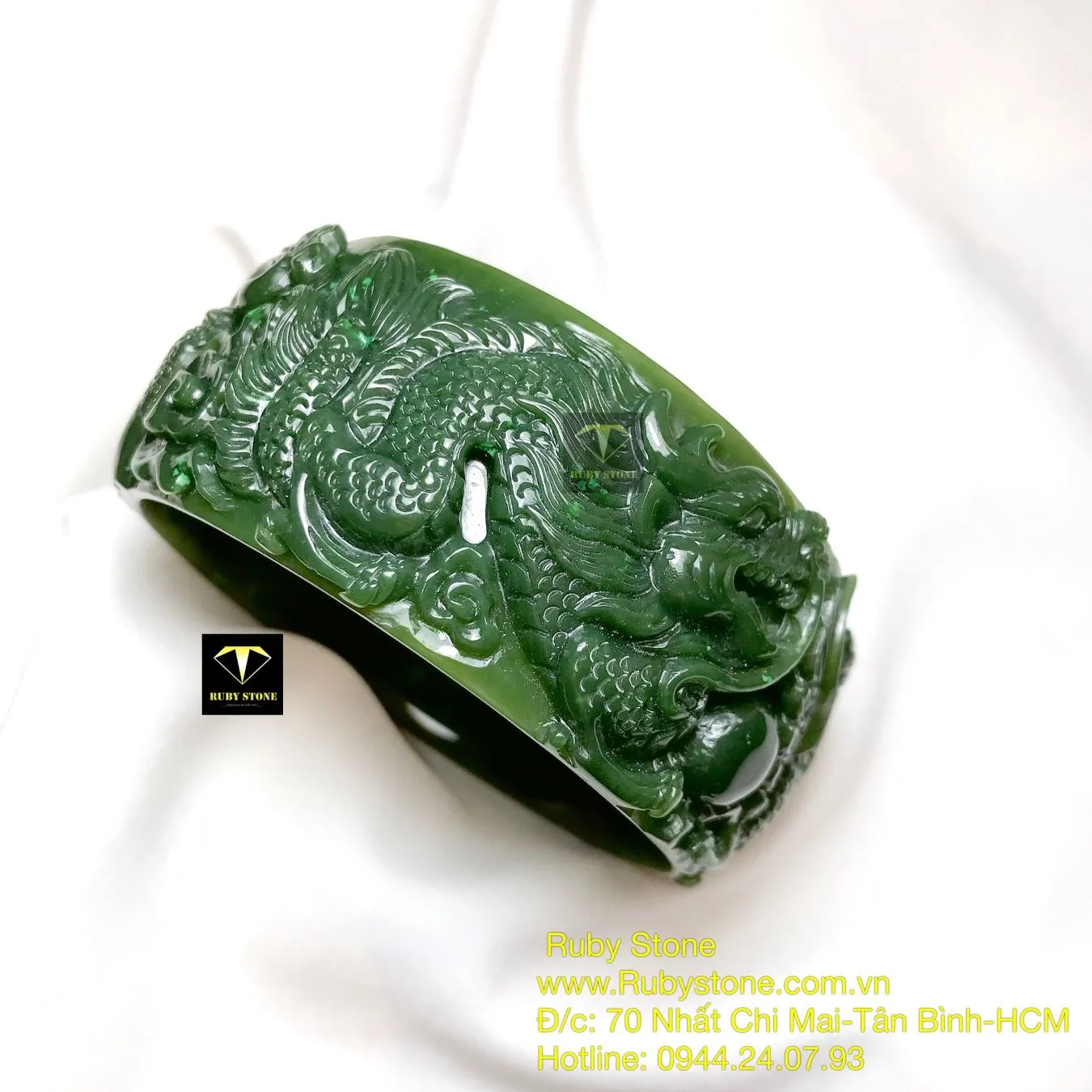 Vòng ngọc bích Canada chạm Tứ linh (Long - Lân - Quy - Phụng), bản 30mm