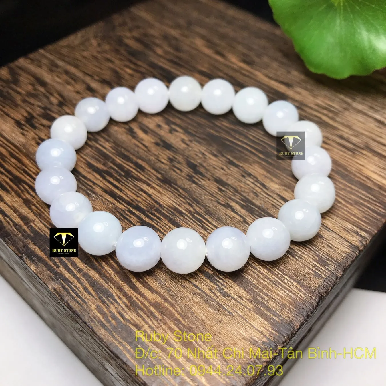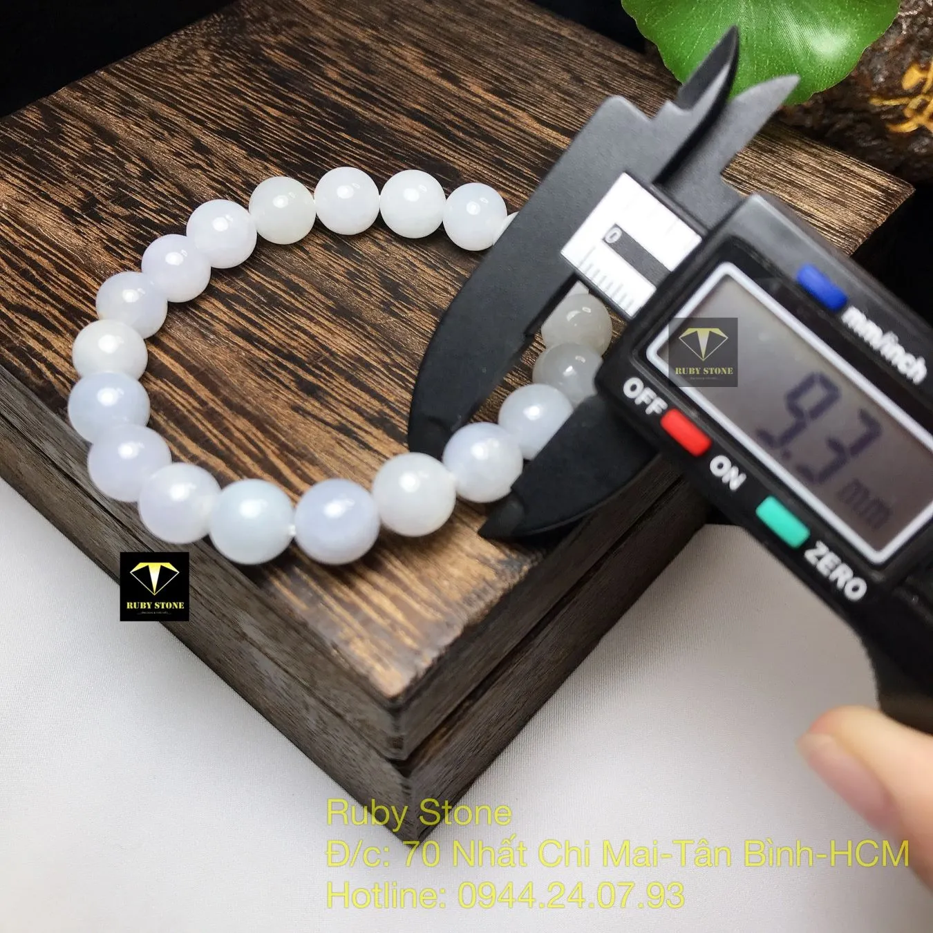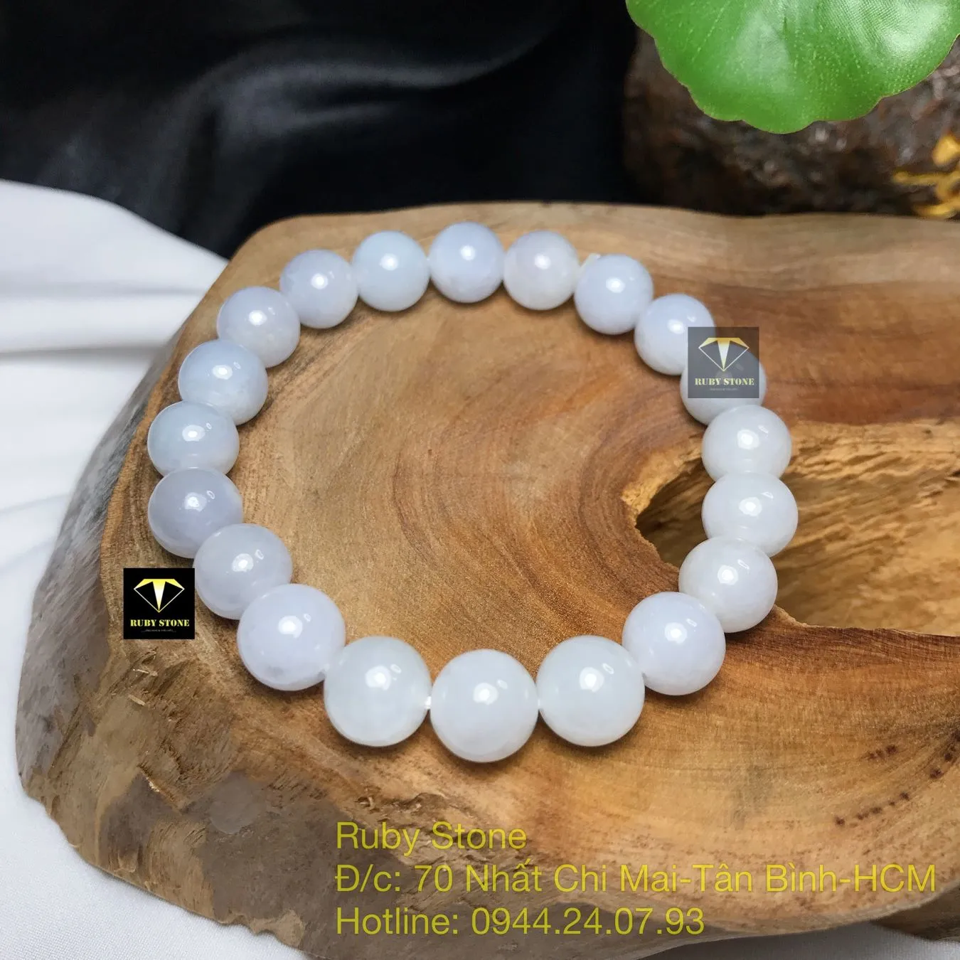 Vòng Ngọc Cẩm Thạch Chuỗi Trắng Phớt Tím Hơn 9 Ly - Ngọc Bích Phong Thủy