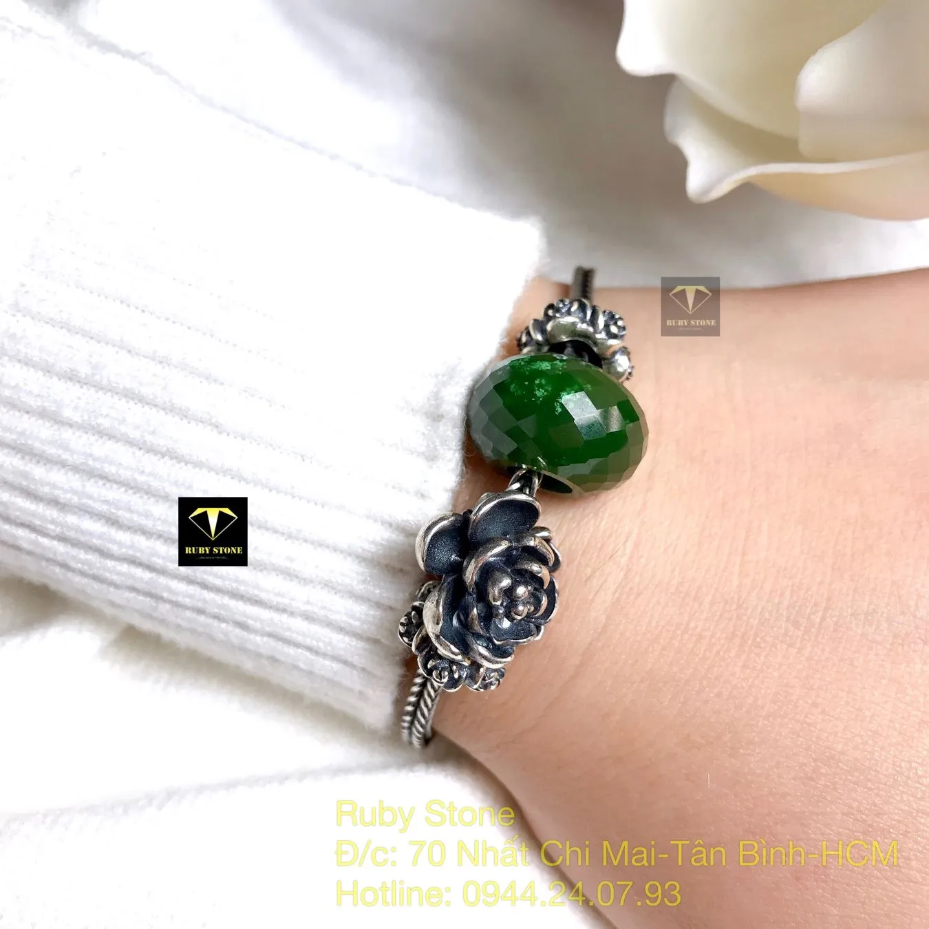 Vòng Tay Bạc Mix Charm Ngọc Bích Canada Xanh Lá Mài Giác - Ngọc Bích Phong Thủy